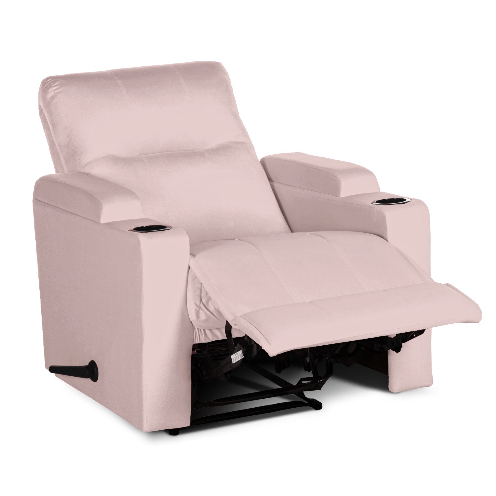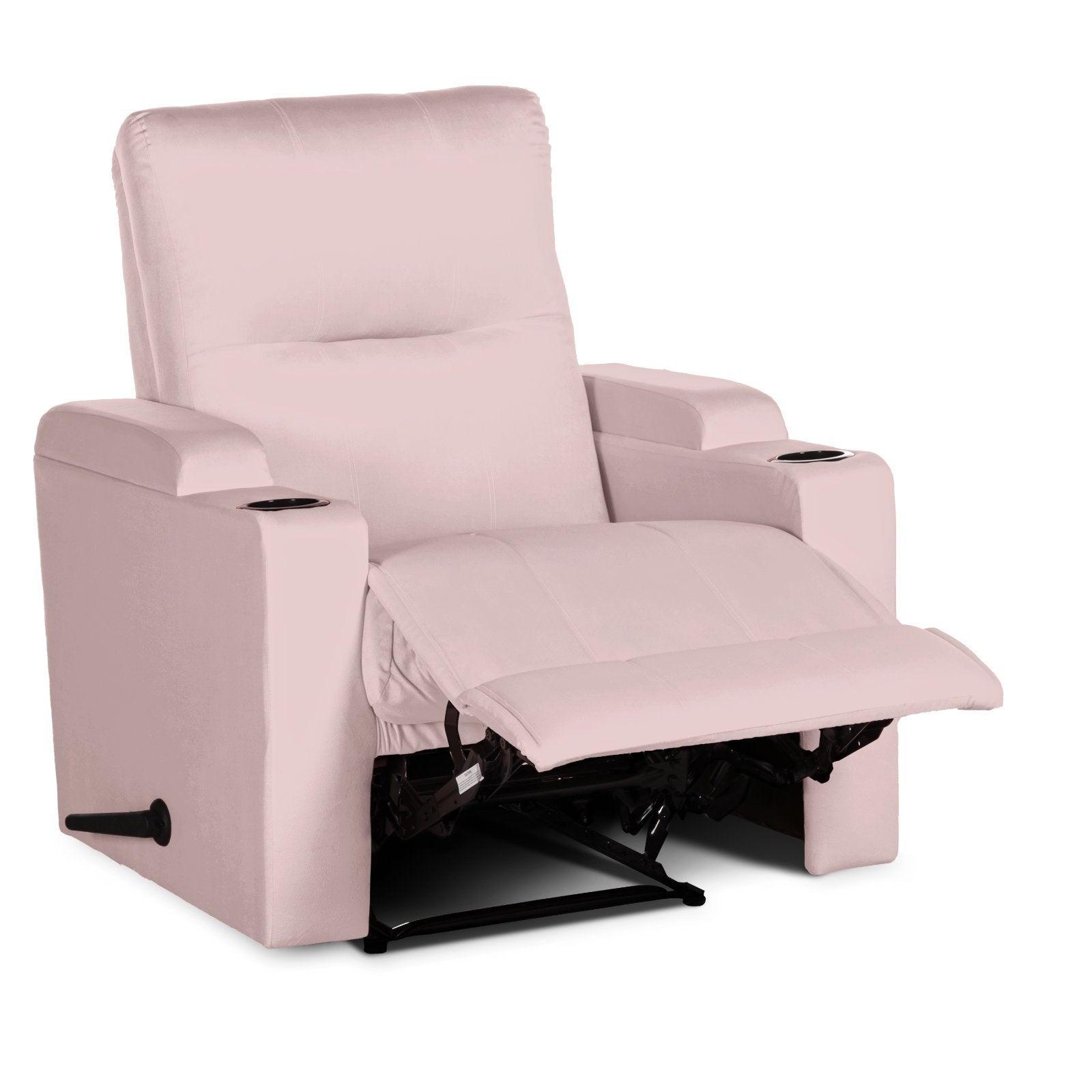 Cinematic Velvet Upholstered Rocking & Rotating Recliner Chair With Bed Mode From In House - Light Pink - AB08