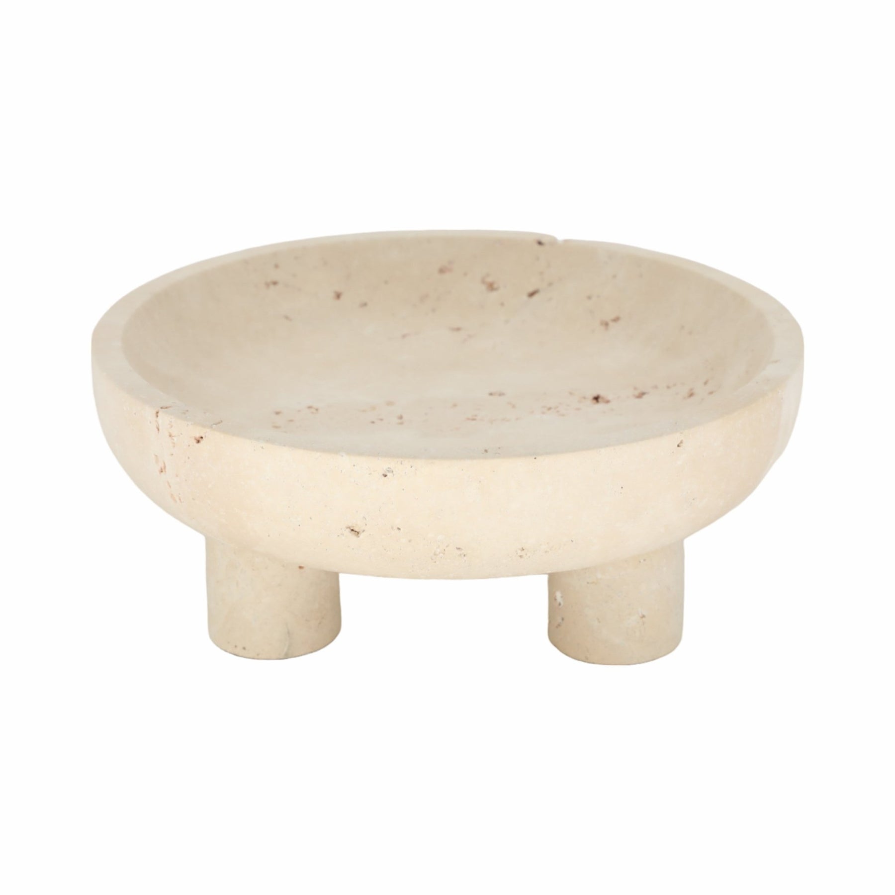 10" TRAVERTINE FOOTED BOWL, TAN - Al Rugaib Furniture