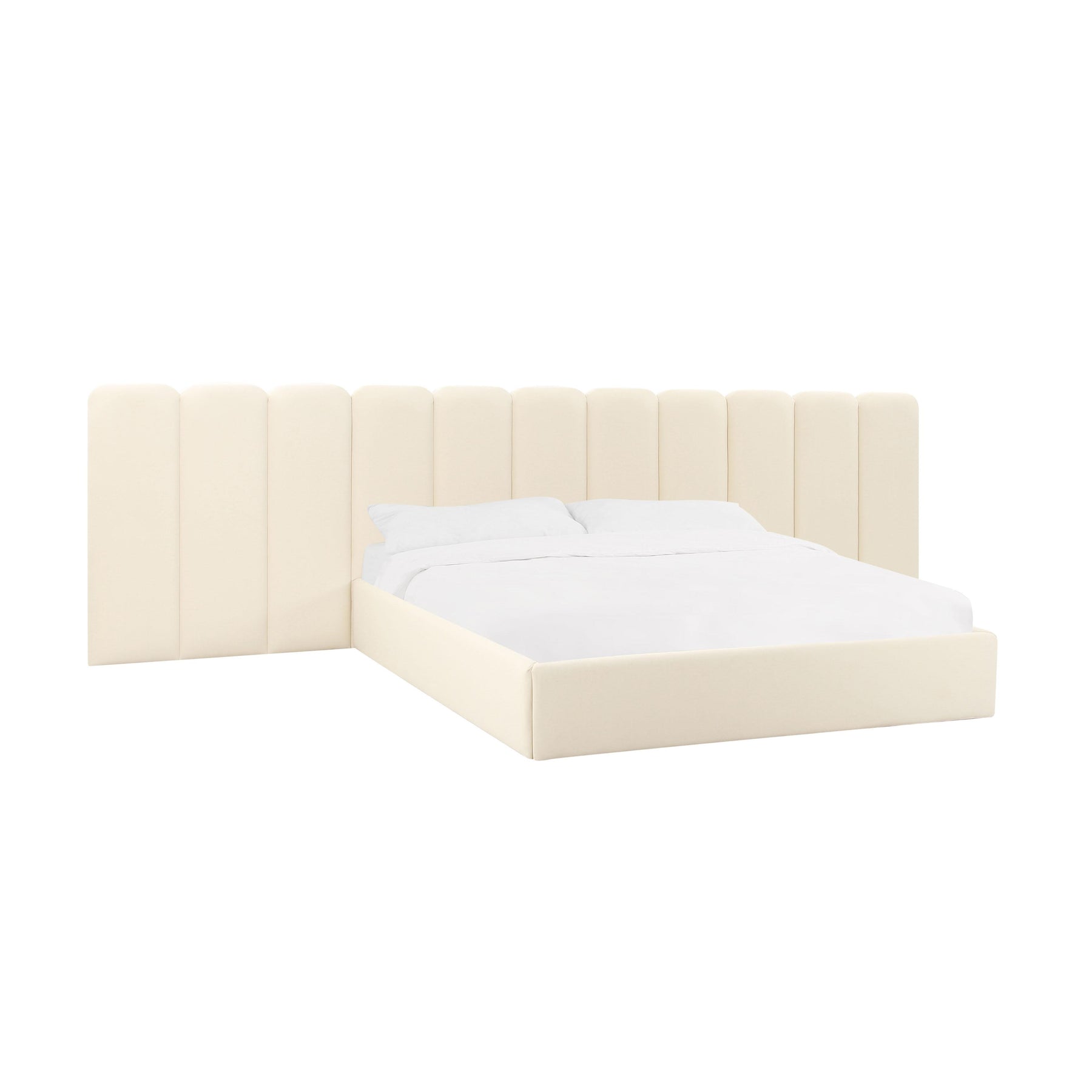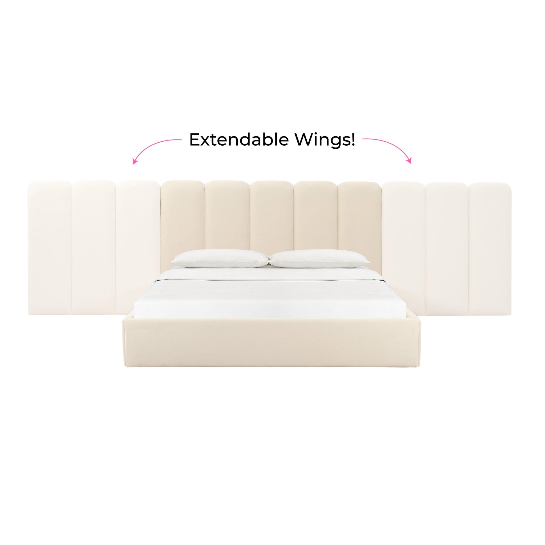 Palani Cream Velvet Queen Bed with Wings