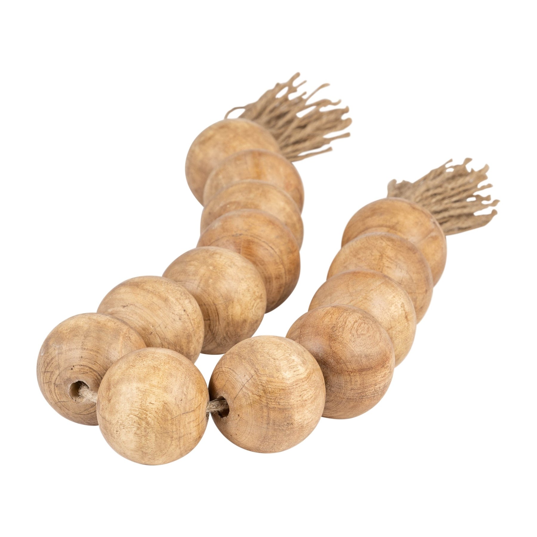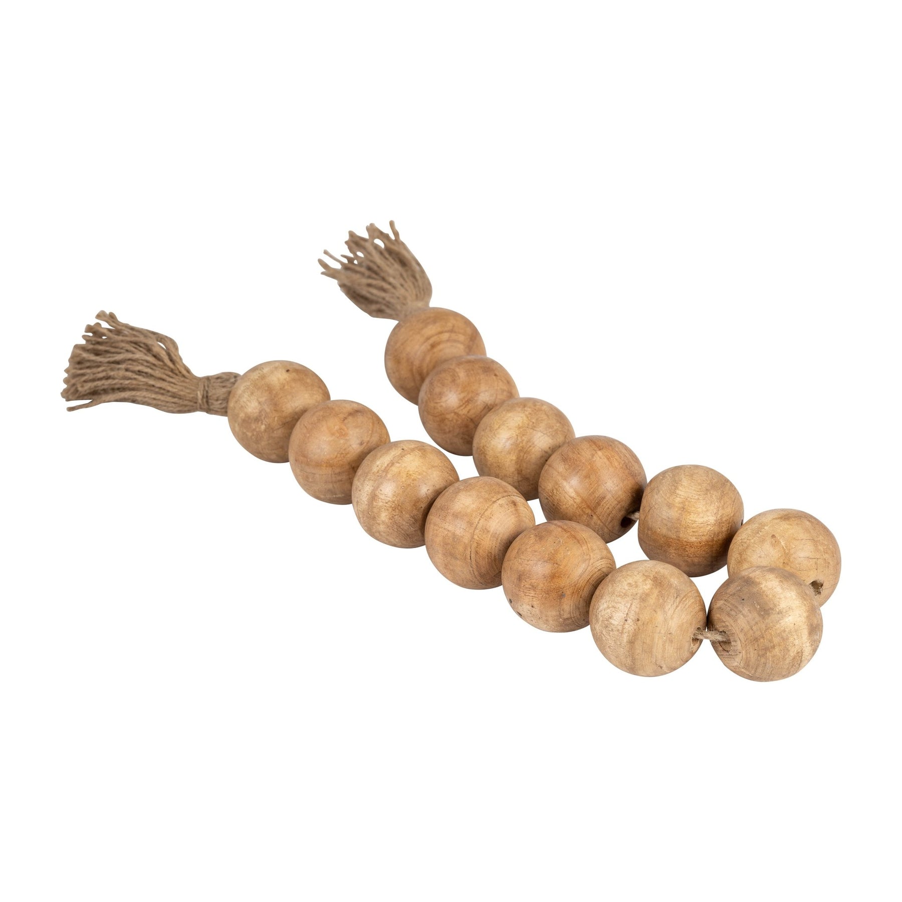 WOOD, 25" LARGE BEADED GARLAND W/ TASSEL, NATURAL