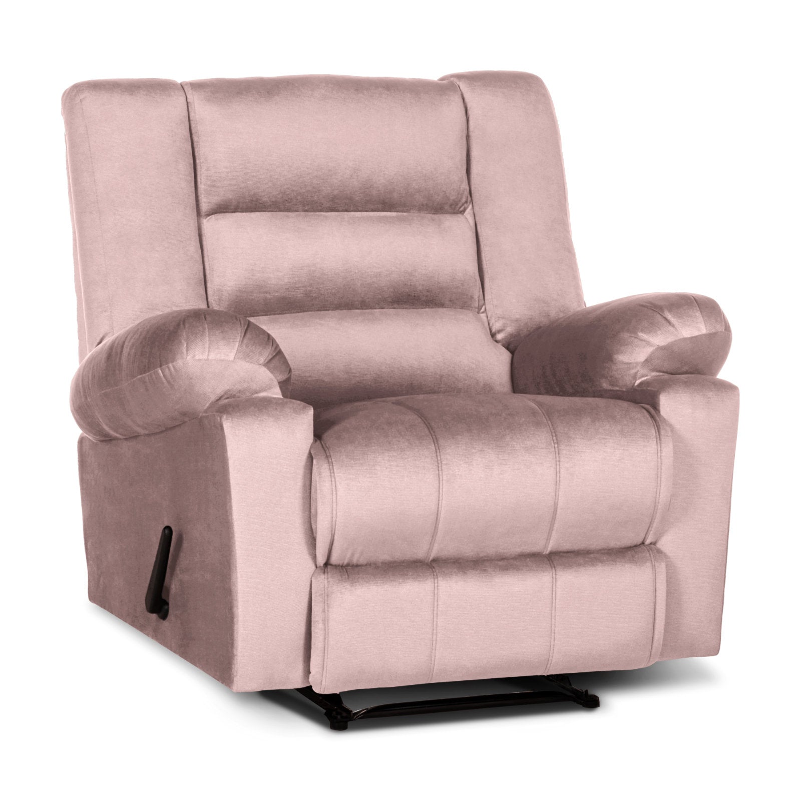Velvet Upholstered Rocking Recliner Chair With Bed Mode From In House - Light Pink - Nice 02