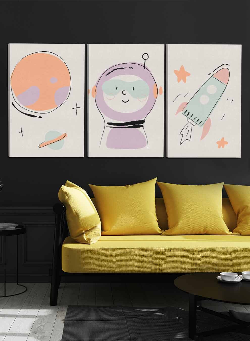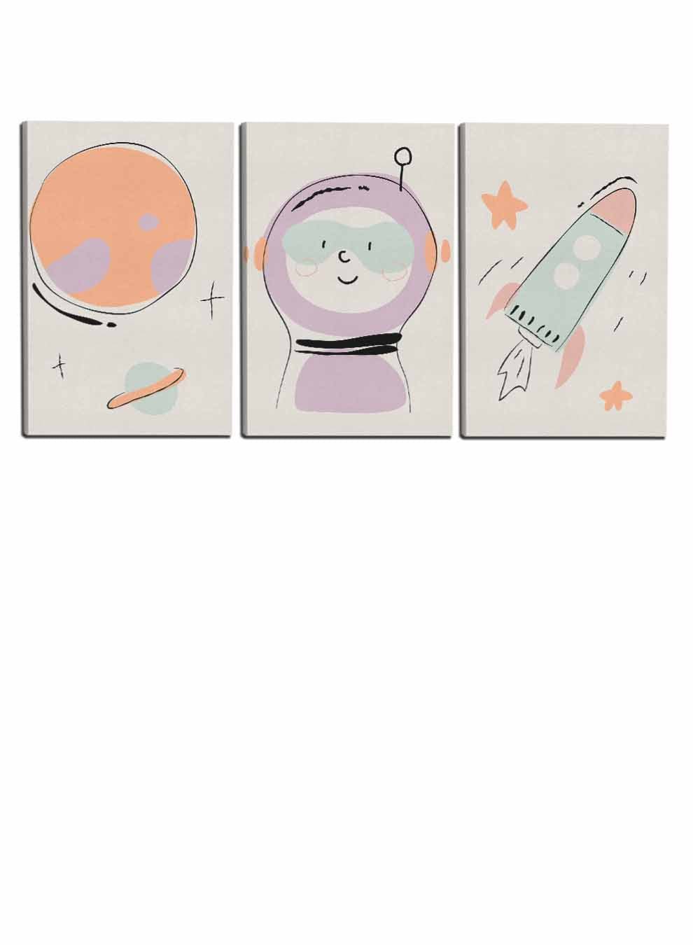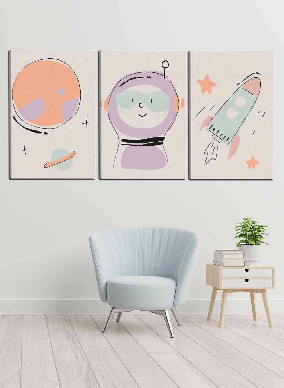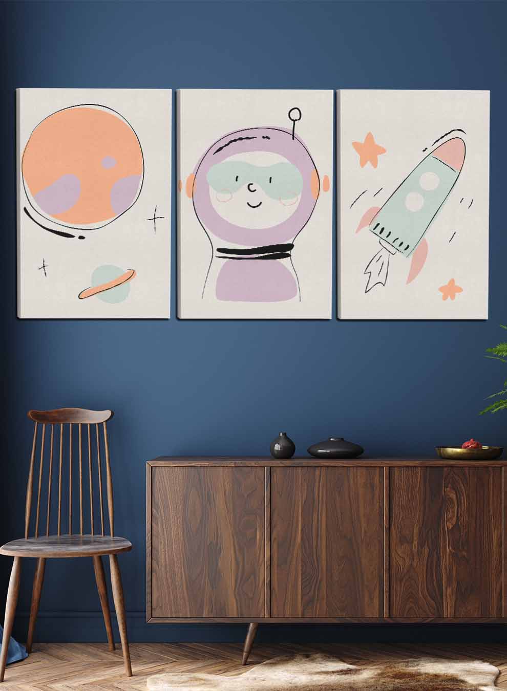 Kids Cute Astronaut Spaceship Stars Paintings(set of 3)