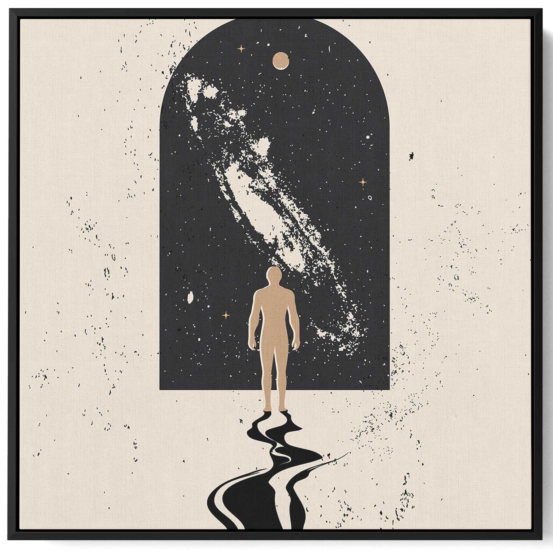 Square Canvas Wall Art Stretched Over Wooden Frame with Black Floating Frame and A Gate To Space Painting
