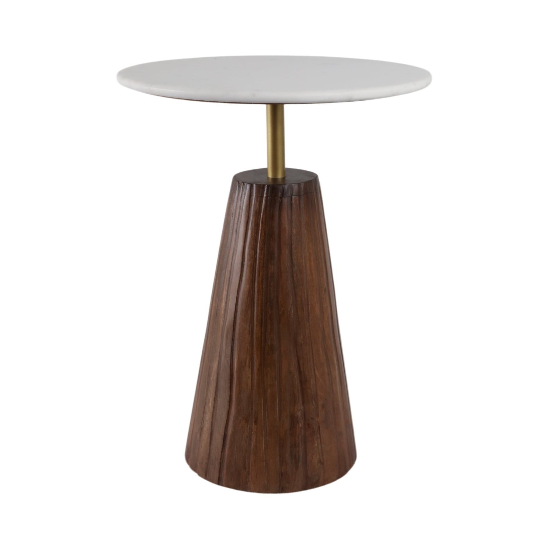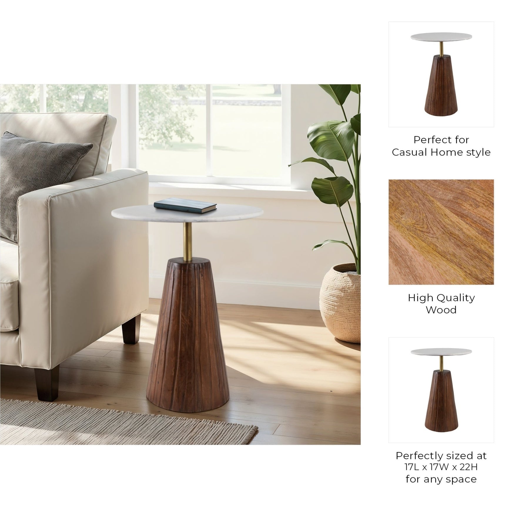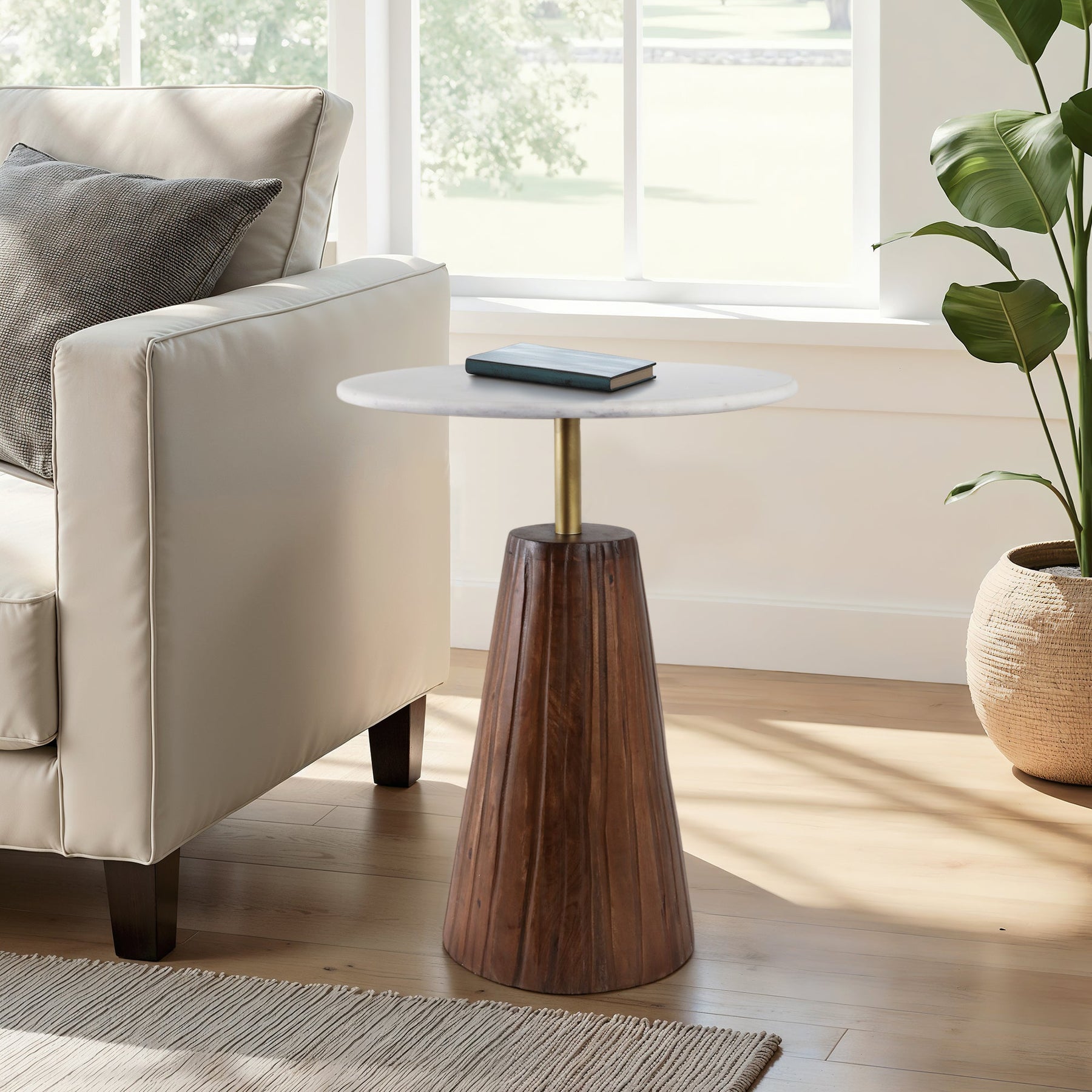 22X17" FLUTED BASE MARBLE TOP ACCENT TABLE,WHT/BRW - Al Rugaib Furniture