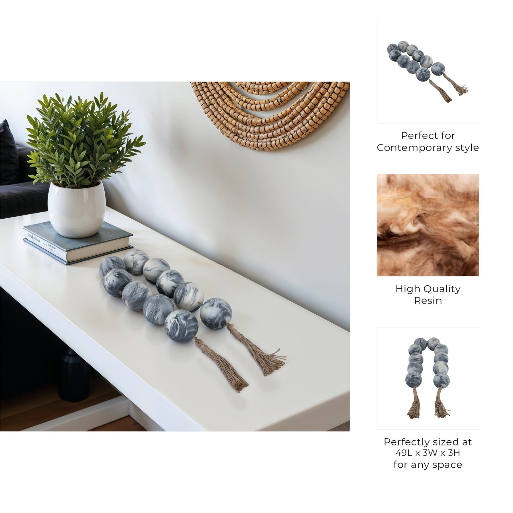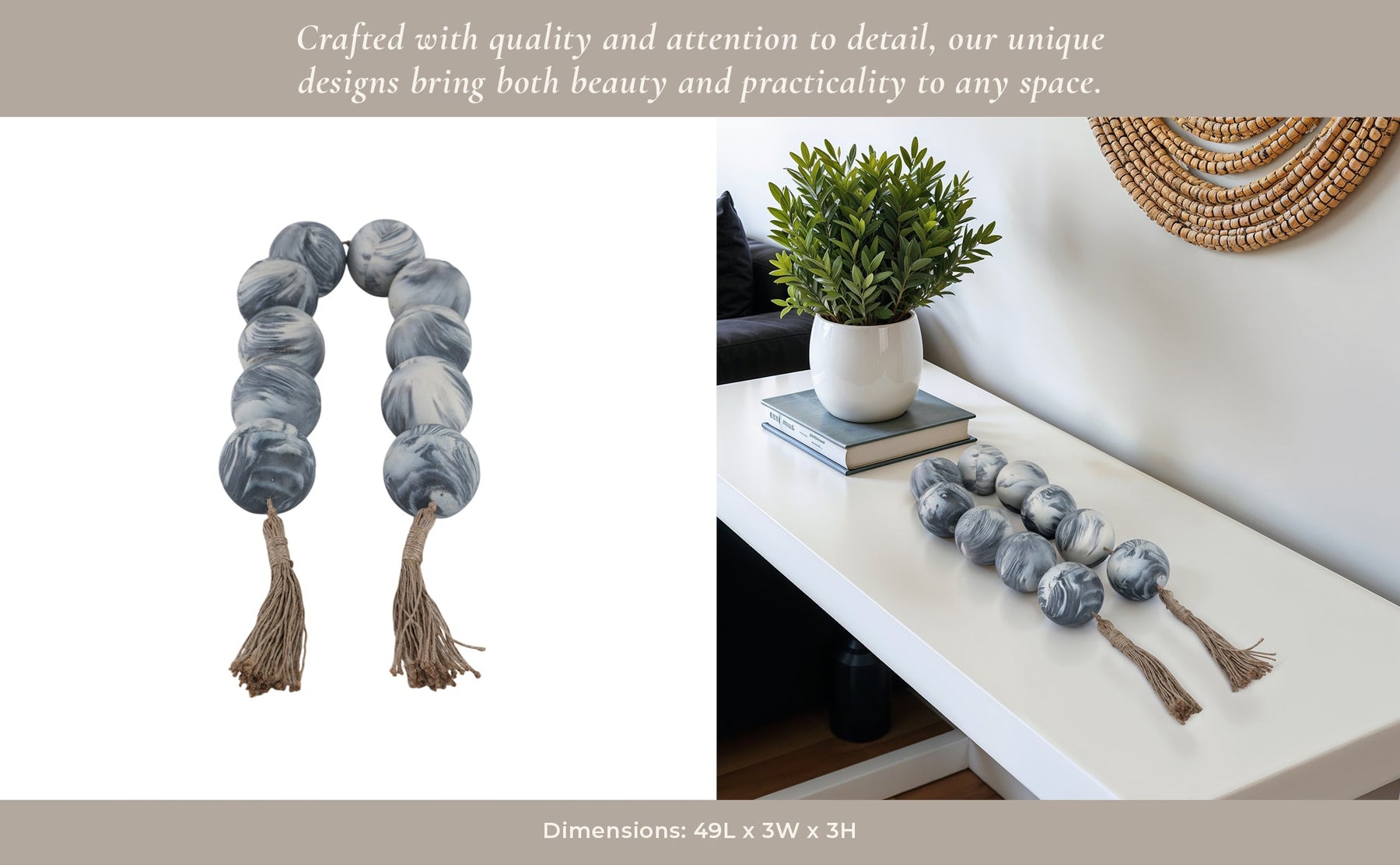 49x3" Marbled Bead Garland, Black/white - Al Rugaib Furniture