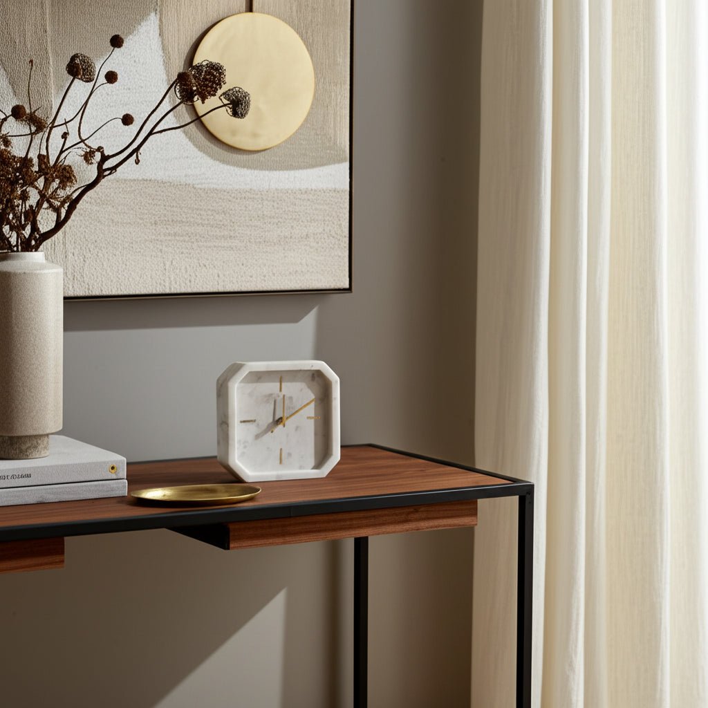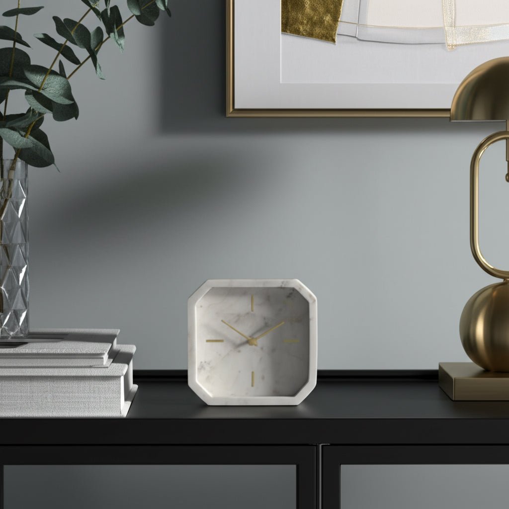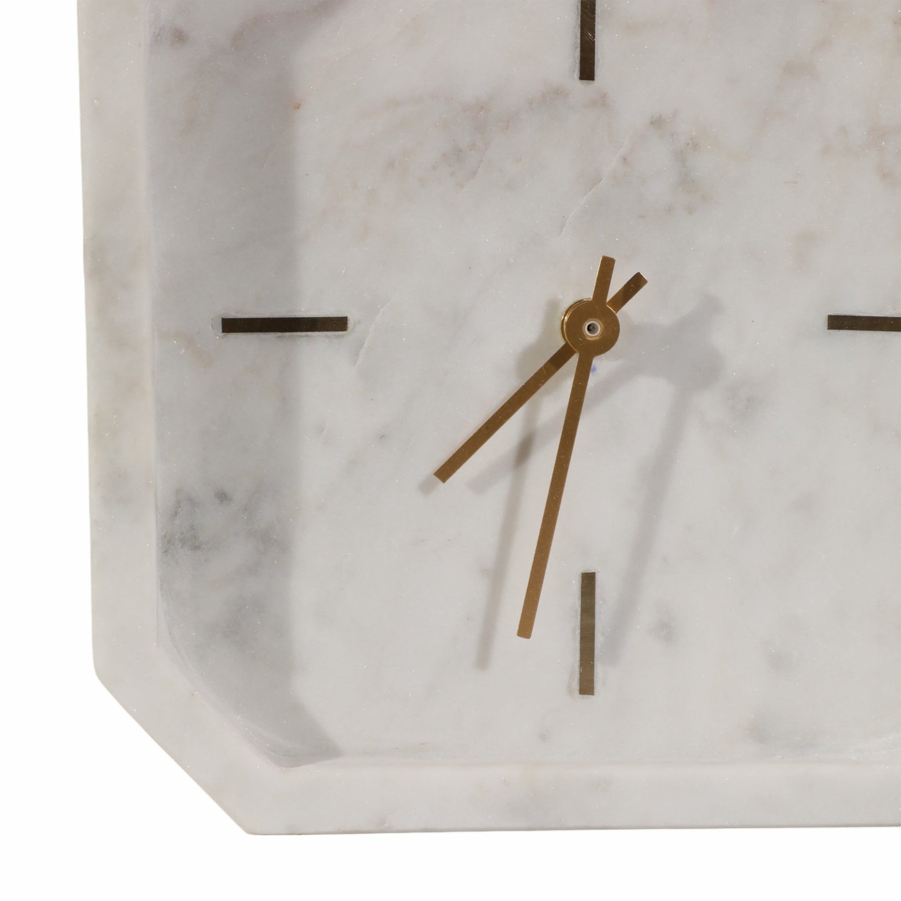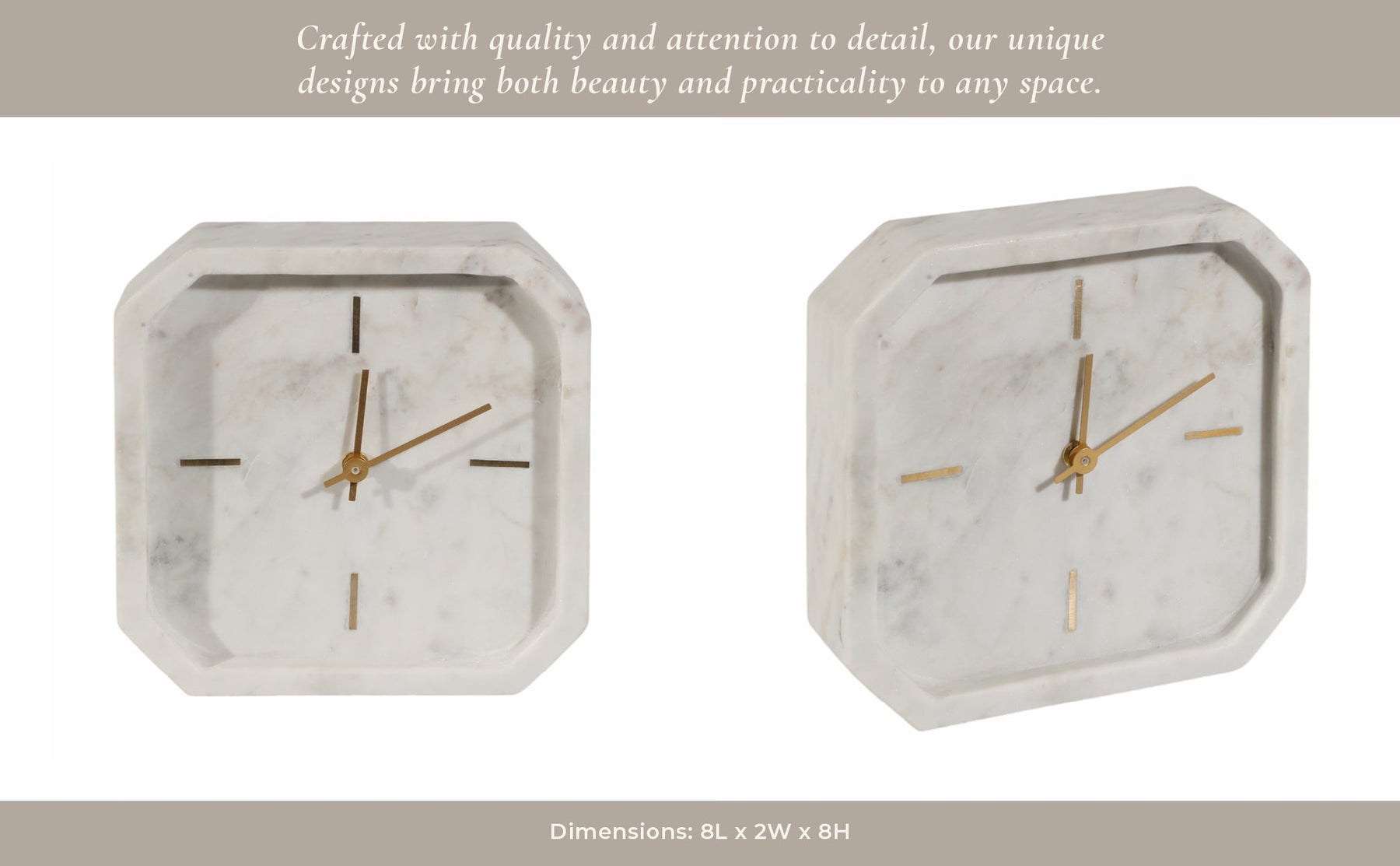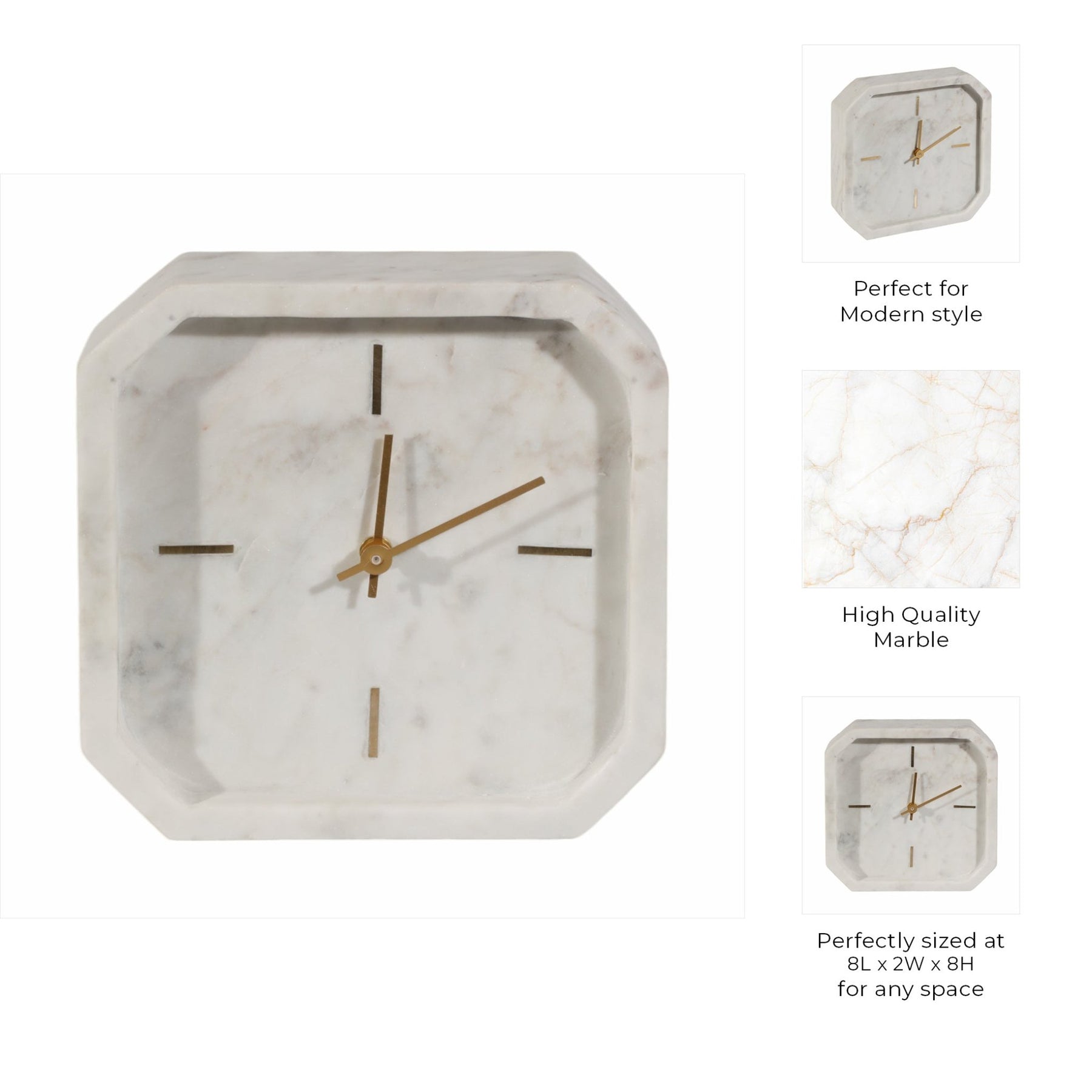 8" Marble Octagon Clock, Wht/gld - Al Rugaib Furniture