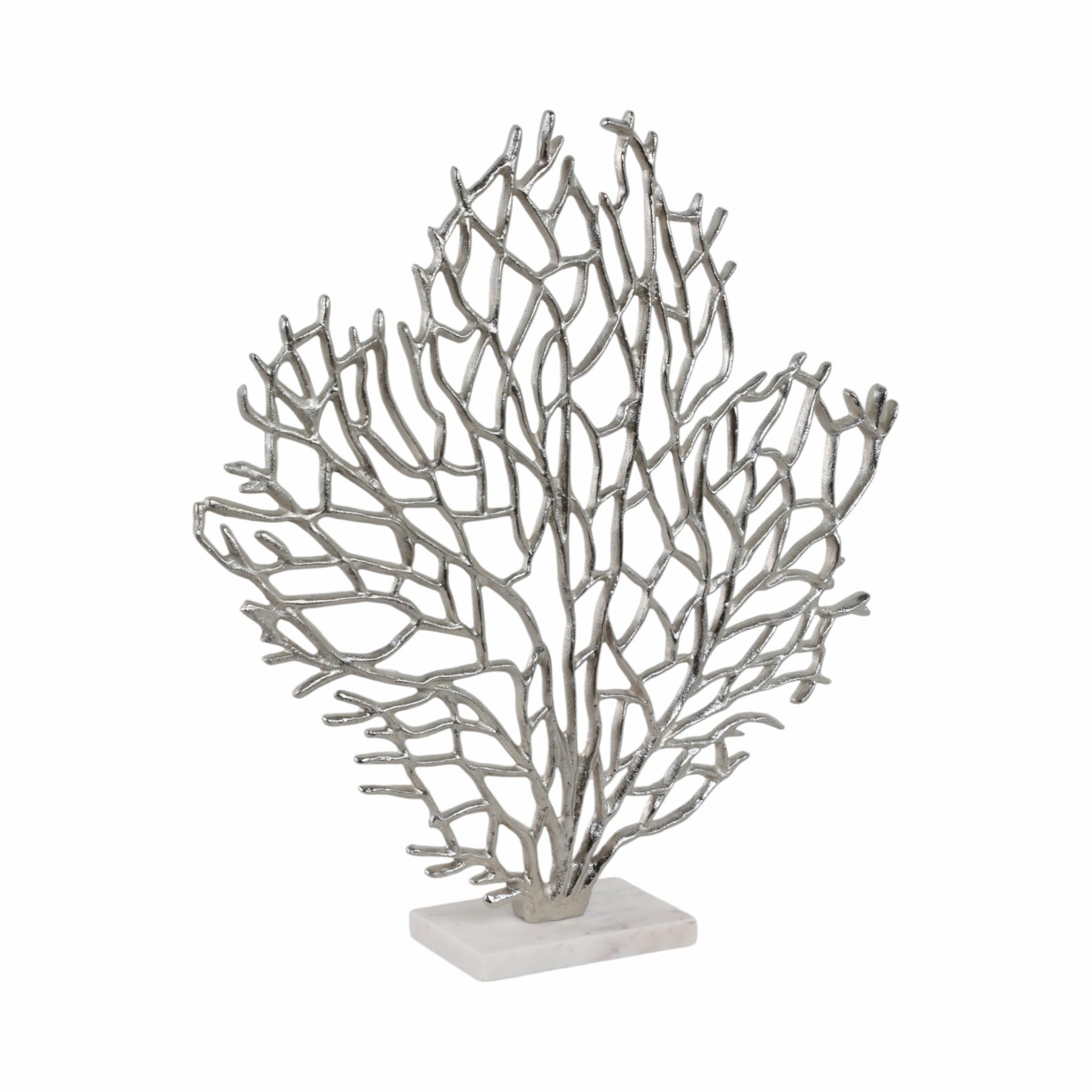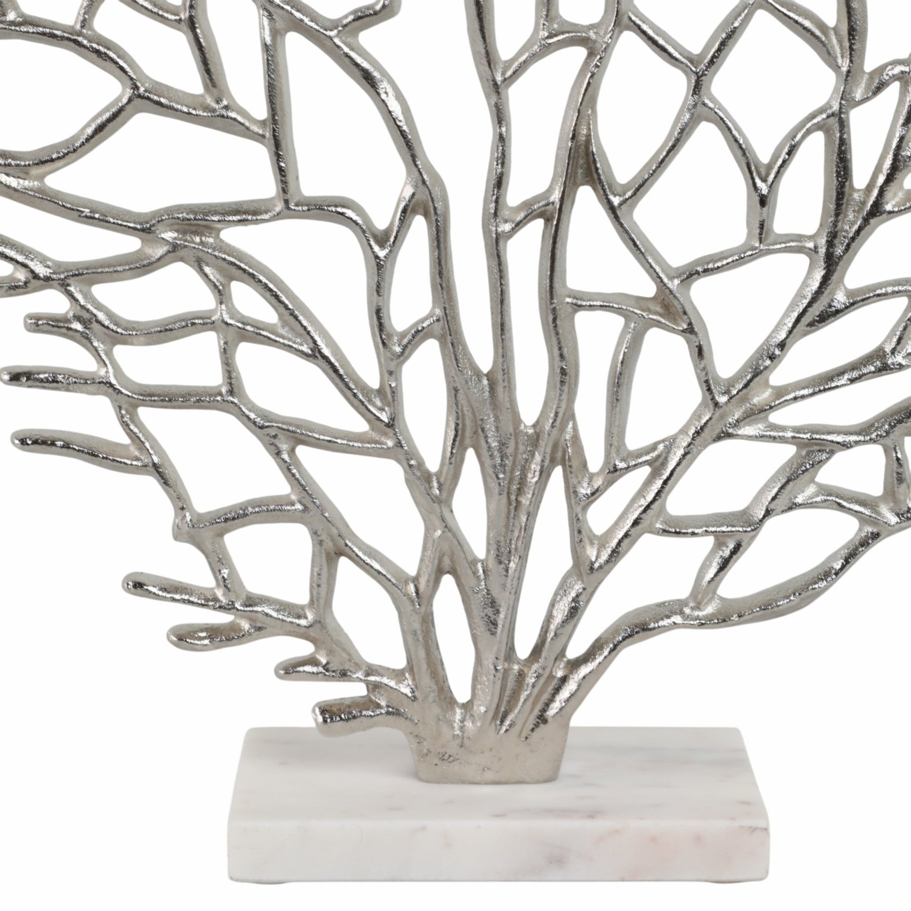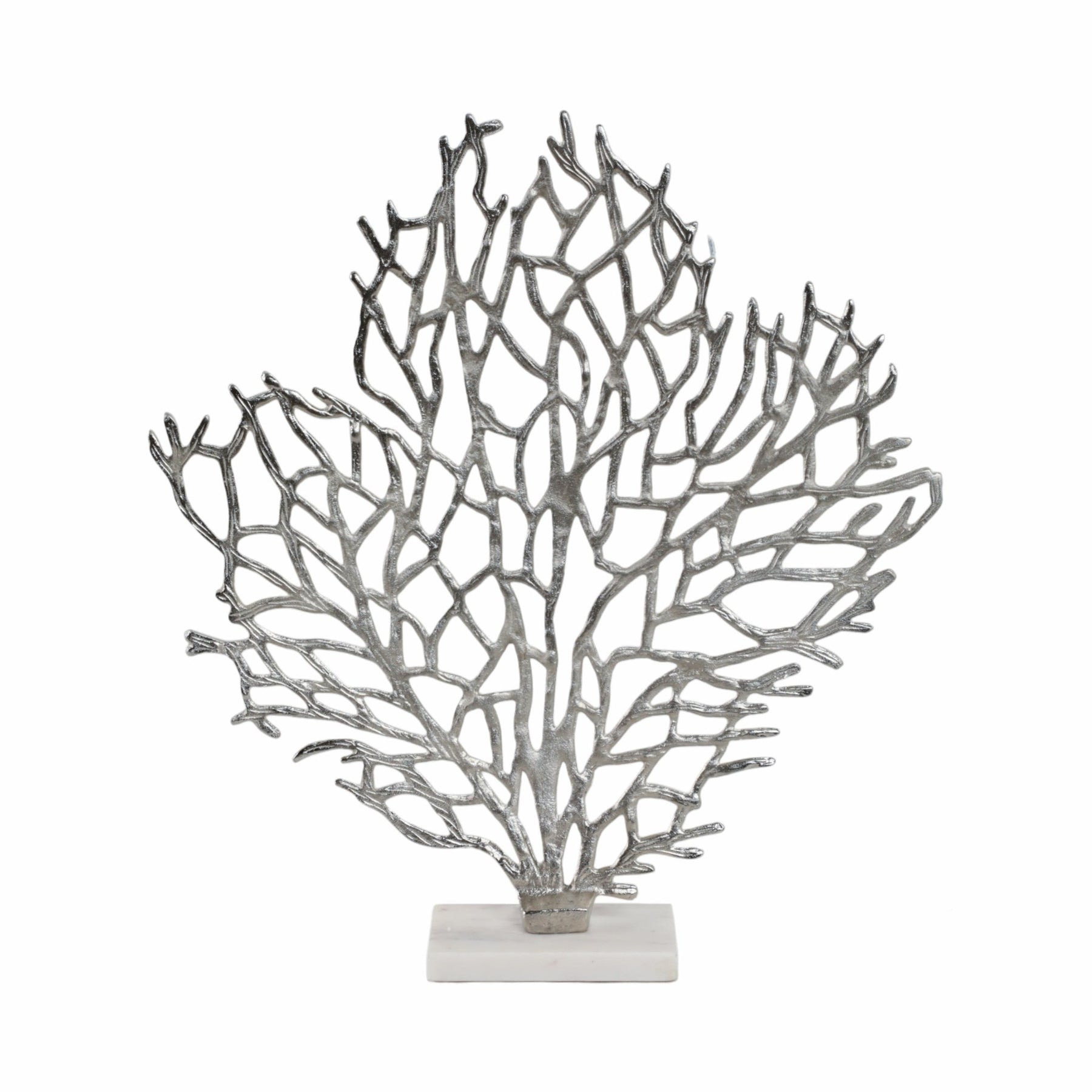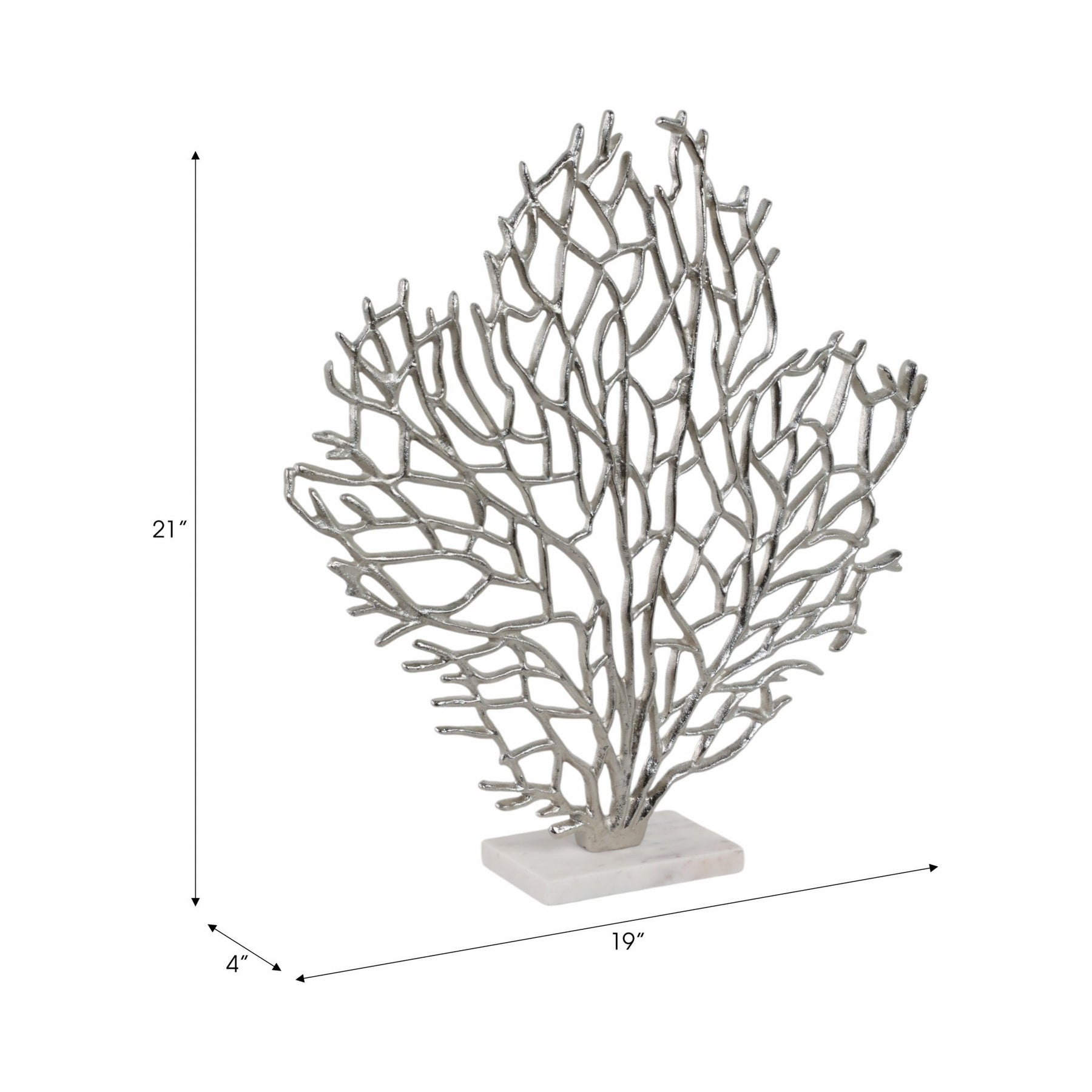 Metal, 21" Coral On Marble Base, Silver - Al Rugaib Furniture