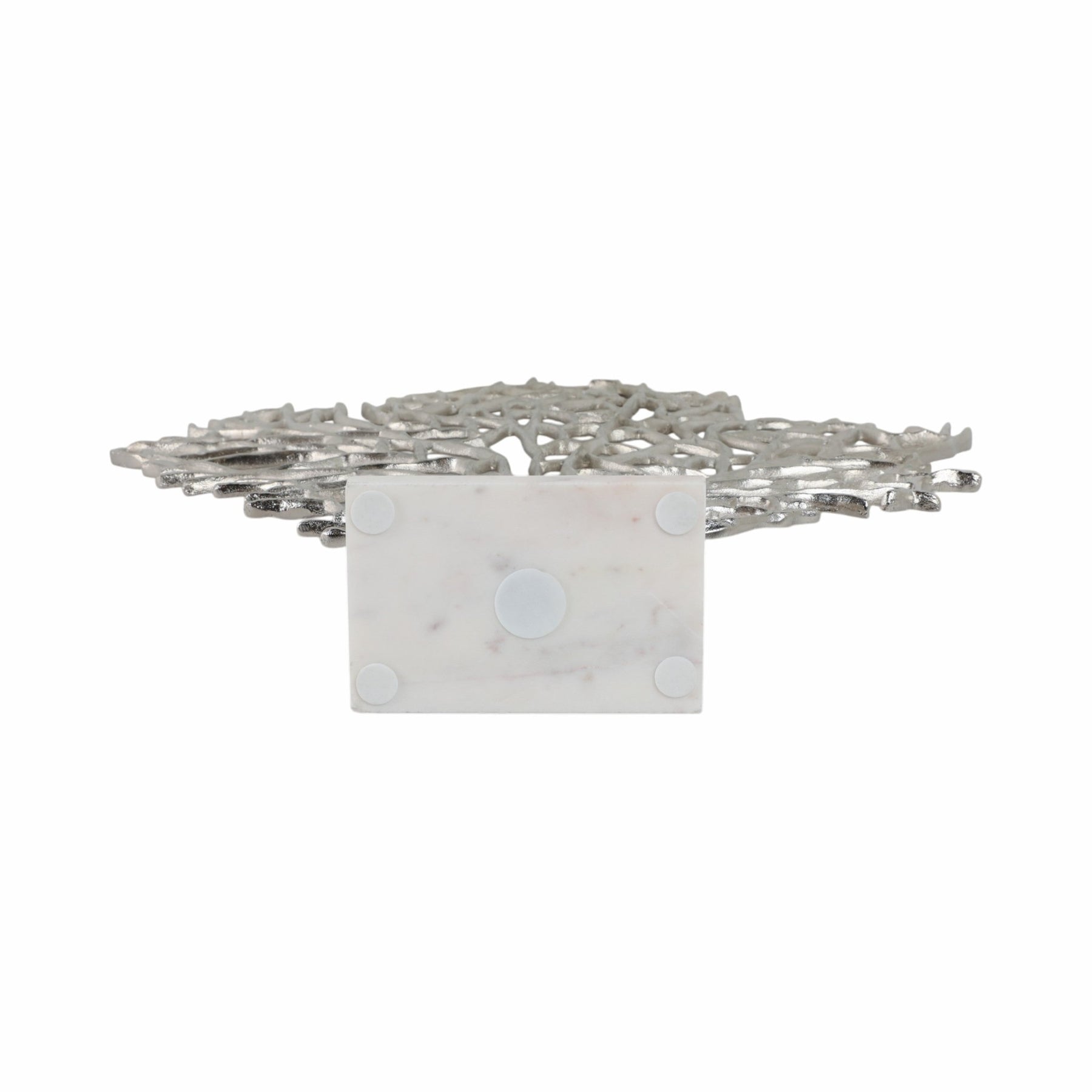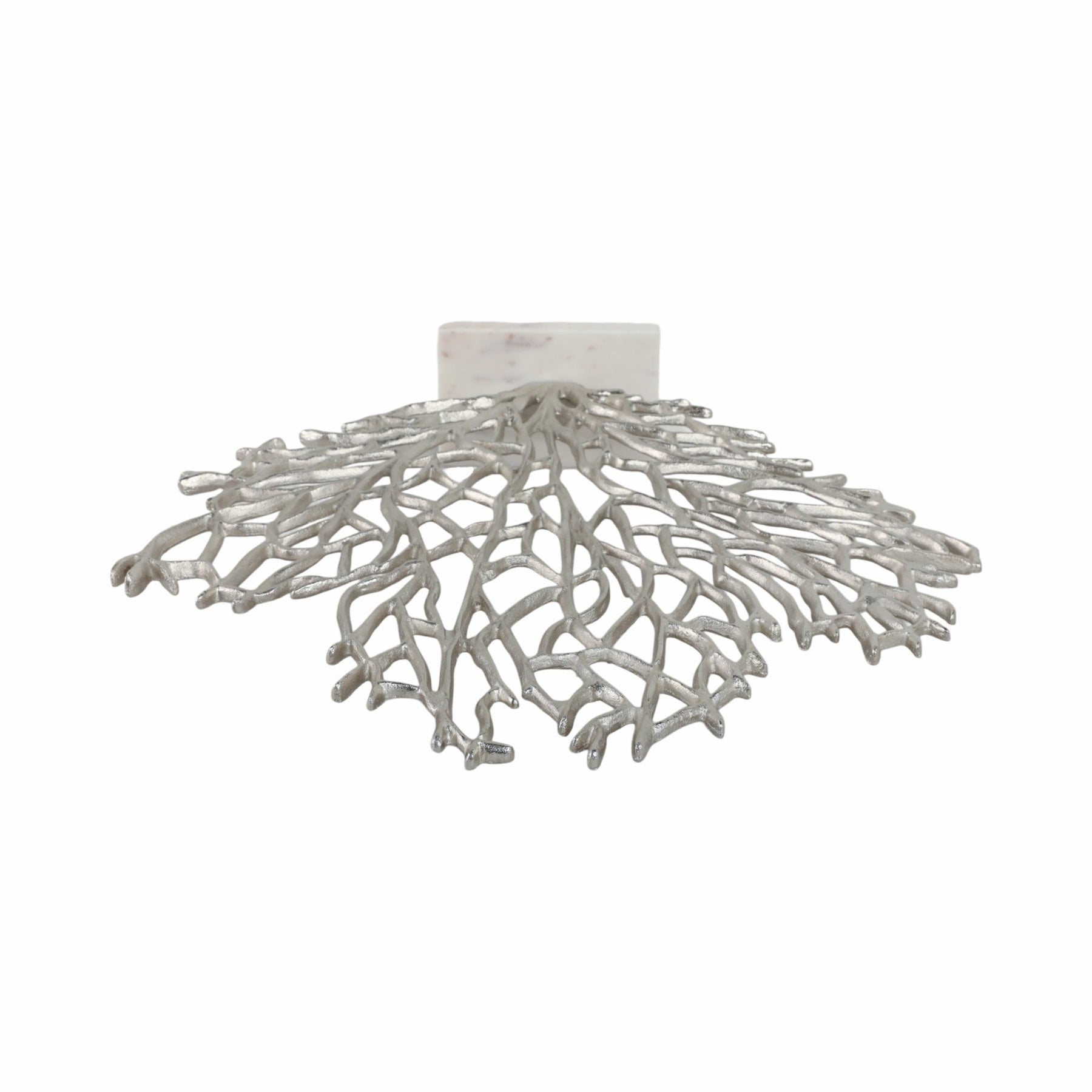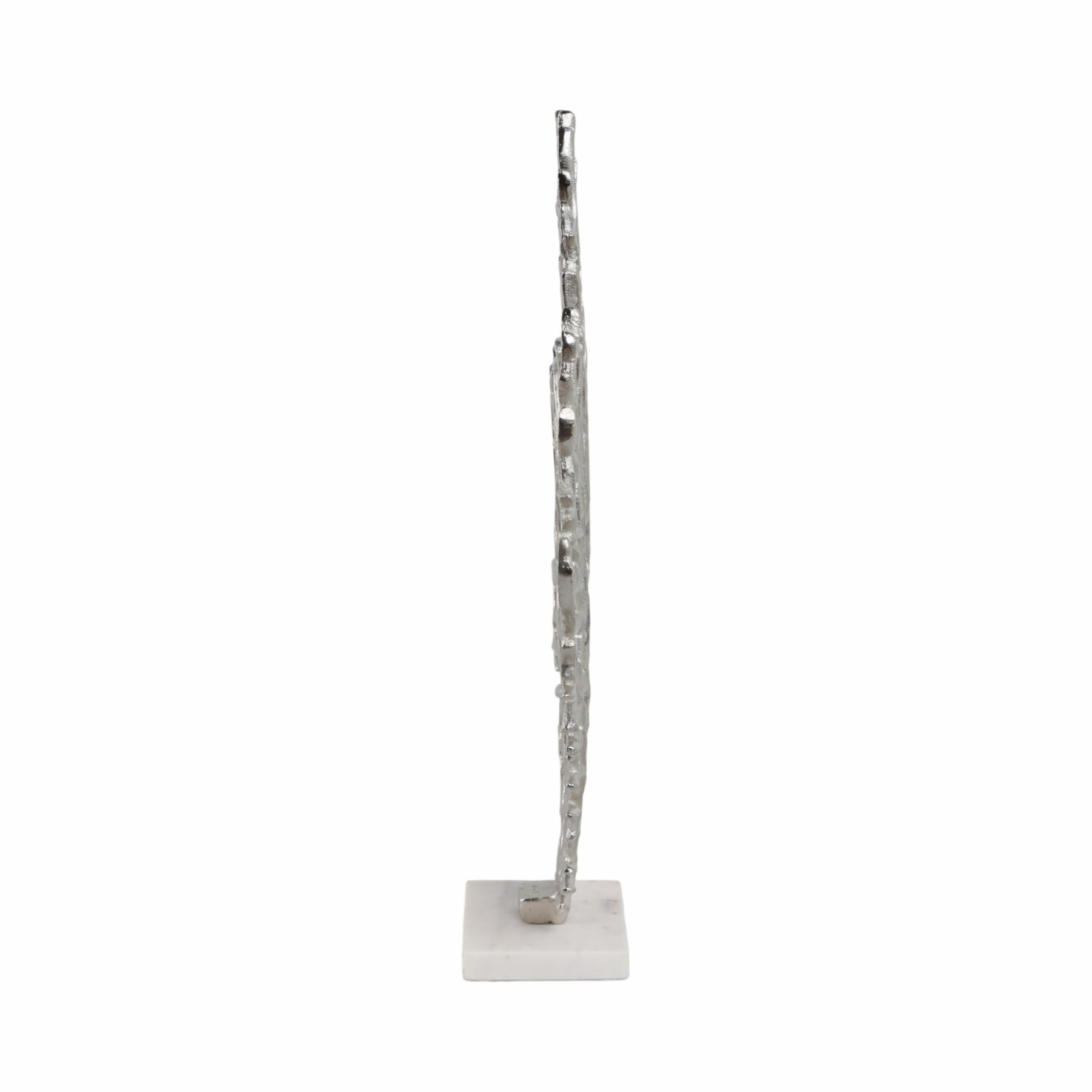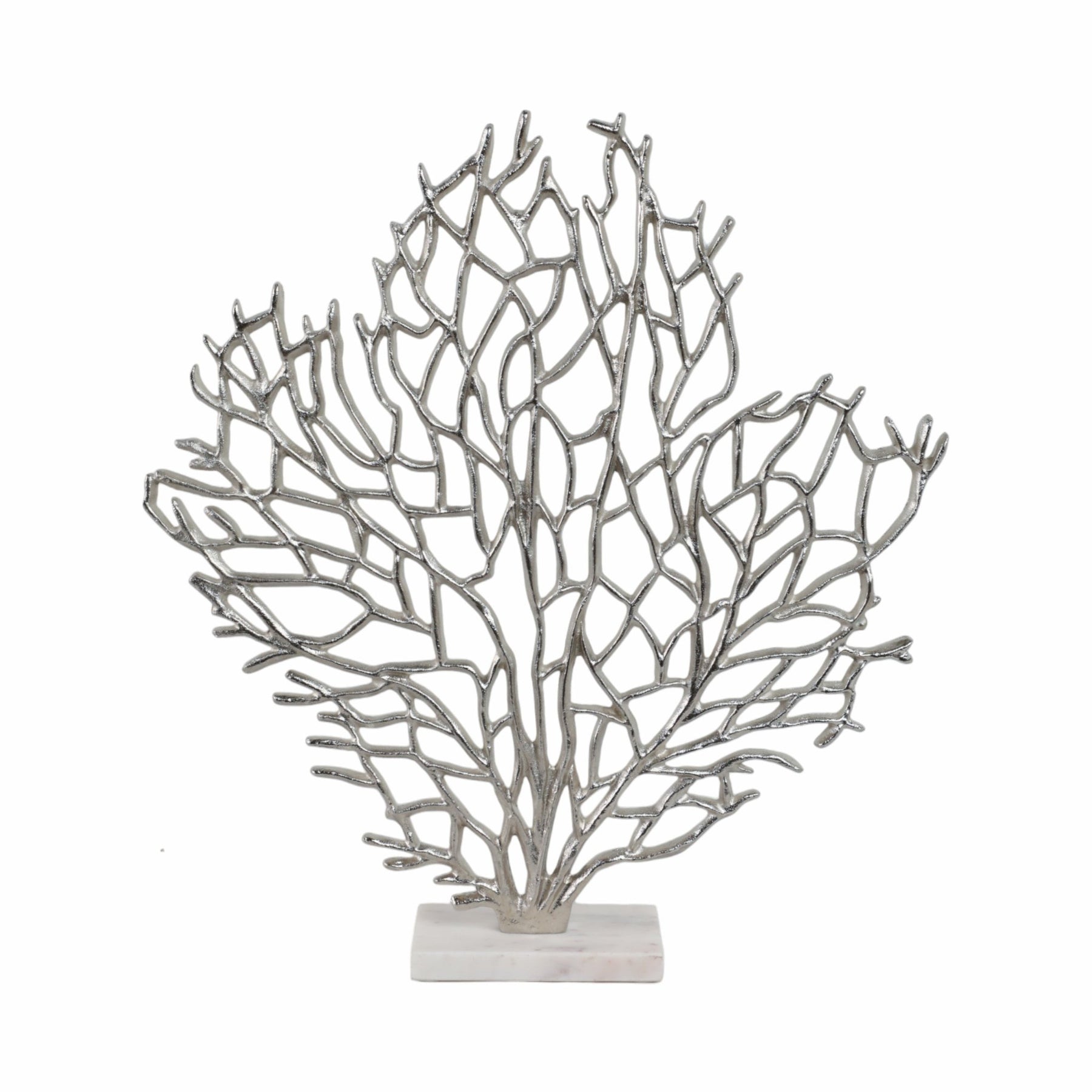 Metal, 21" Coral On Marble Base, Silver - Al Rugaib Furniture