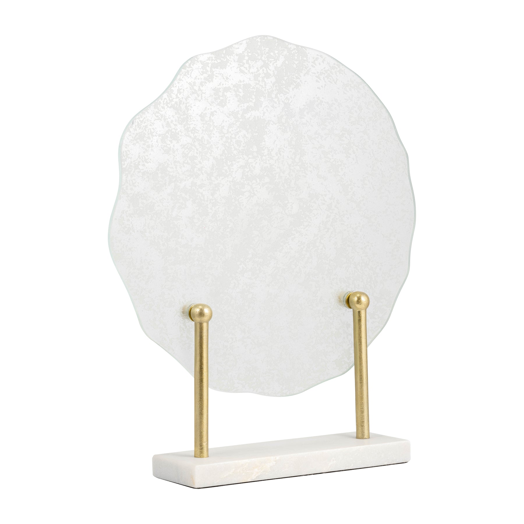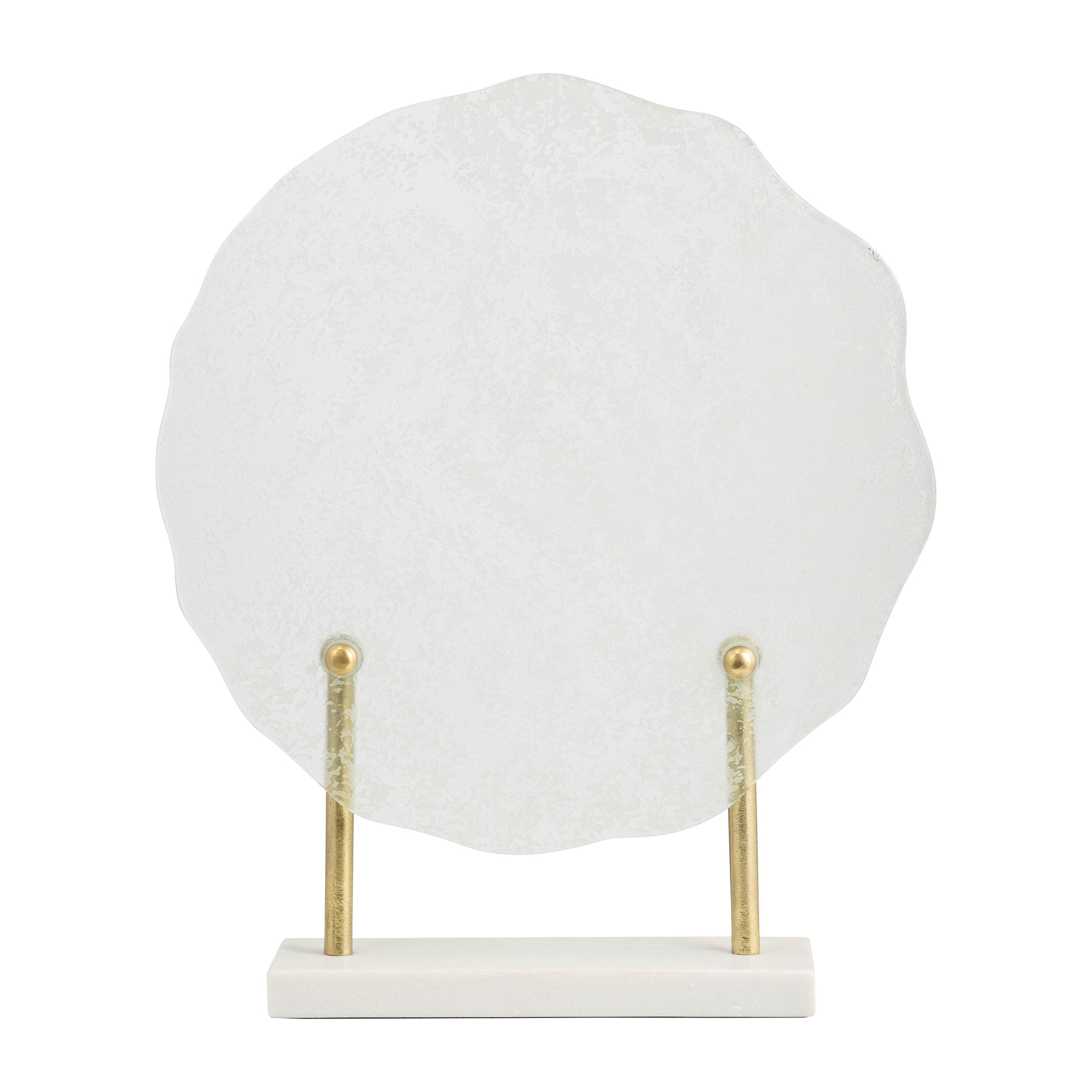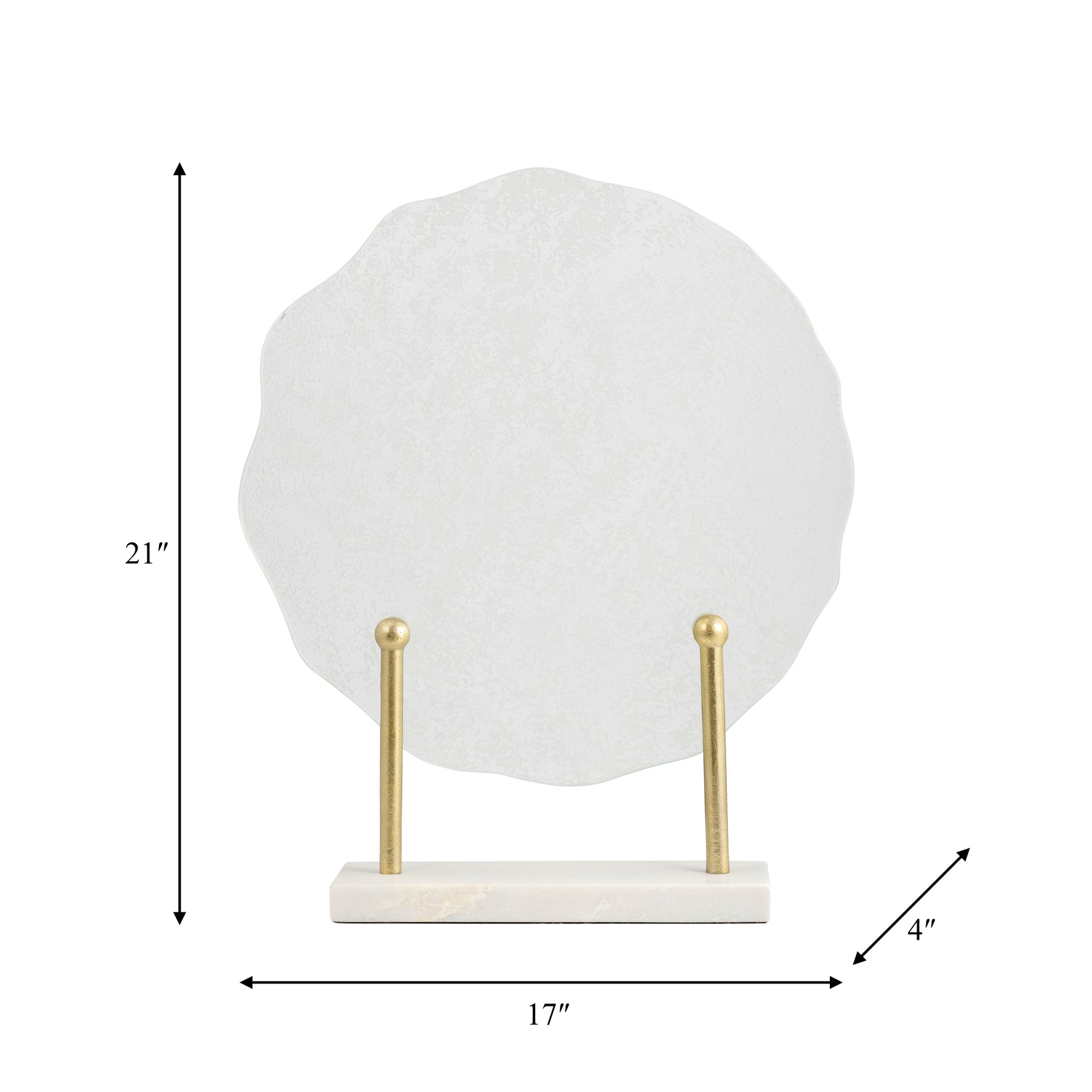 METAL,21"H,SPECKLED GLASS DISC ON MARBLE STAND,WHI