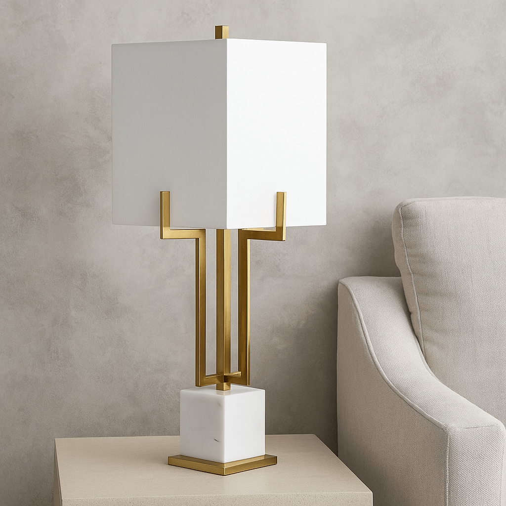 METAL 32" TABLE LAMP WITH WHITE MARBLE BASE, GOLD