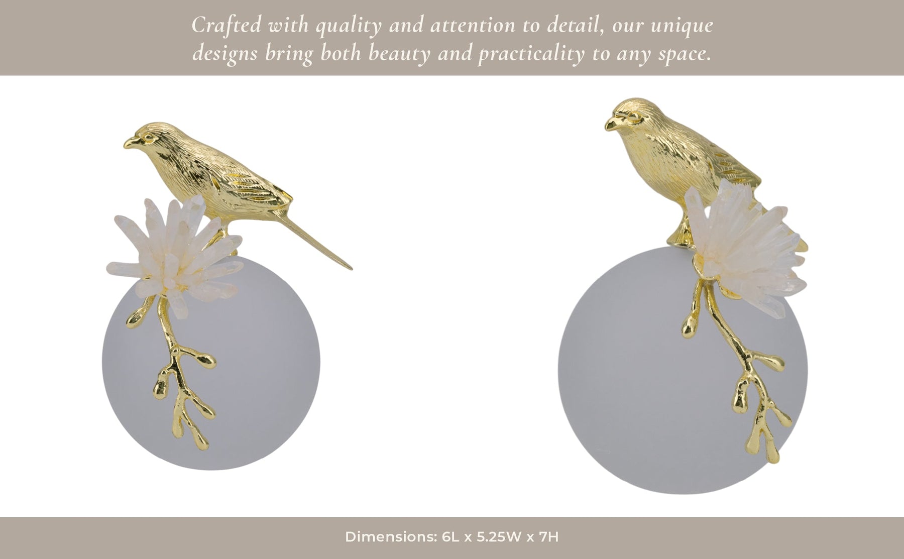 7" Madilynn Crystal Sphere Metal Bird Statuary
