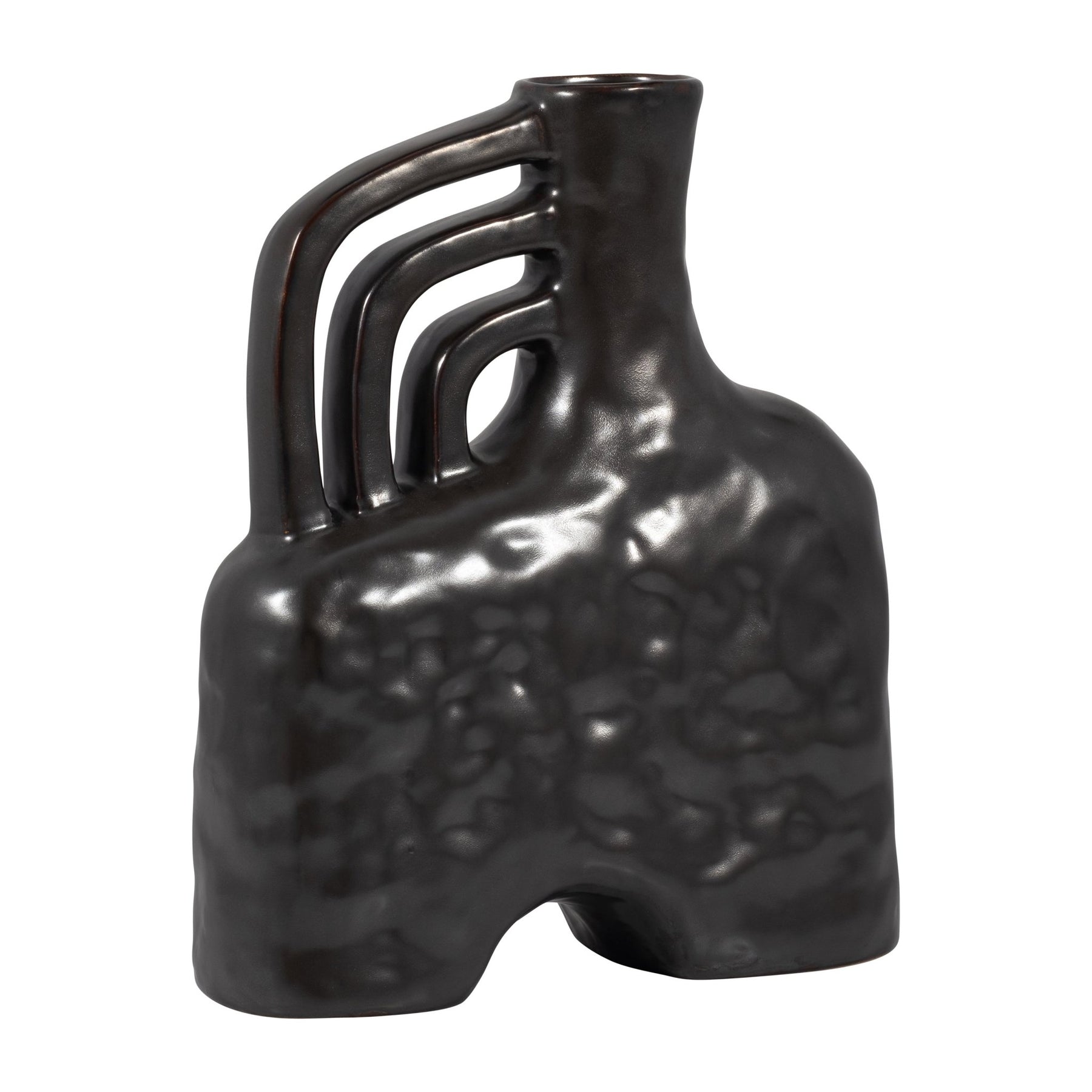 CER, 12" METALLIC TRIPLE HANDLE VASE, BLACK