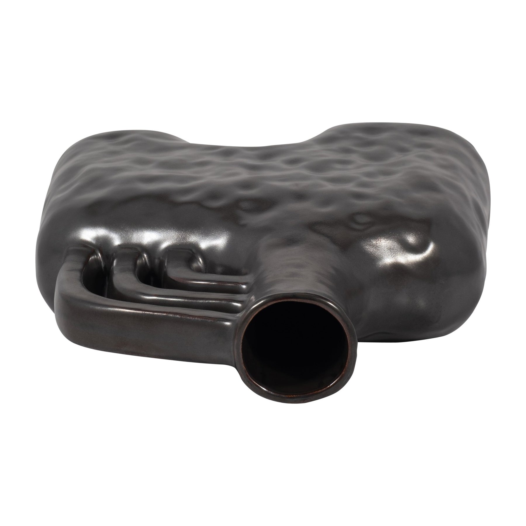 CER, 12" METALLIC TRIPLE HANDLE VASE, BLACK - Al Rugaib Furniture