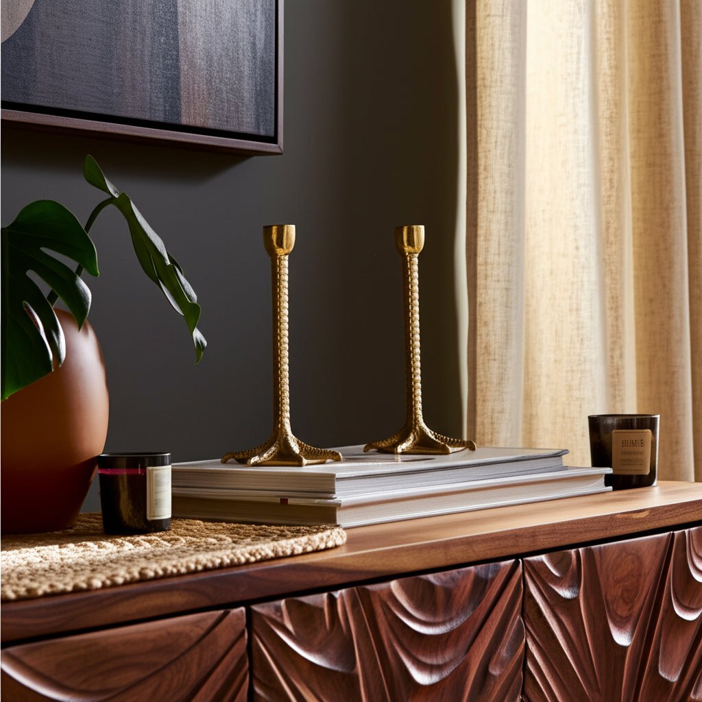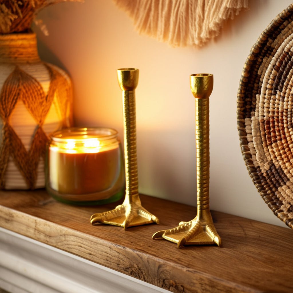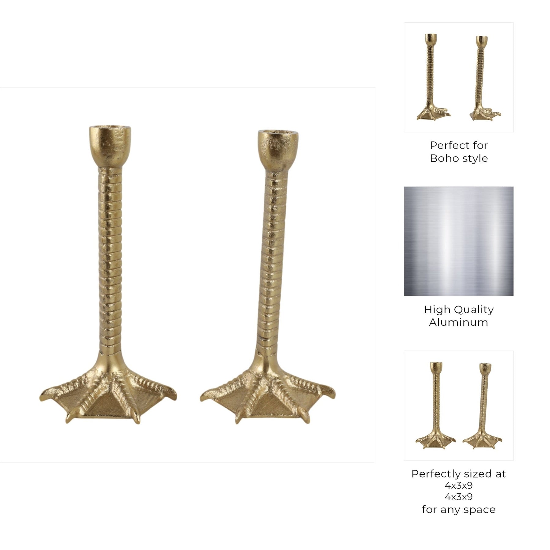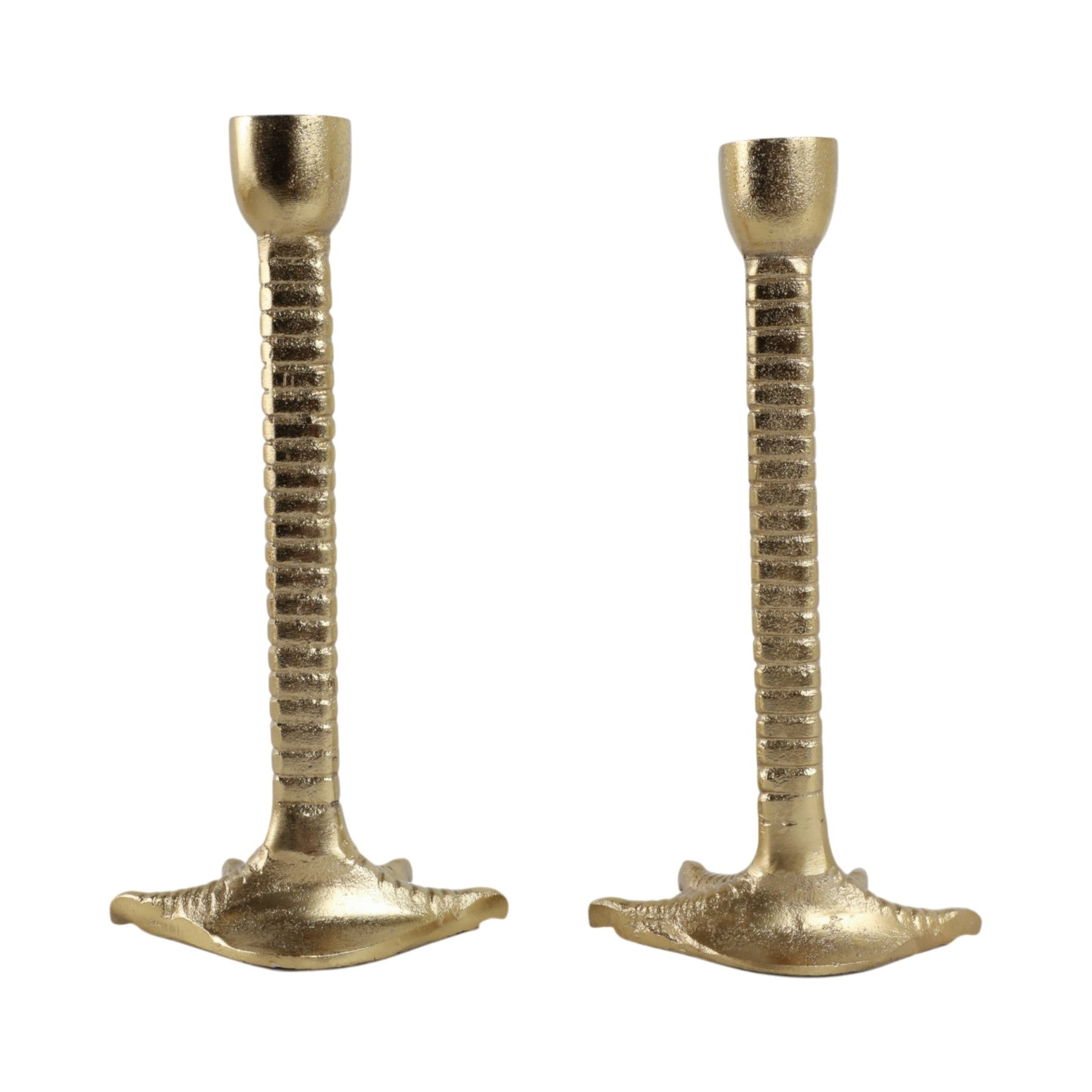 Metal, S/2 9" Bird Legs Taper Candle Holders, Gold