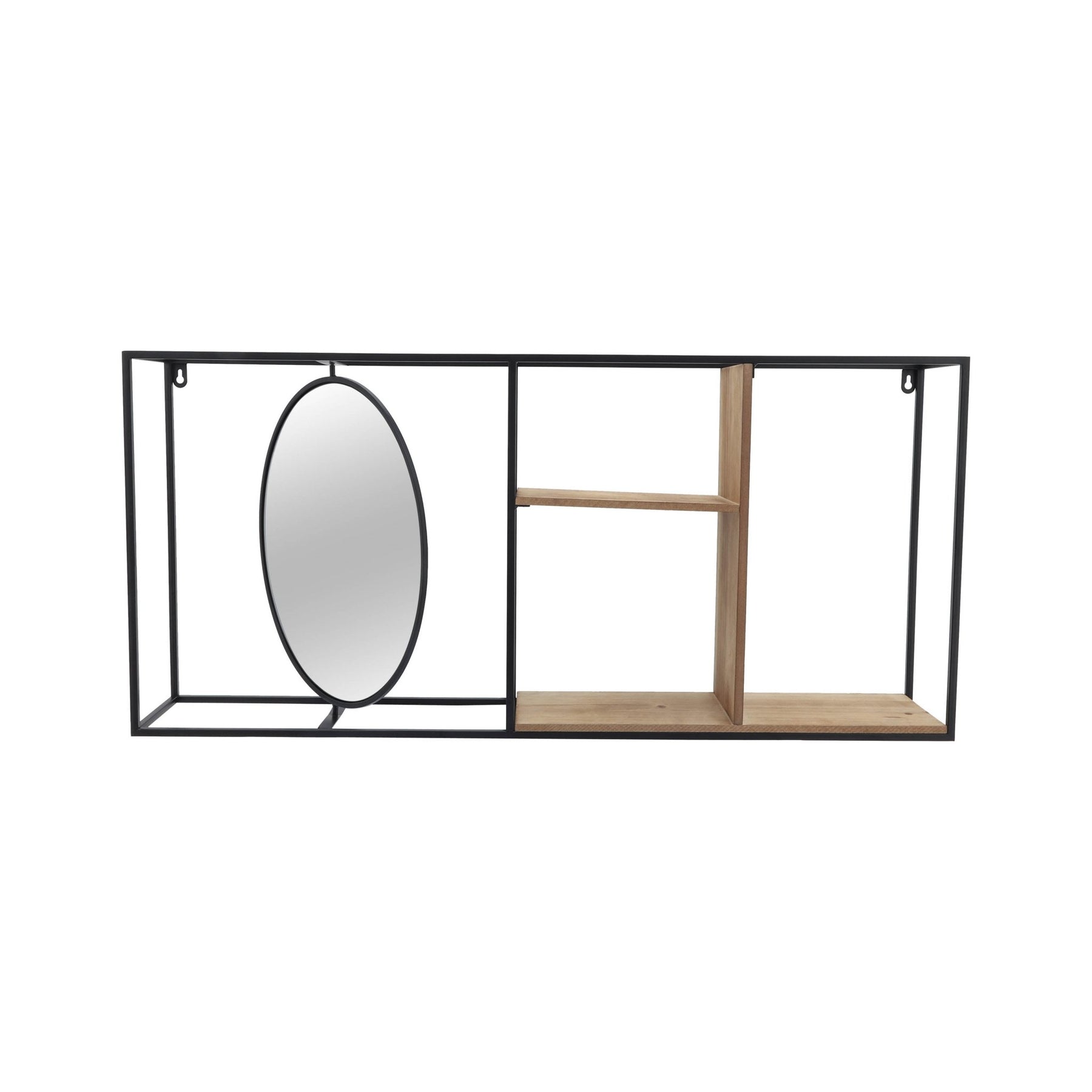 METAL/WOOD 34"L WALL SHELF WITH MIRROR, BLACK/BROW