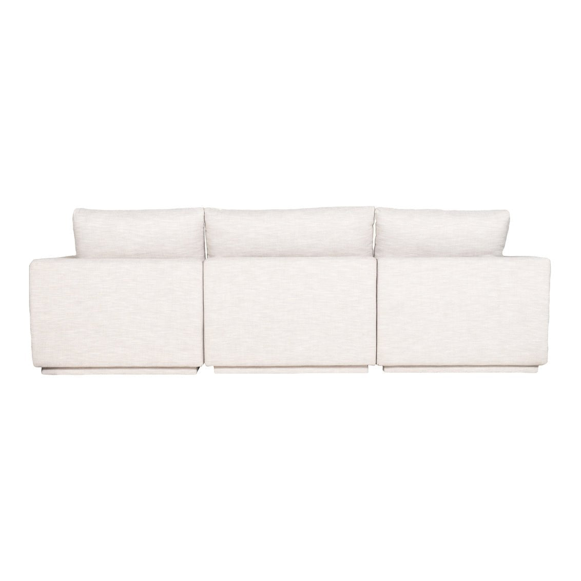 An everyday modular marvel. The Justin modular sectional is all about options, so sizing and space-fitting are up to you until you find the perfect arrangement for this contemporary modern design! Outfitted in a linen-blend upholstery that's gentle to the touch with bouncy, high-density foam seating to cozy you and the whole family in comfort. A versatile design for any sized space, Justin is available in a corner chair, slipper chair, and stylish ottoman.