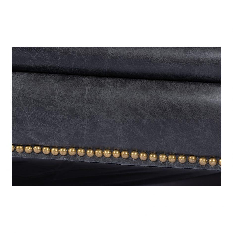 Capturing the bold elements of traditional design, the Birmingham Sofa adds sophistication to your living space with its top-grain leather's deep charcoal. Sharp details are apparent in the chesterfield's tufted back, rolled arms, and meticulously placed brass detailing—pairs nicely with an Old Fashioned.