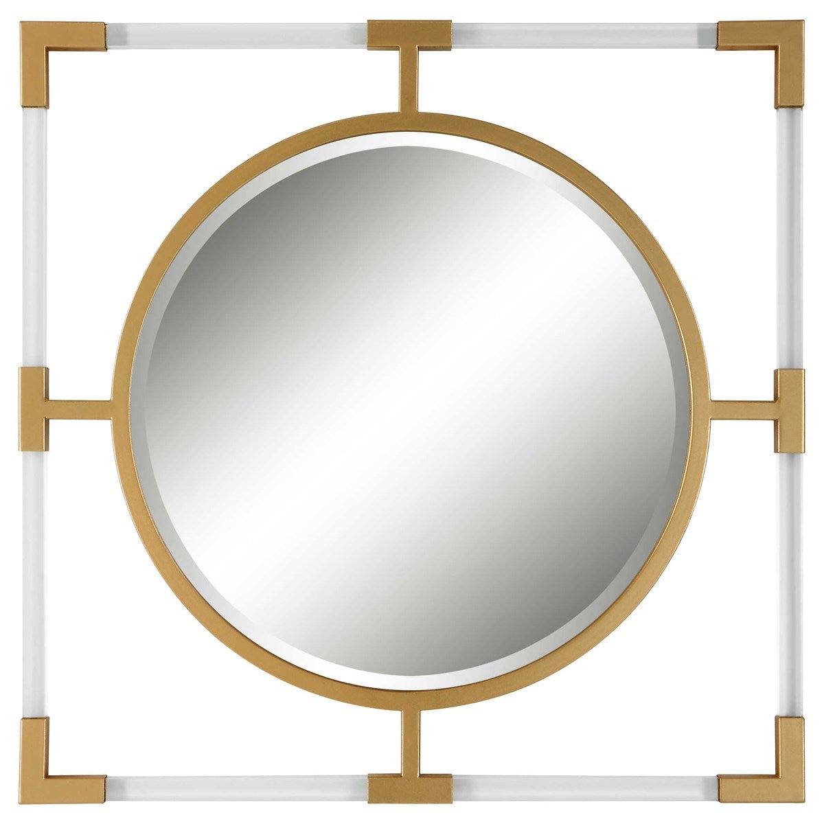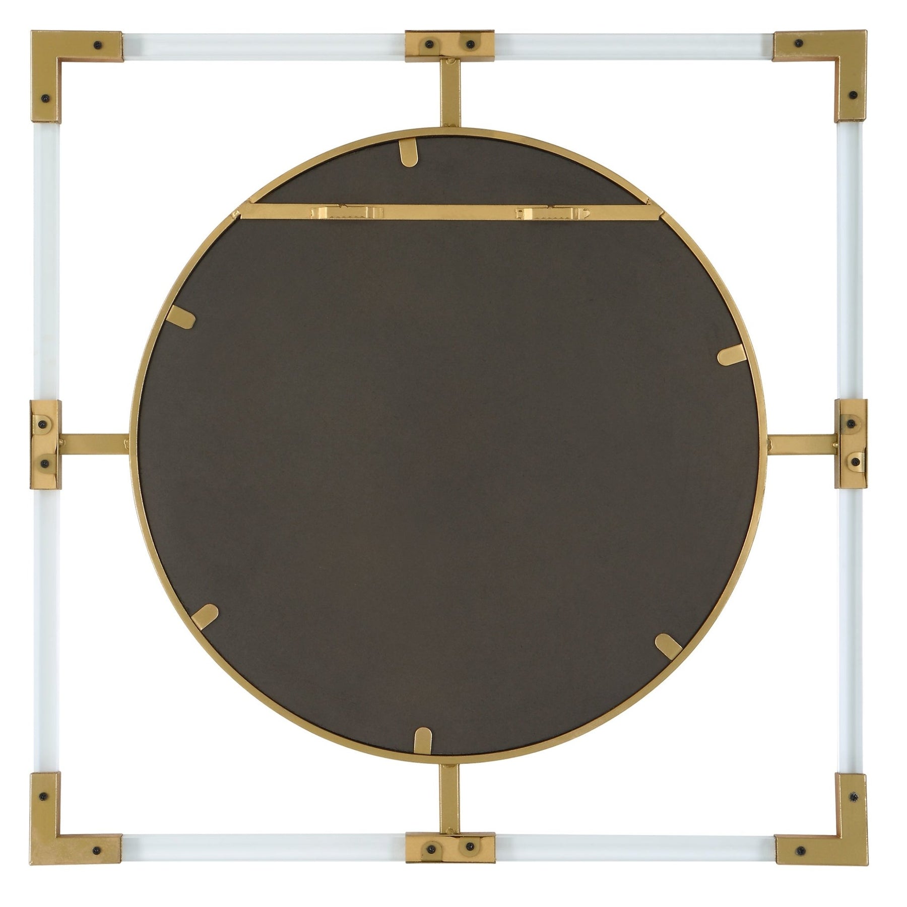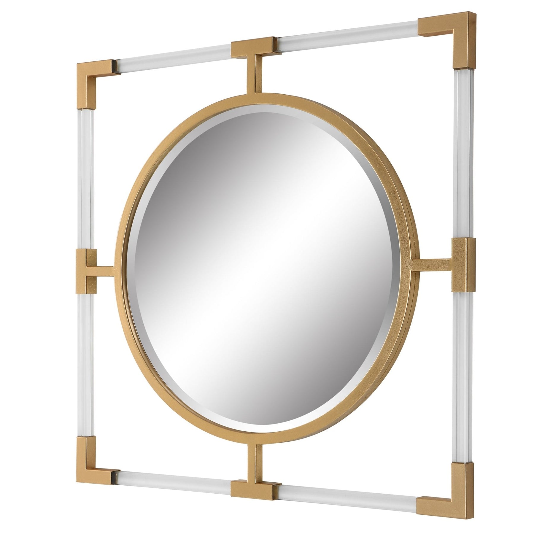 The Balkan Small Mirror Looks Great Alone Or Paired With Multiple For A Stunning Display. The Forged Iron Frame Is Finished In A Metallic Gold Leaf, With Suspended, Clear Acrylic, Solid Bars Creating A Modern Feel. Mirror Has A 1" Bevel.