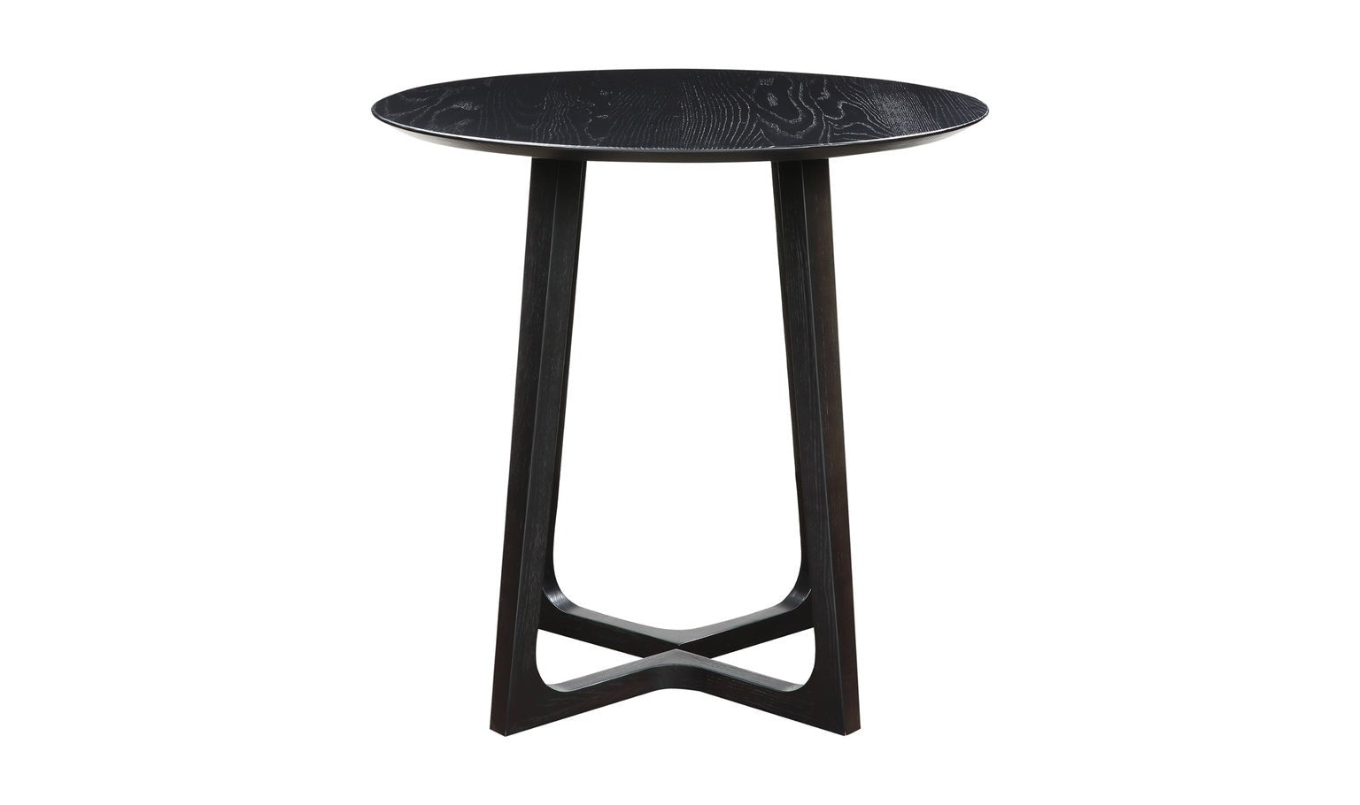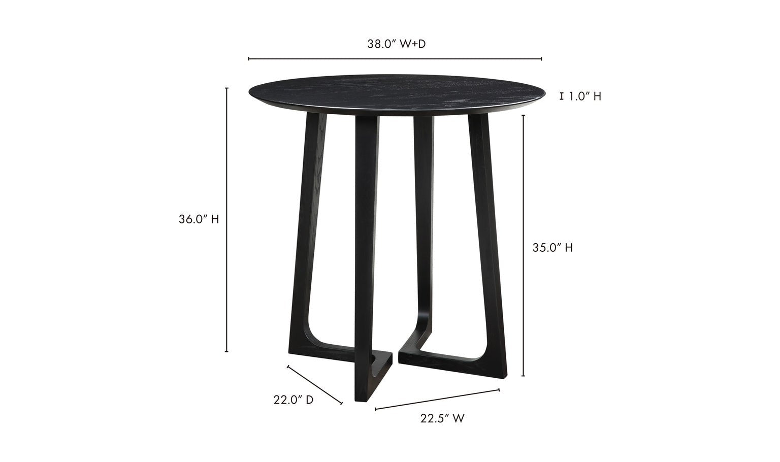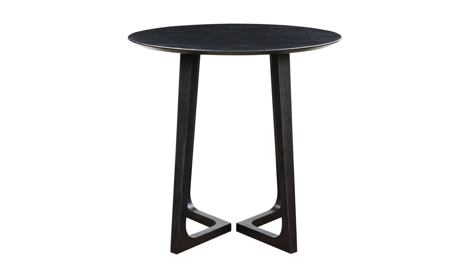 Discover sculptural kitchen and dining design with the Godenza collection. A contemporary take on a mid-century modern classic, the Gozenda round counter table is constructed from solid ash with a black, semi-gloss finish. With a look that will last a lifetime, this counter-height table features a uniquely shaped base that lends a more refined, sculptural feel—an ideal design for smaller kitchens or dining rooms.