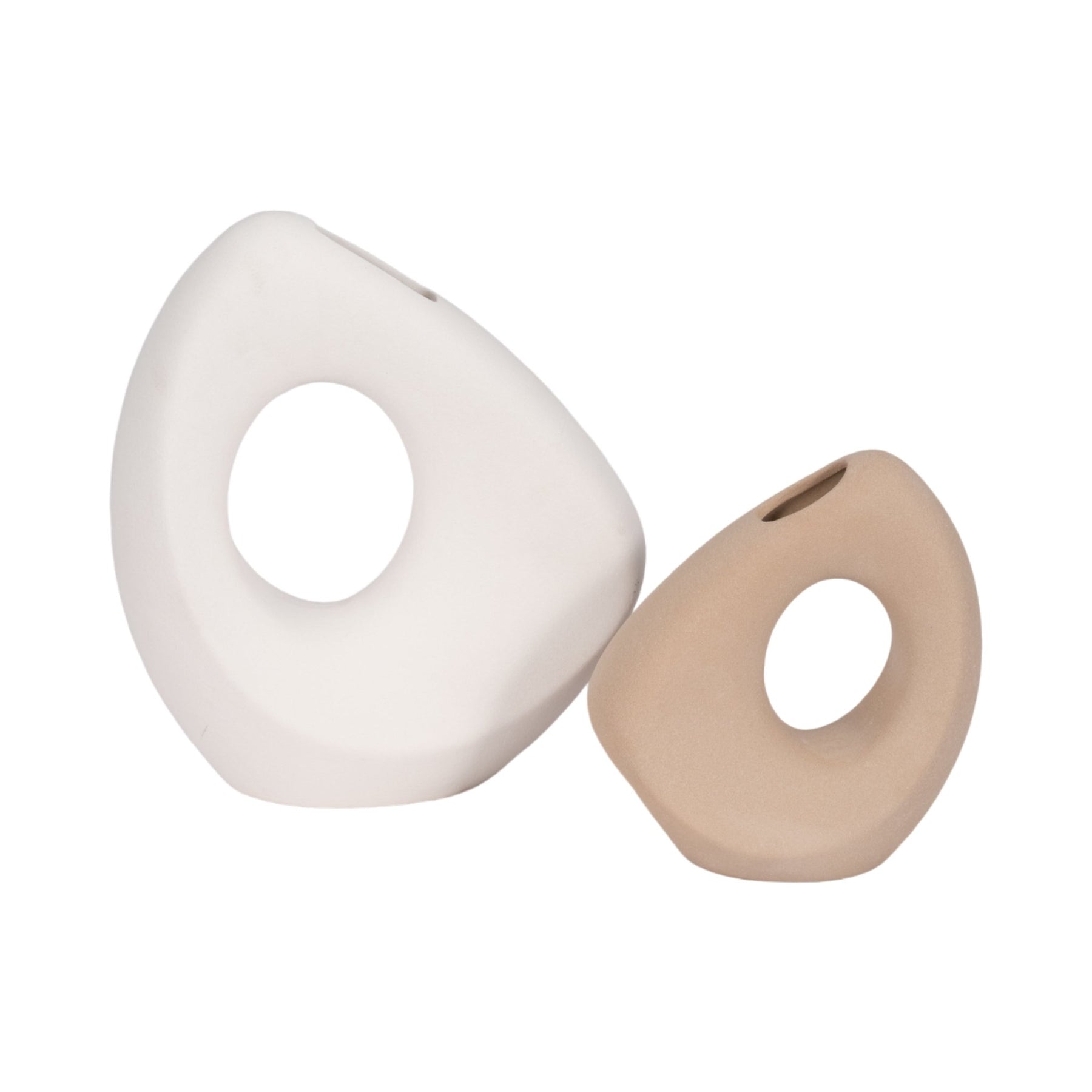 11" Lopsided Open Cut Out Vase Sand Texture, White