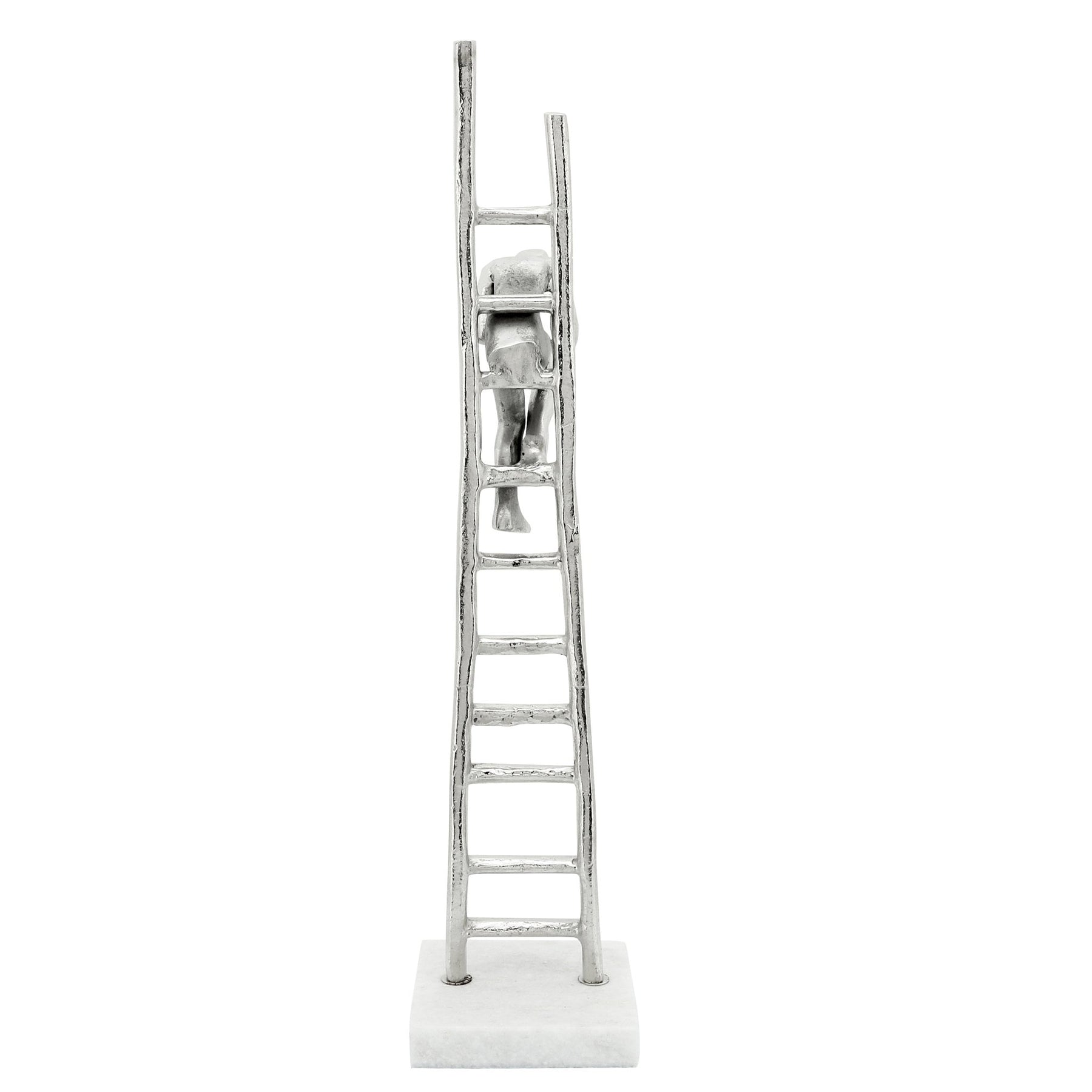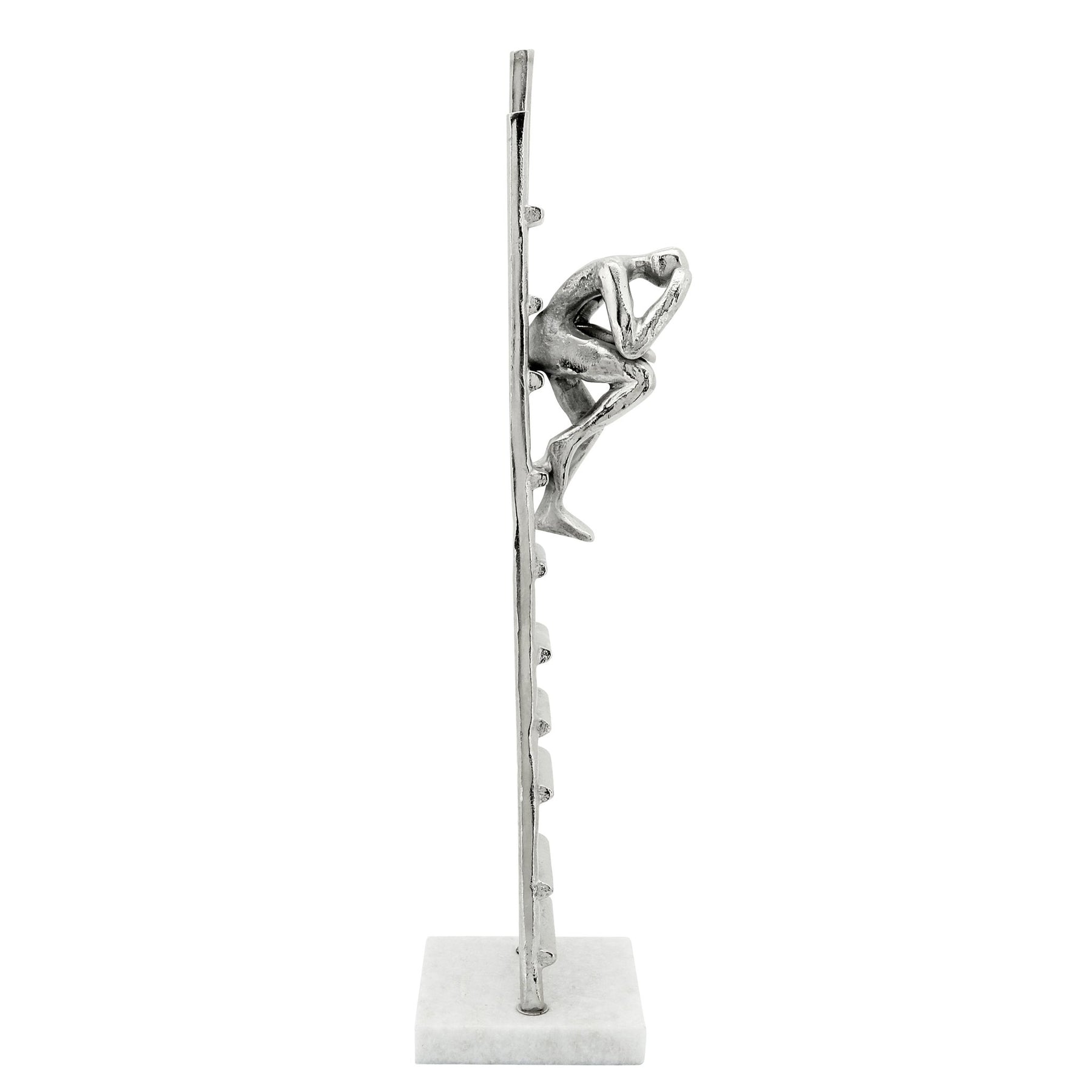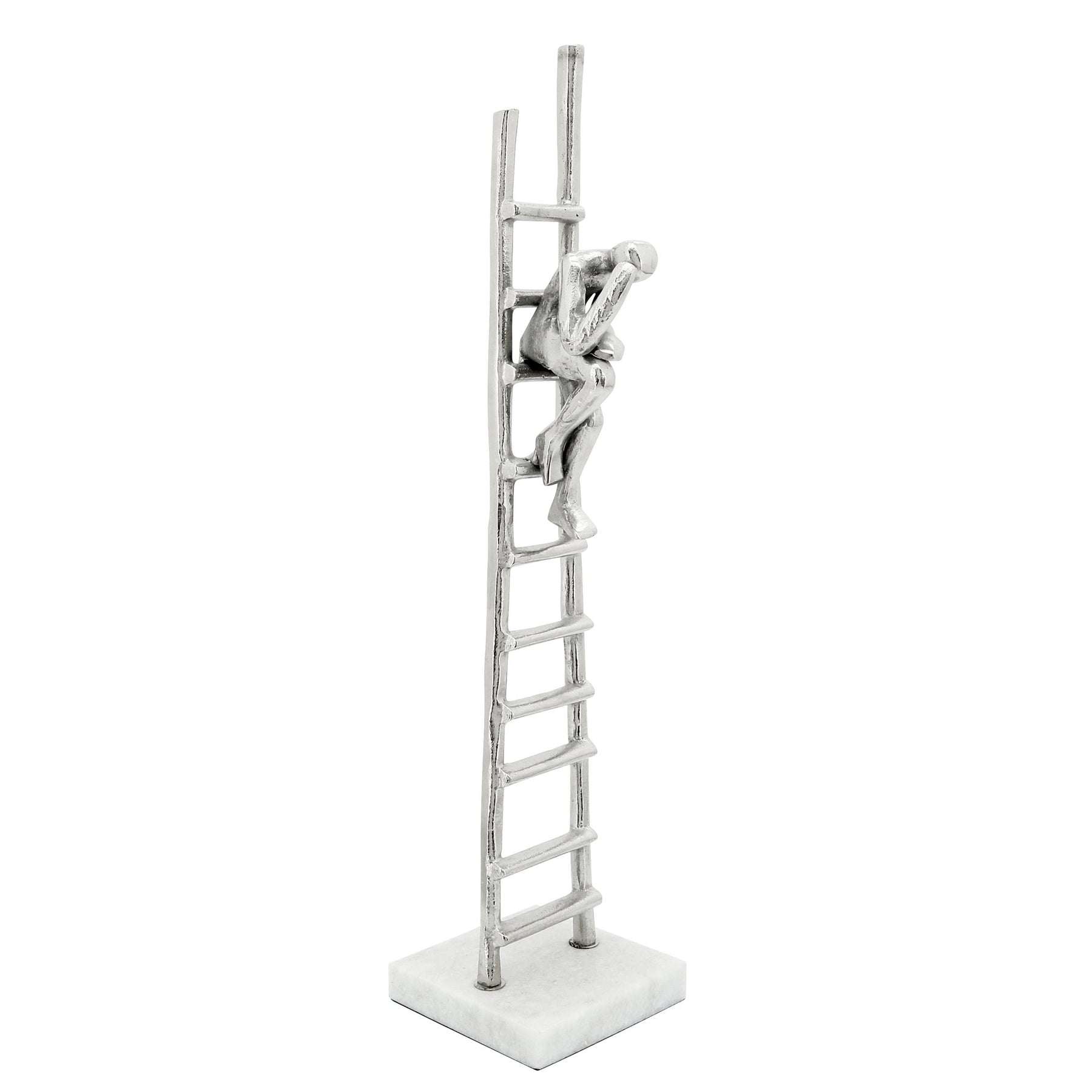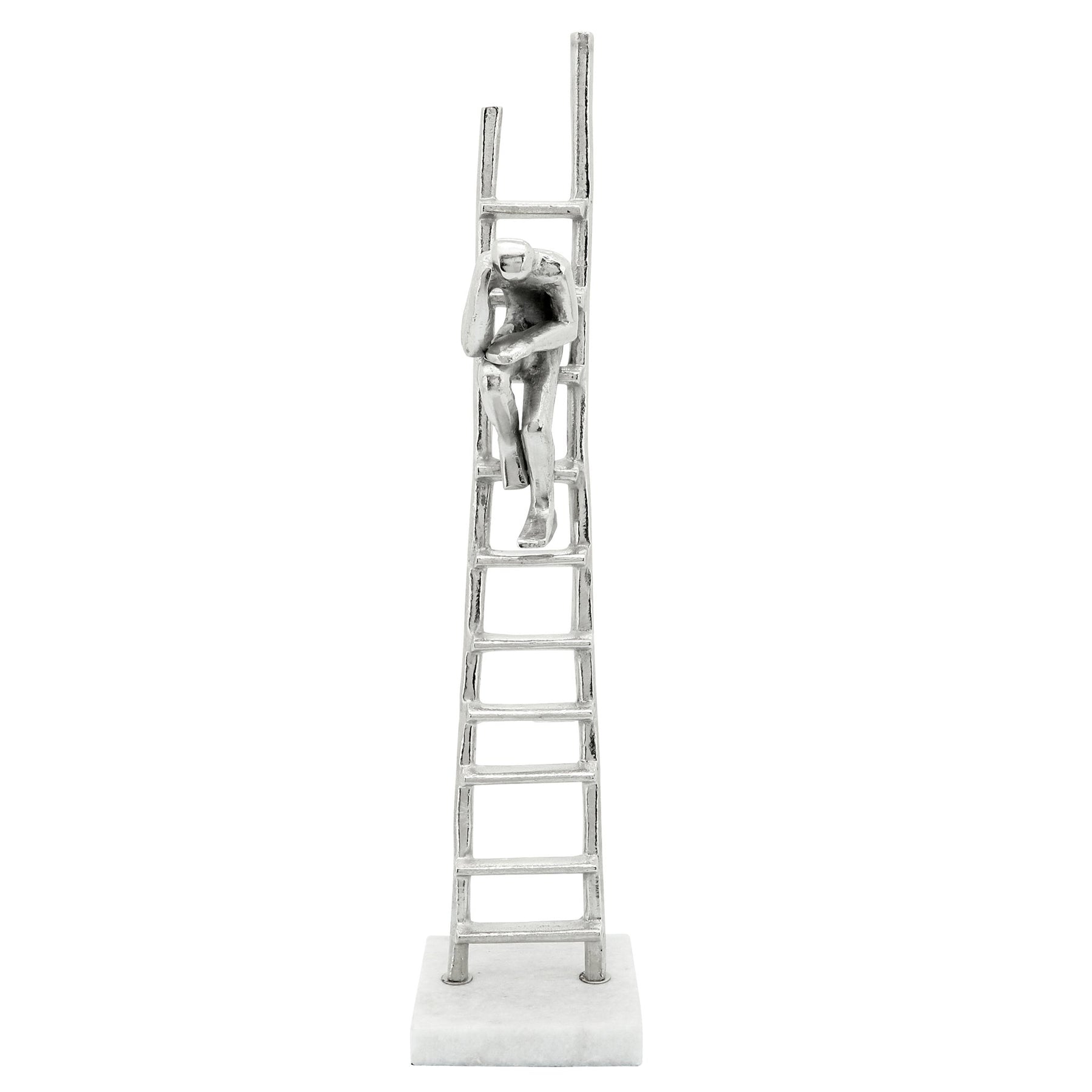 Metal Man Sitting On Ladder, Marble Base, Silver