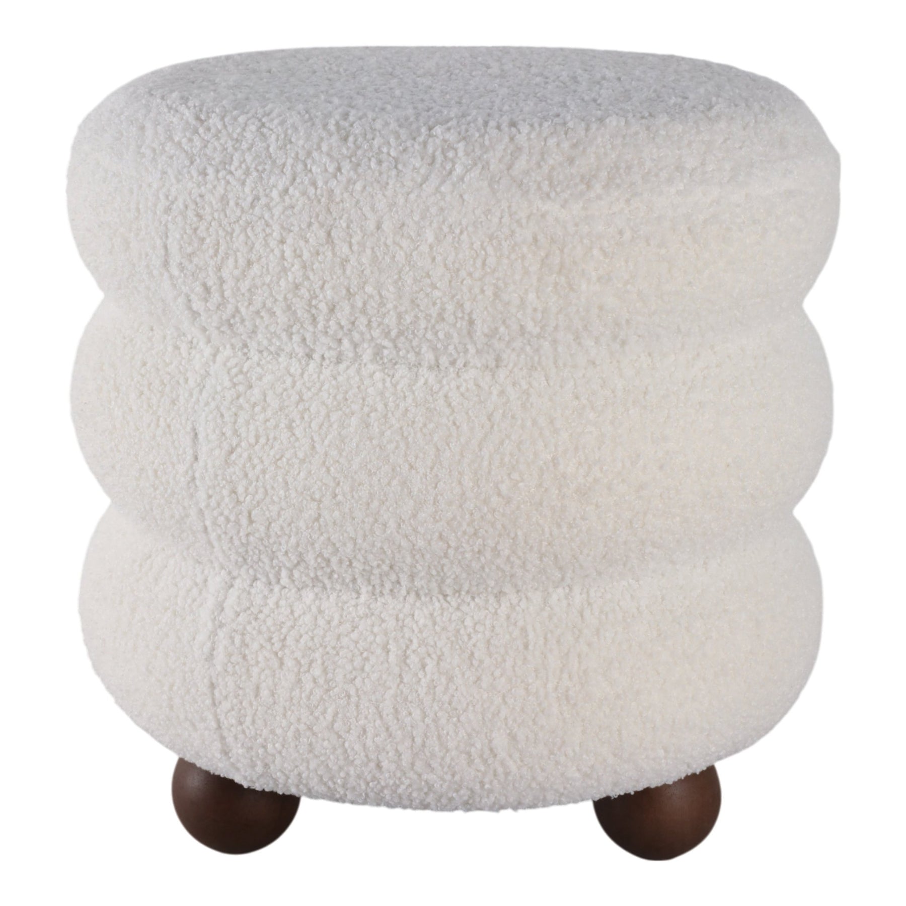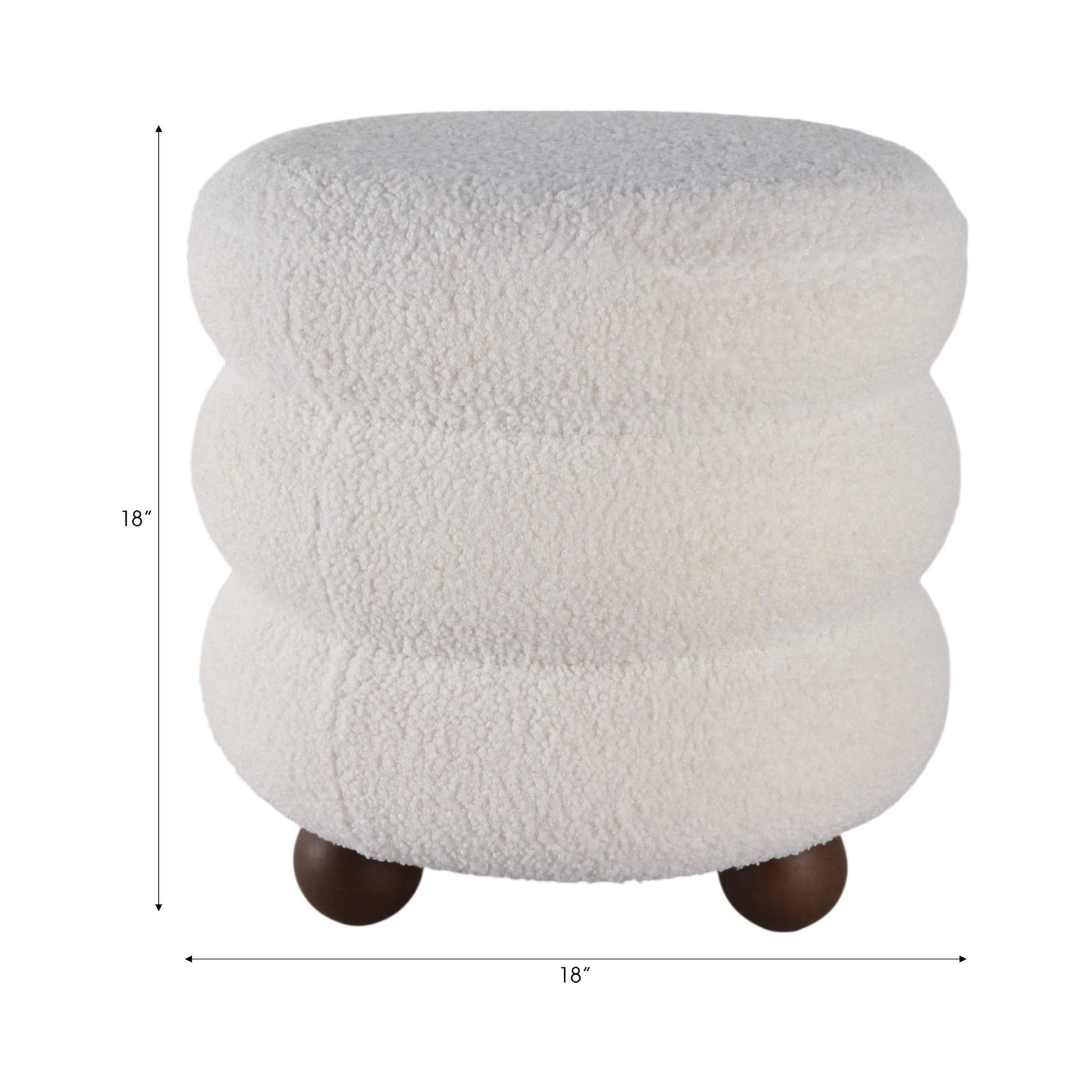 18x18" Ribbed Teddy Ottoman W/ Ball Feet, Ivory
