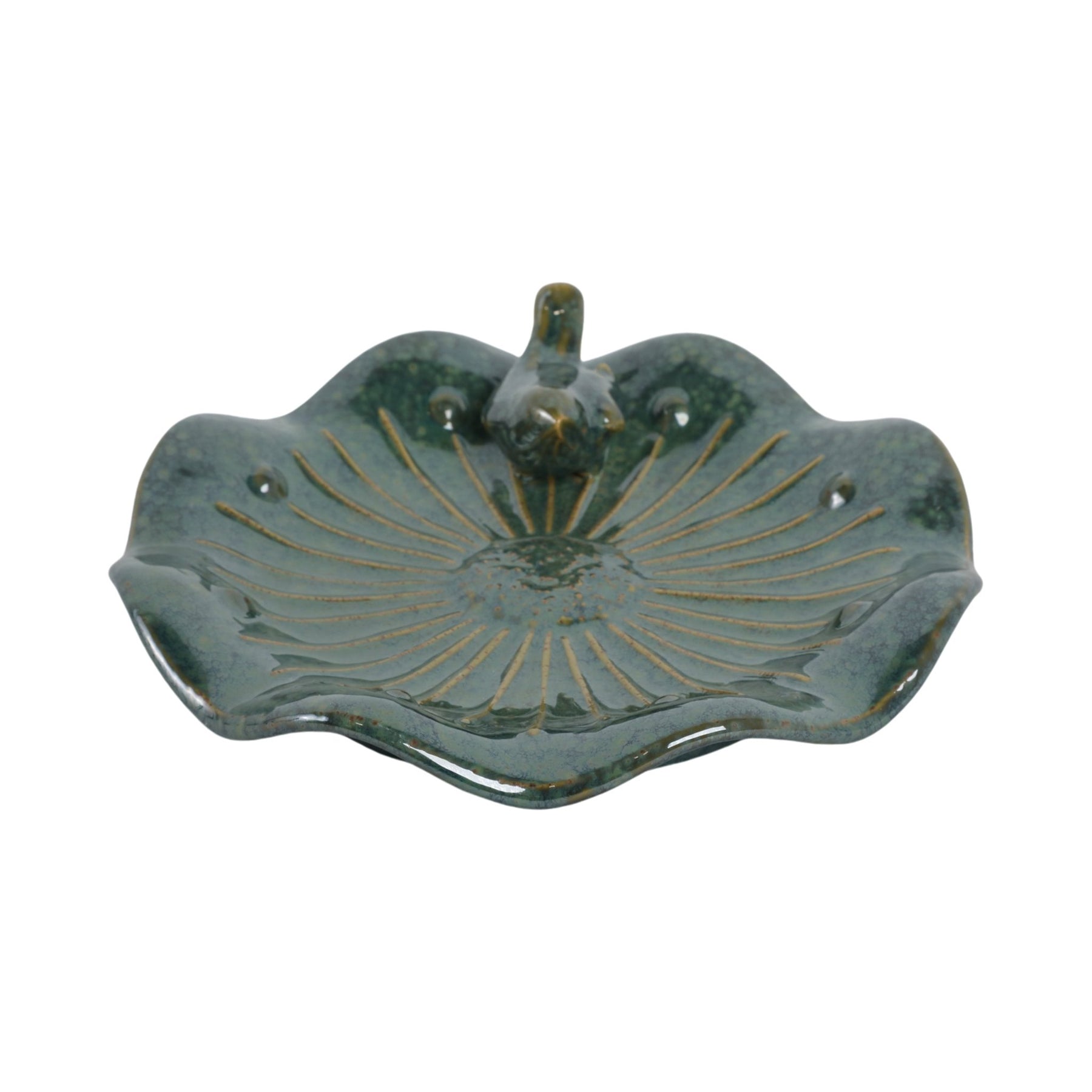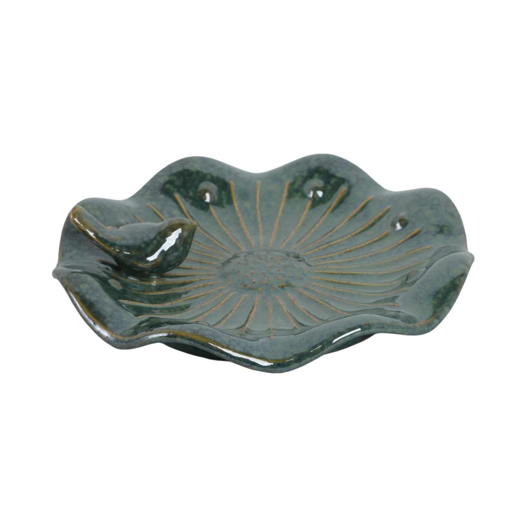 10x2" Flower Birdbath With Perched Bird, Green - Al Rugaib Furniture
