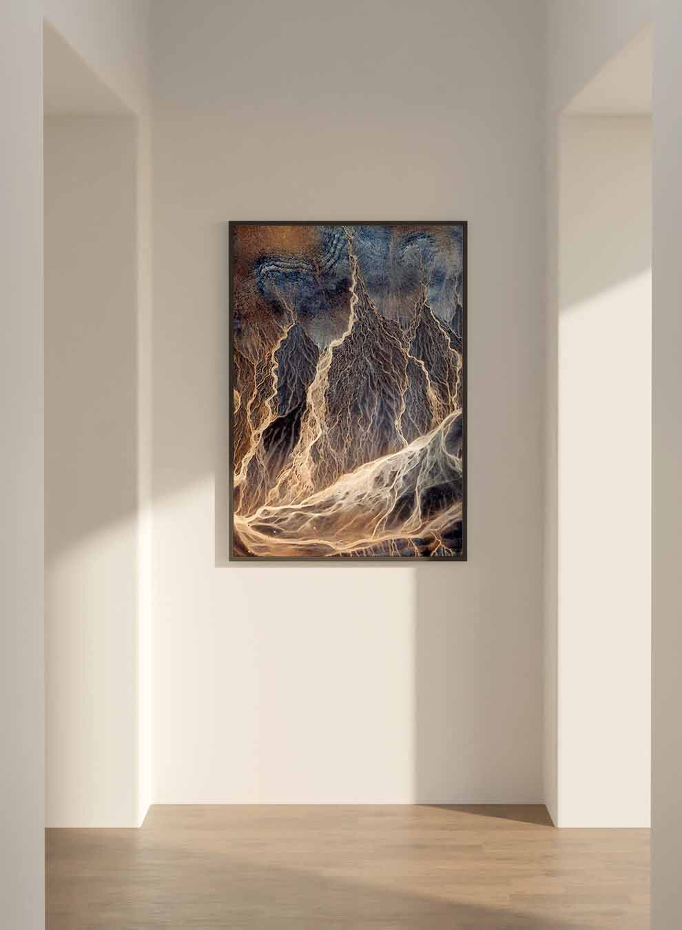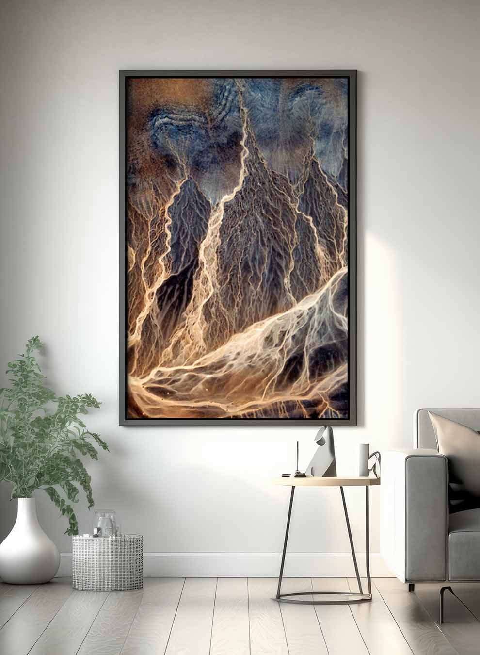 Canvas Wall Art Stretched Over Wooden Frame with Black Floating Frame