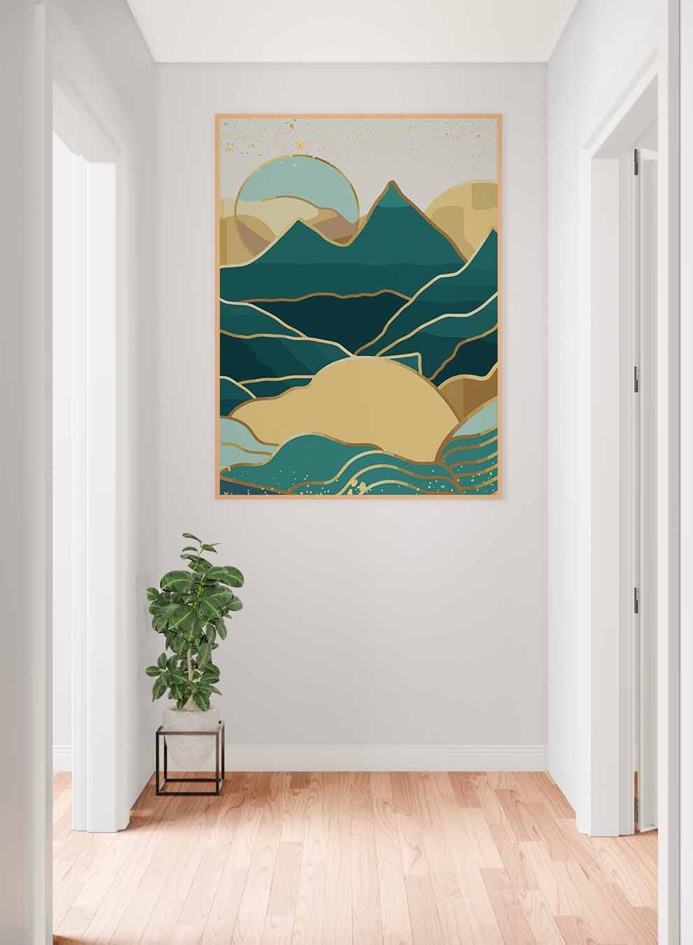 Canvas Wall Art Stretched Over Wooden Frame with Gold Floating Frame