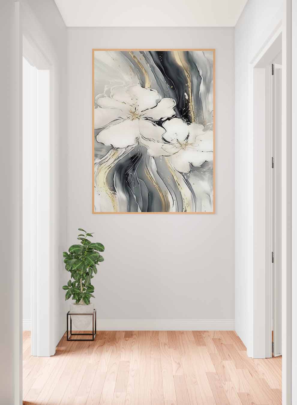 Canvas Wall Art Stretched Over Wooden Frame with Gold Floating Frame
