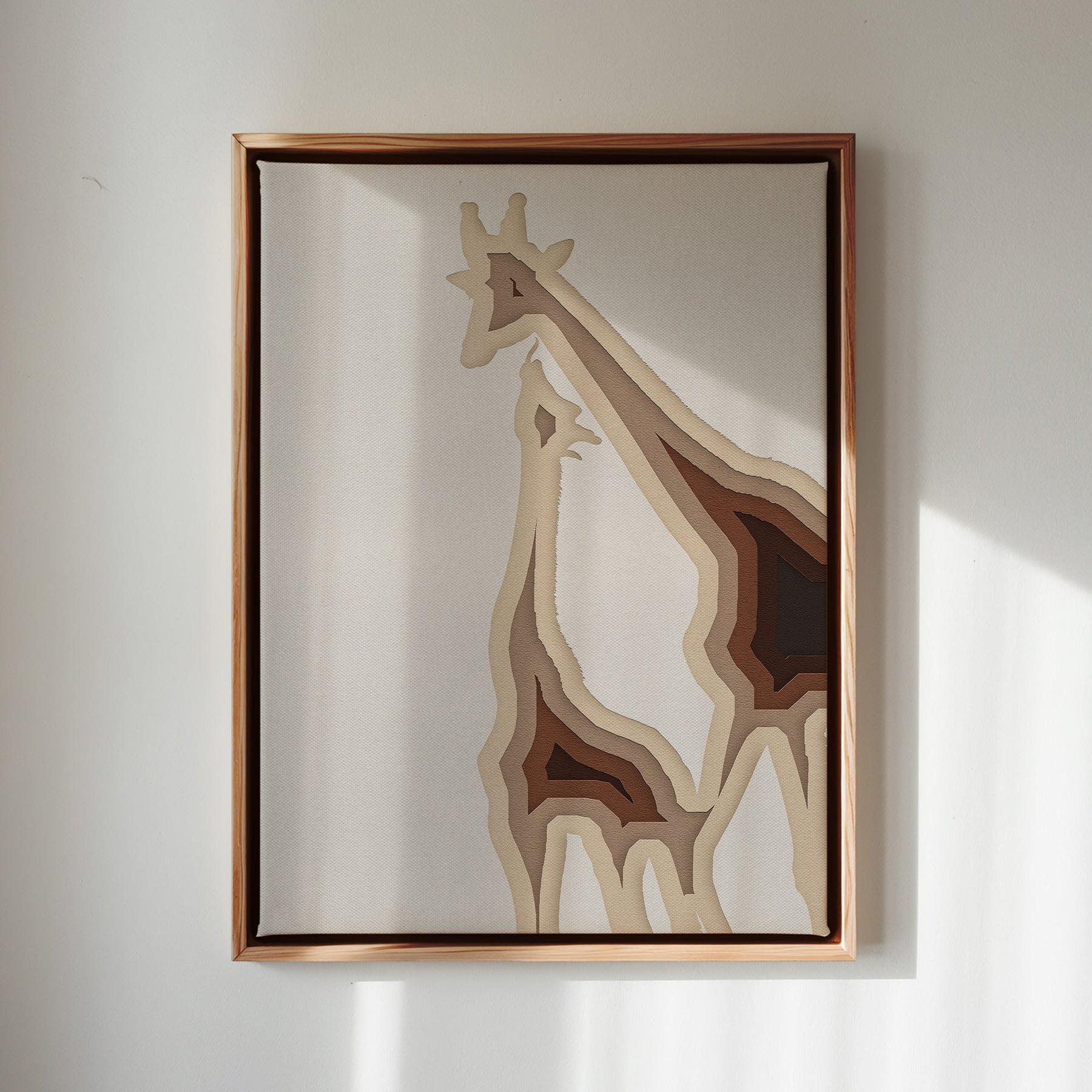 Canvas Wall Art Stretched Over Wooden Frame with Floating Frame and Couple OF Giraffes Painting CV4144