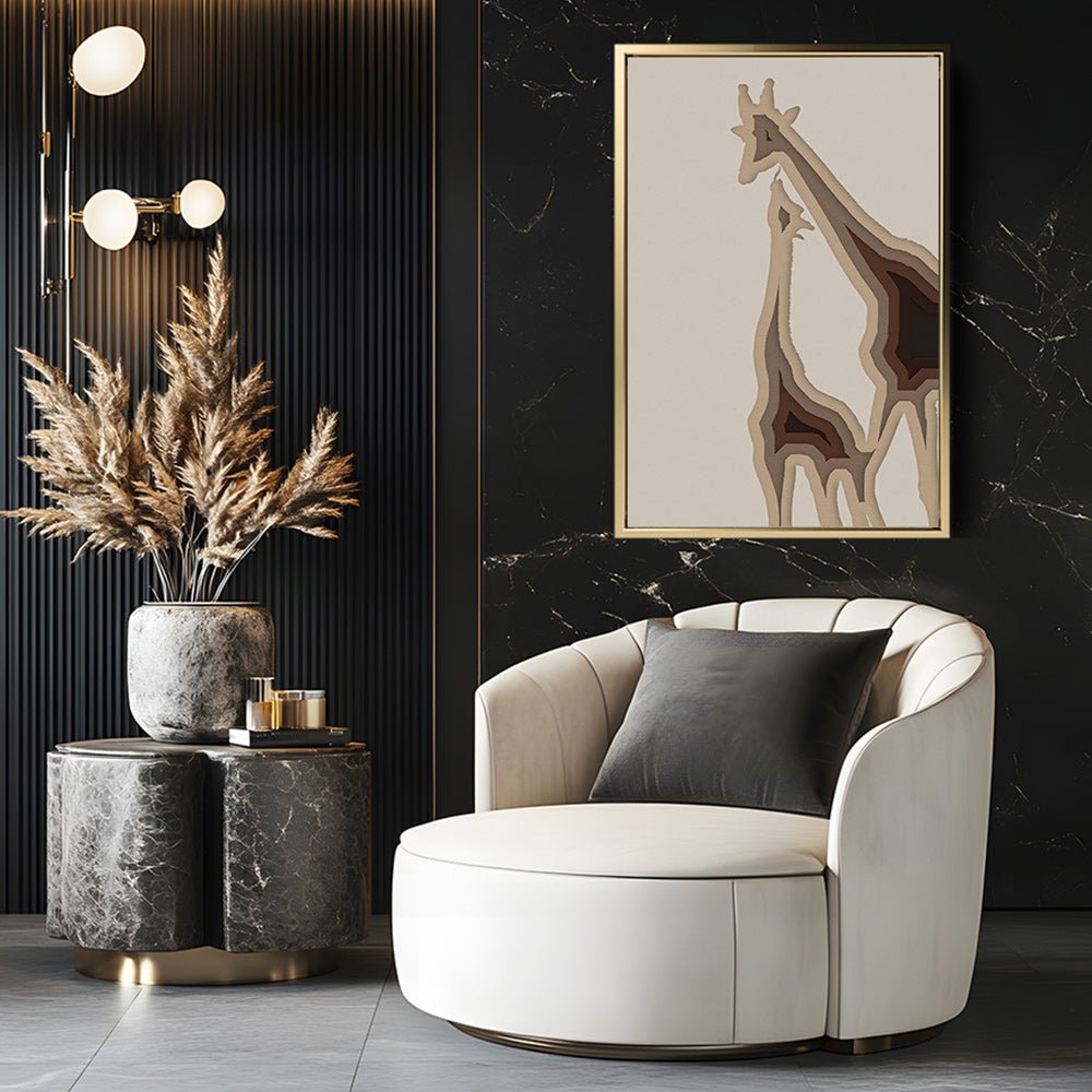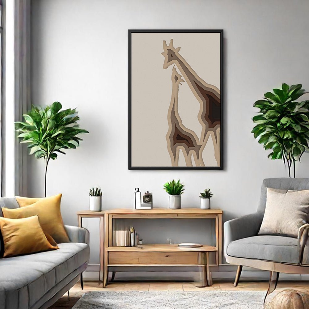 Canvas Wall Art Stretched Over Wooden Frame with Floating Frame and Couple OF Giraffes Painting CV4144 - Al Rugaib Furniture