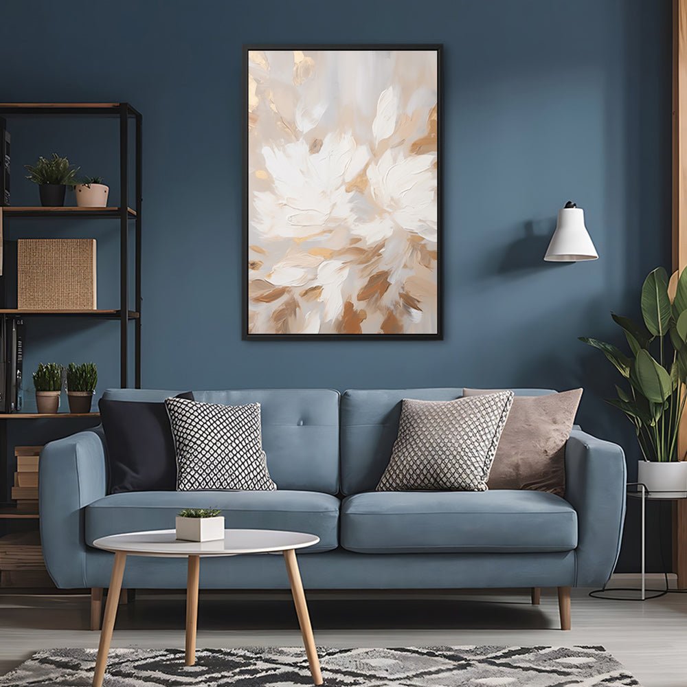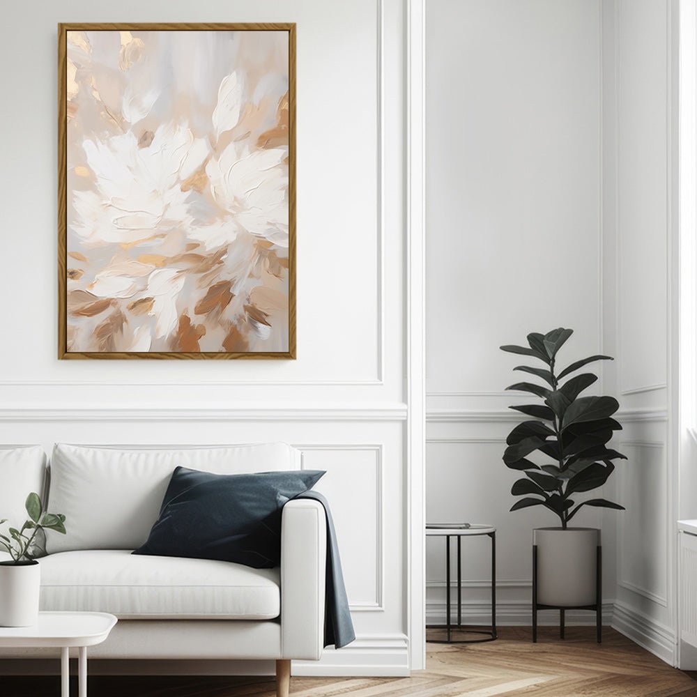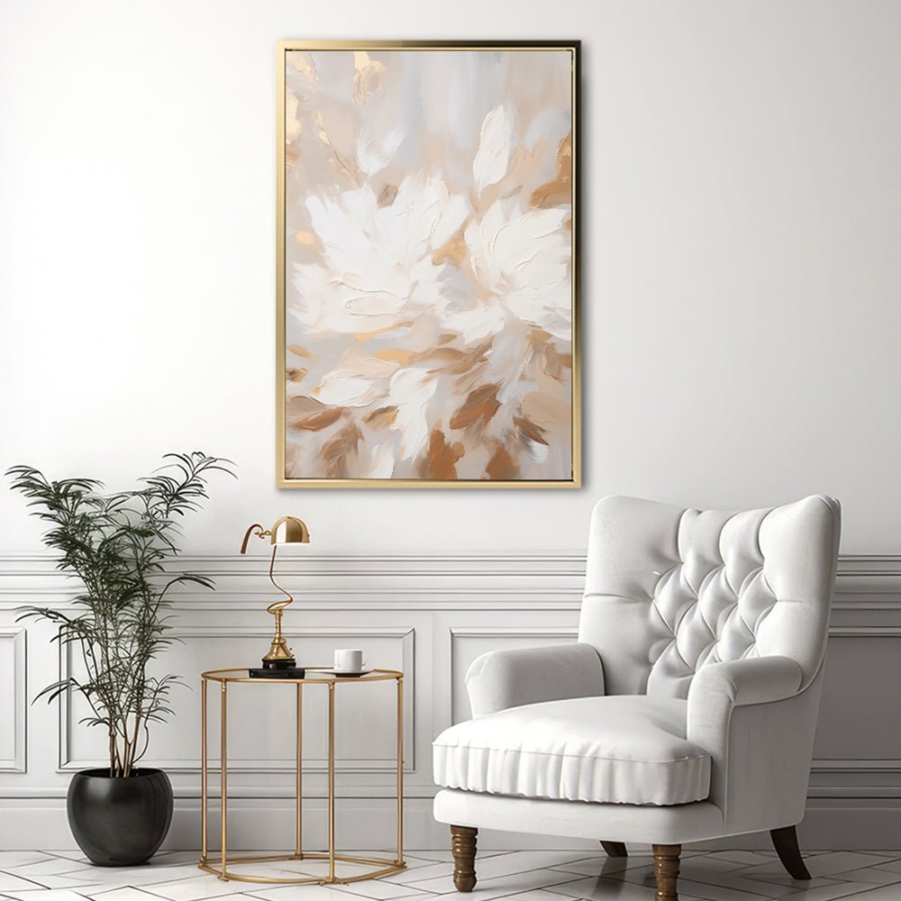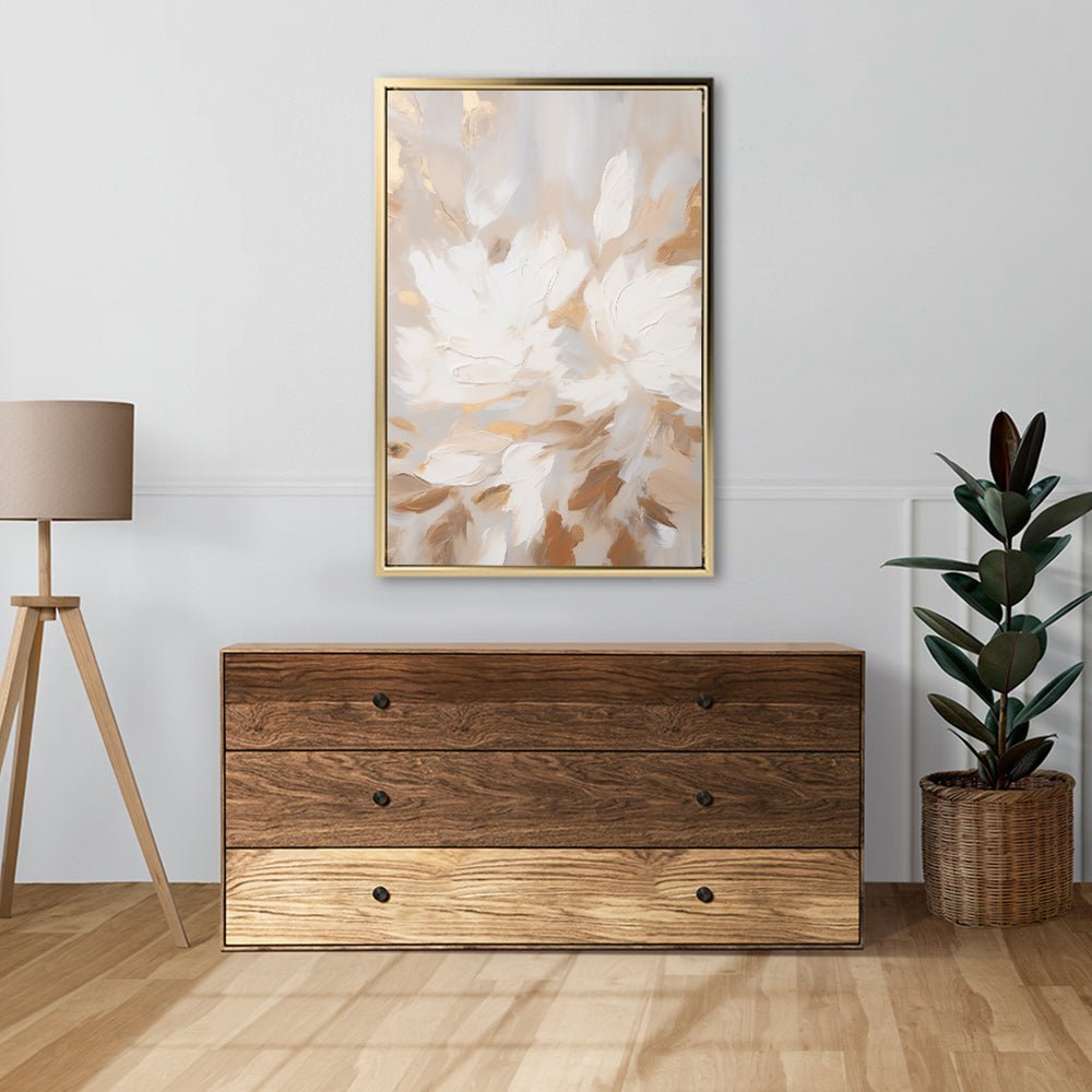 Canvas Wall Art Stretched Over Wooden Frame with Floating Frame and Floral Pattern Painting CV4157