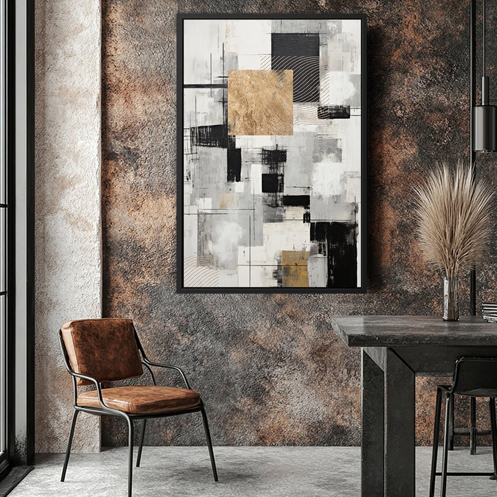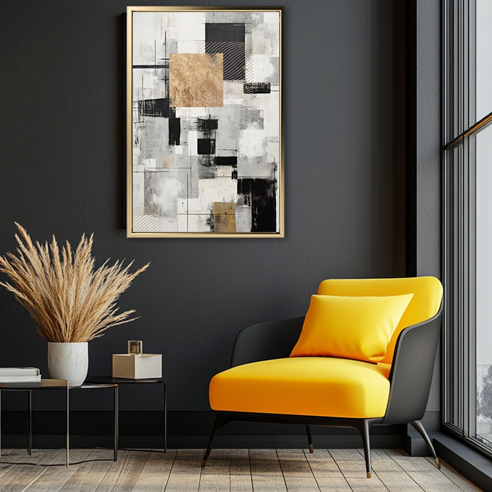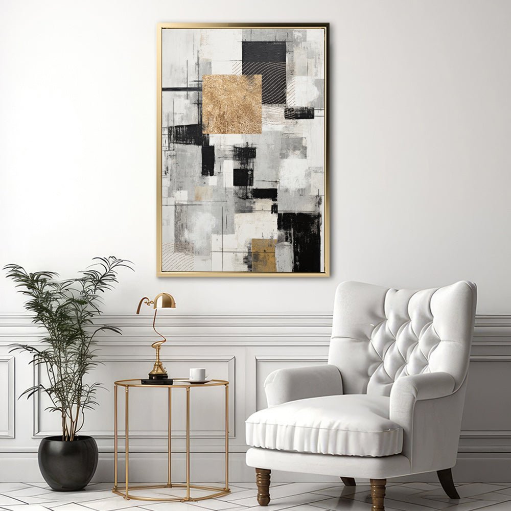 Canvas Wall Art Stretched Over Wooden Frame with Floating Frame and Gold Smoke Painting CV4170Paintings & Pictures
