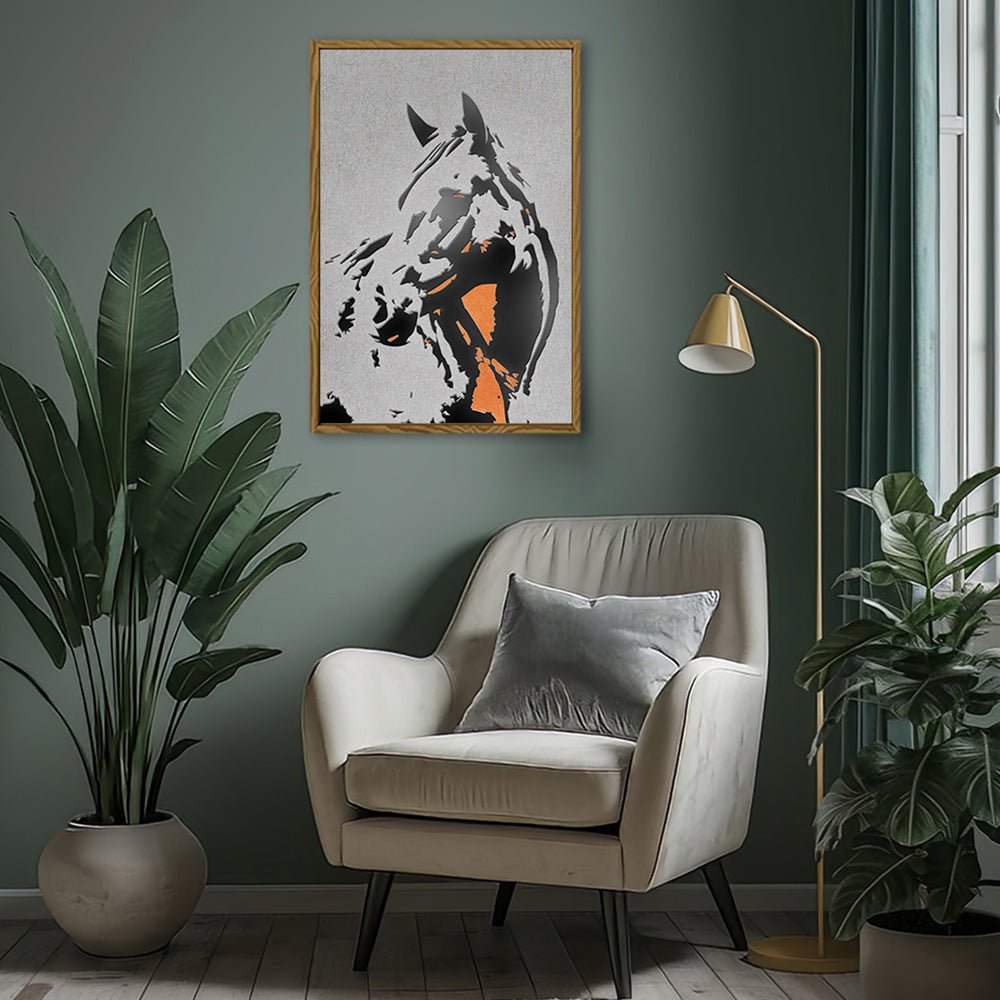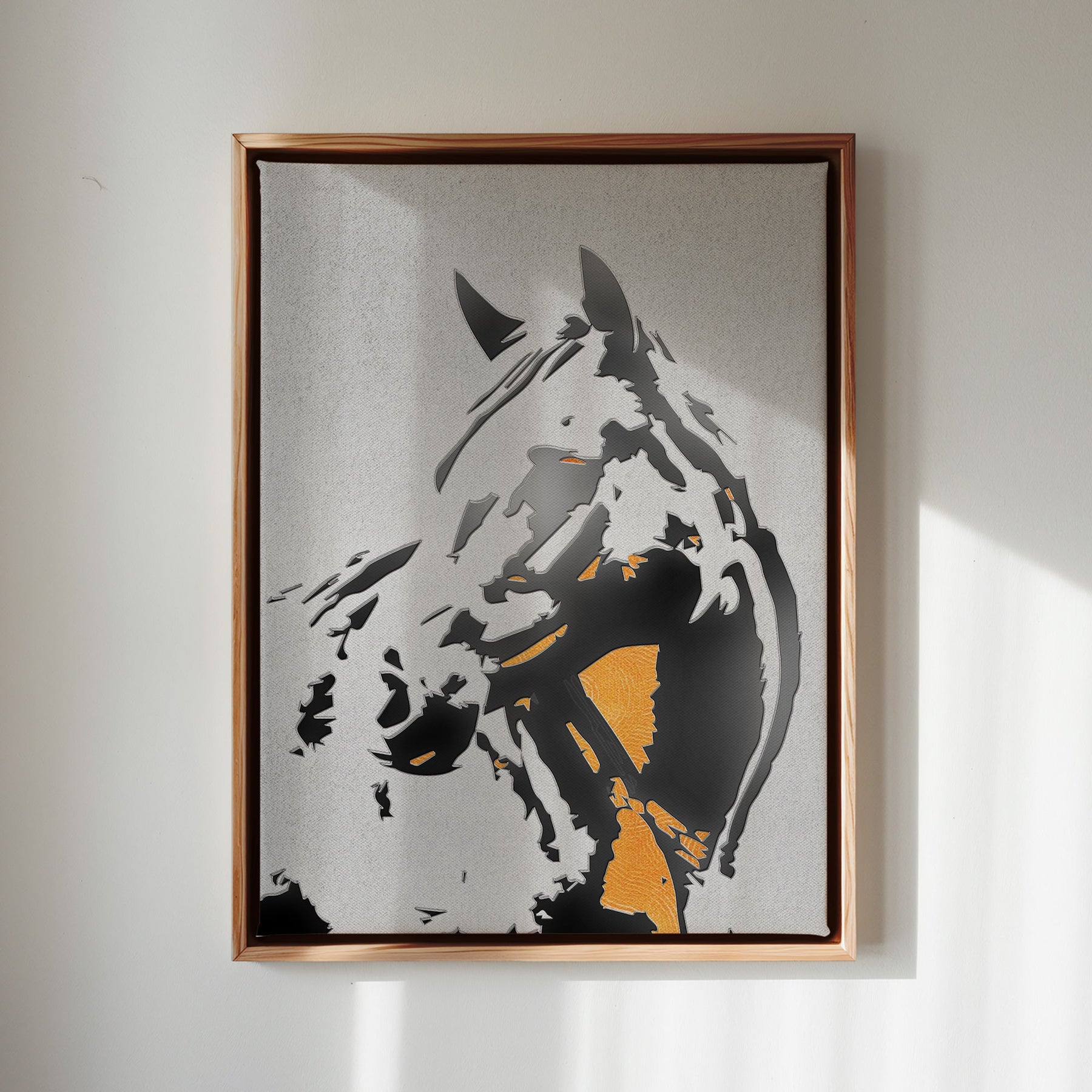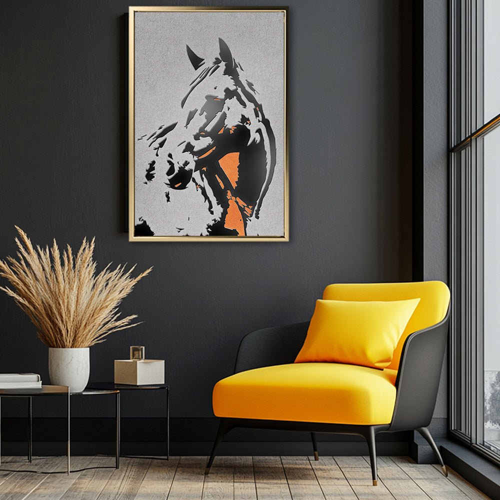 Canvas Wall Art Stretched Over Wooden Frame with Floating Frame and Horse Abstract Painting CV4185