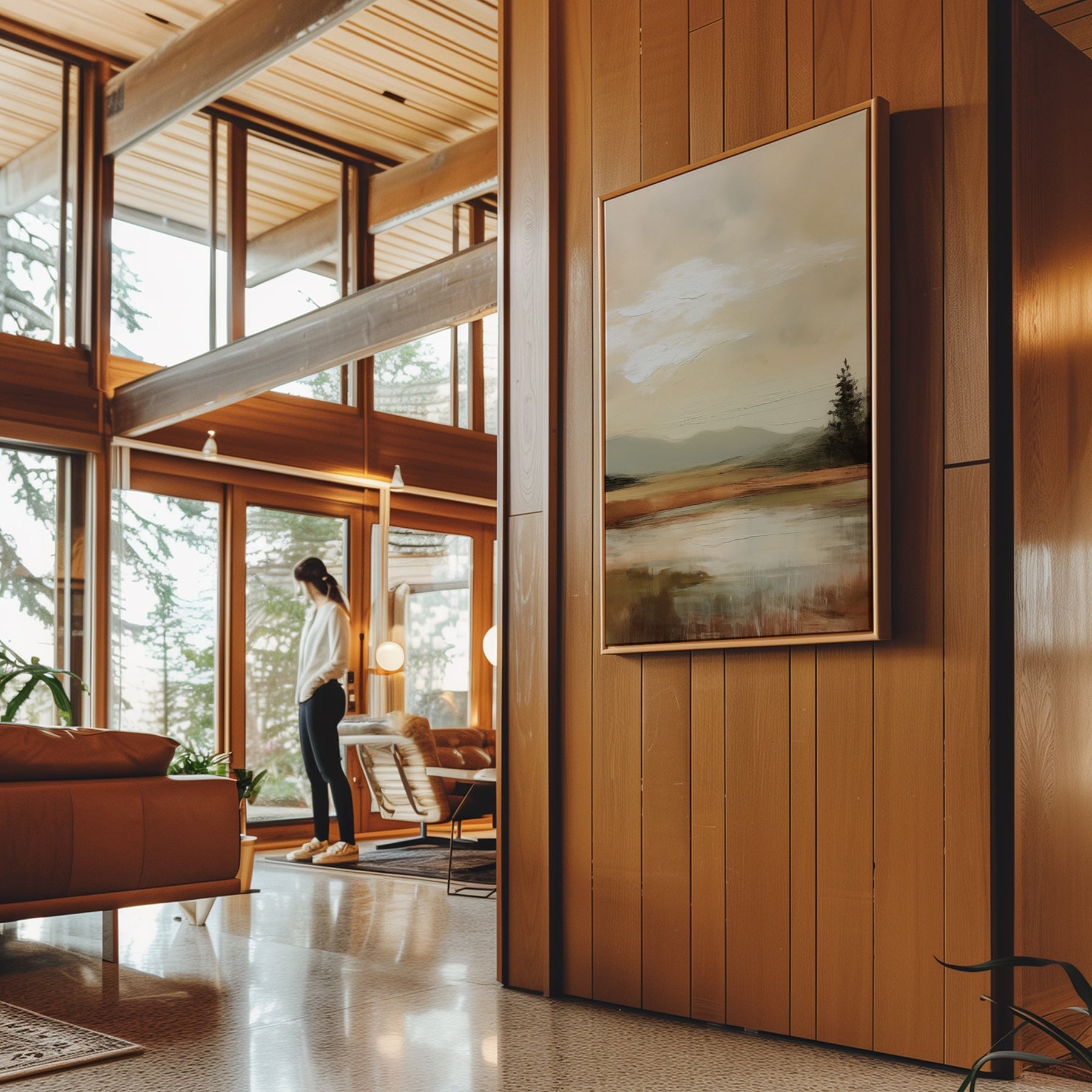 Canvas Wall Art Stretched Over Wooden Frame with Floating Frame and Sun On Lake Oil Painting Painting CV4246Paintings & Pictures