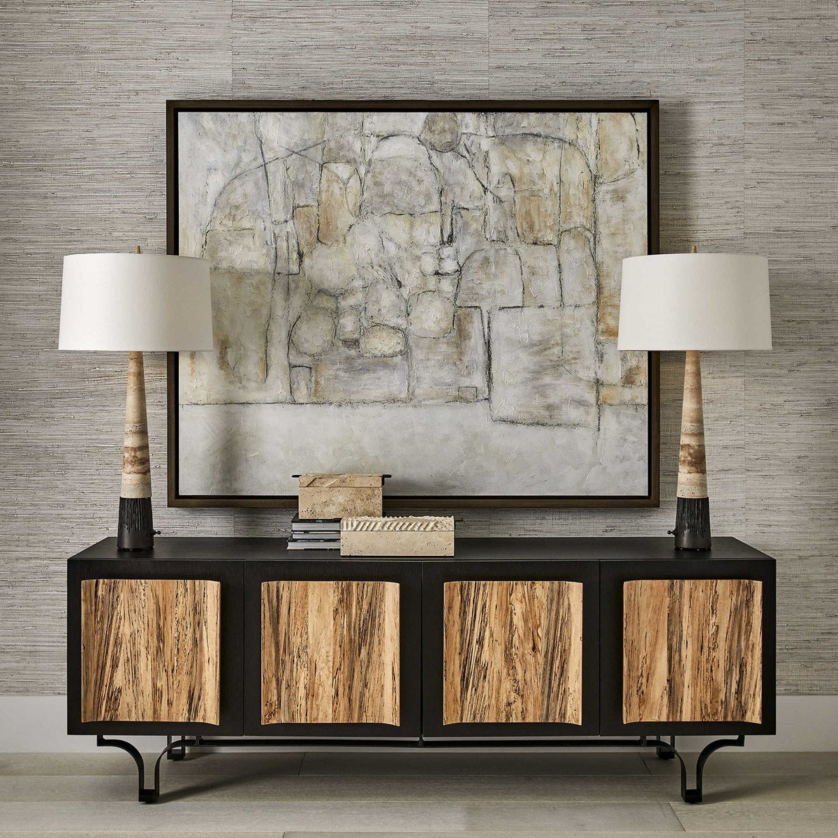 James Kerr, a Contemporary Abstract Artist living near Stratford upon Avon, England, first began as a decorative painter for London's leading interior designers. He honed his craft and use of color, paint and materials, and has since built an enviable reputation for gutsy abstracted work. James uses abstract shapes, blocks of color, along with thick layers of impasto paint, to create unique, colorful and dimensional art. Abstract and textured, this tonal white work suggests a scene known truly only to the viewer — a cityscape, table-setting, an intimate memory. It’s rendered on canvas with hand embellishments, in a floating hardwood frame in a driftwood finish, and may be displayed horizontal or vertical.