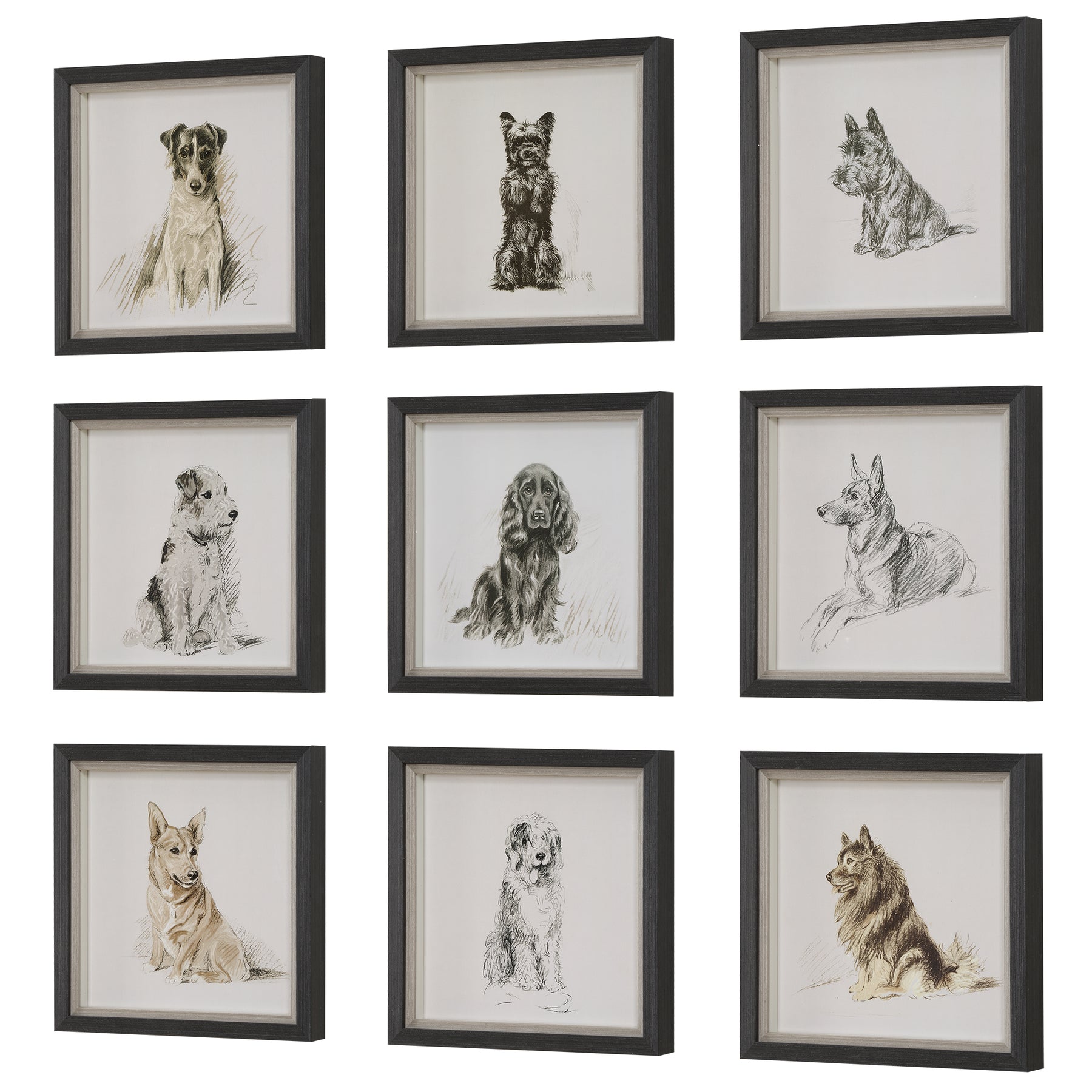 Loyal Companion Framed Dog Prints, S/9