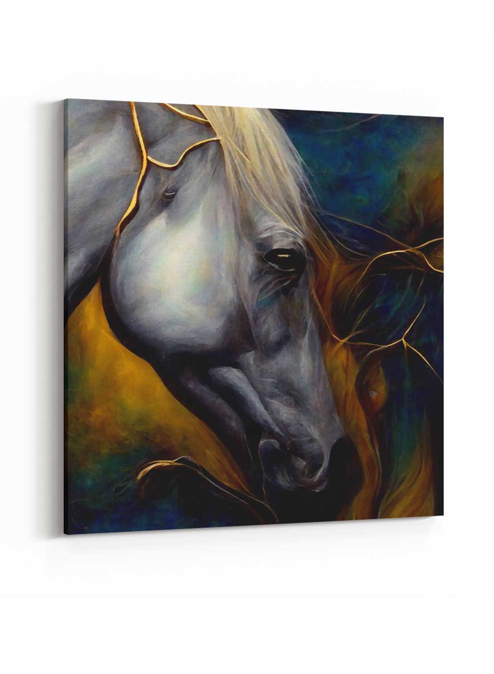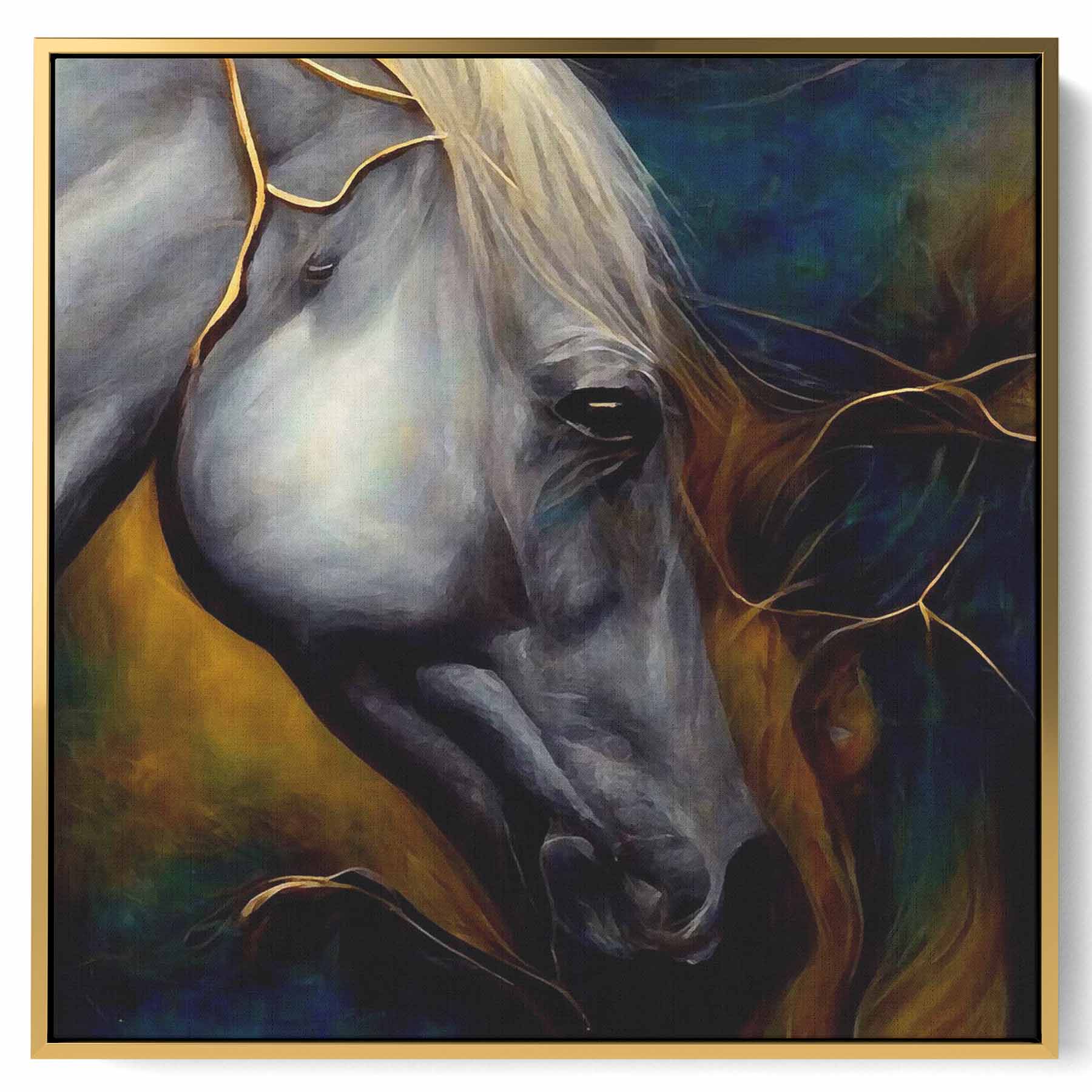 Square Canvas Wall Art Stretched Over Wooden Frame with Black Floating Frame and Abstract Art Painting
