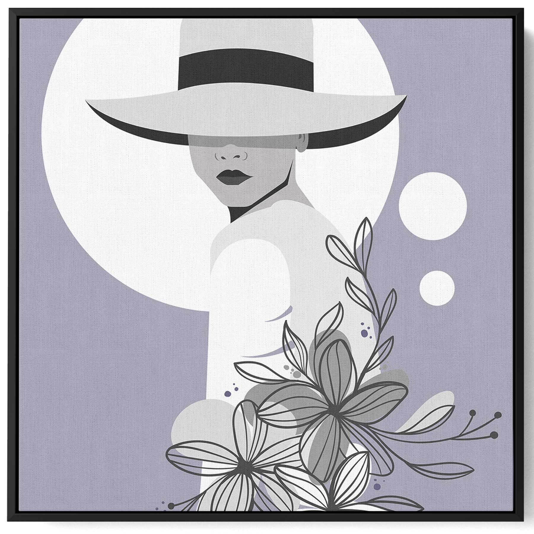 Square Canvas Wall Art Stretched Over Wooden Frame with Black Floating Frame and Elegant Lady Portrait