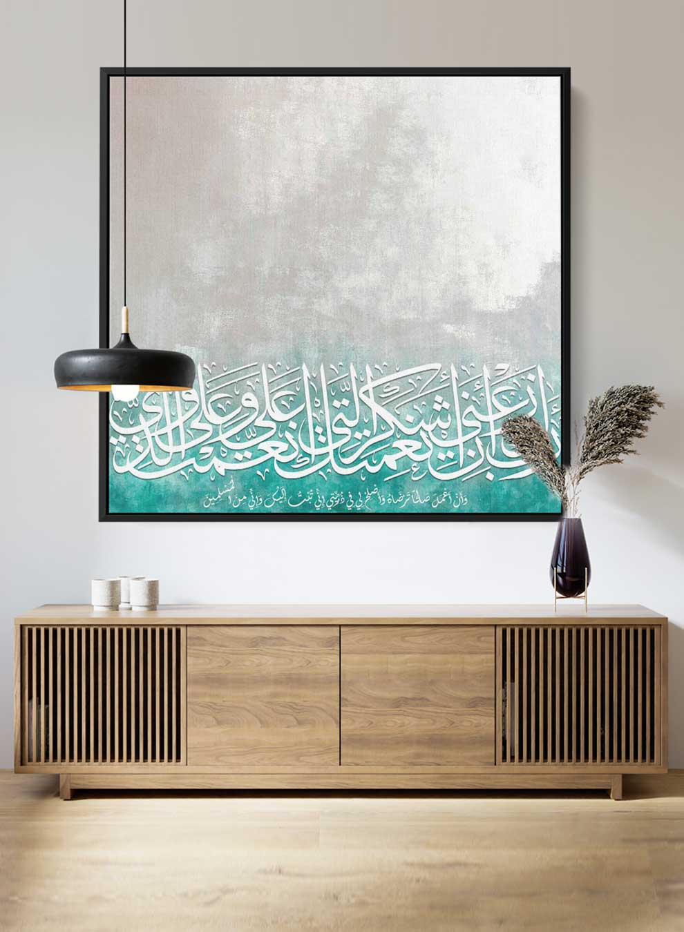 Square Canvas Wall Art Stretched Over Wooden Frame with Black Floating Frame and Islamic Quran Surah Al - Baqarah Painting - Al Rugaib Furniture