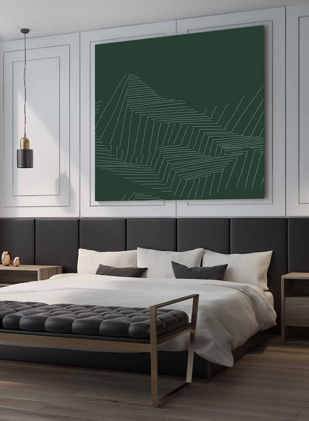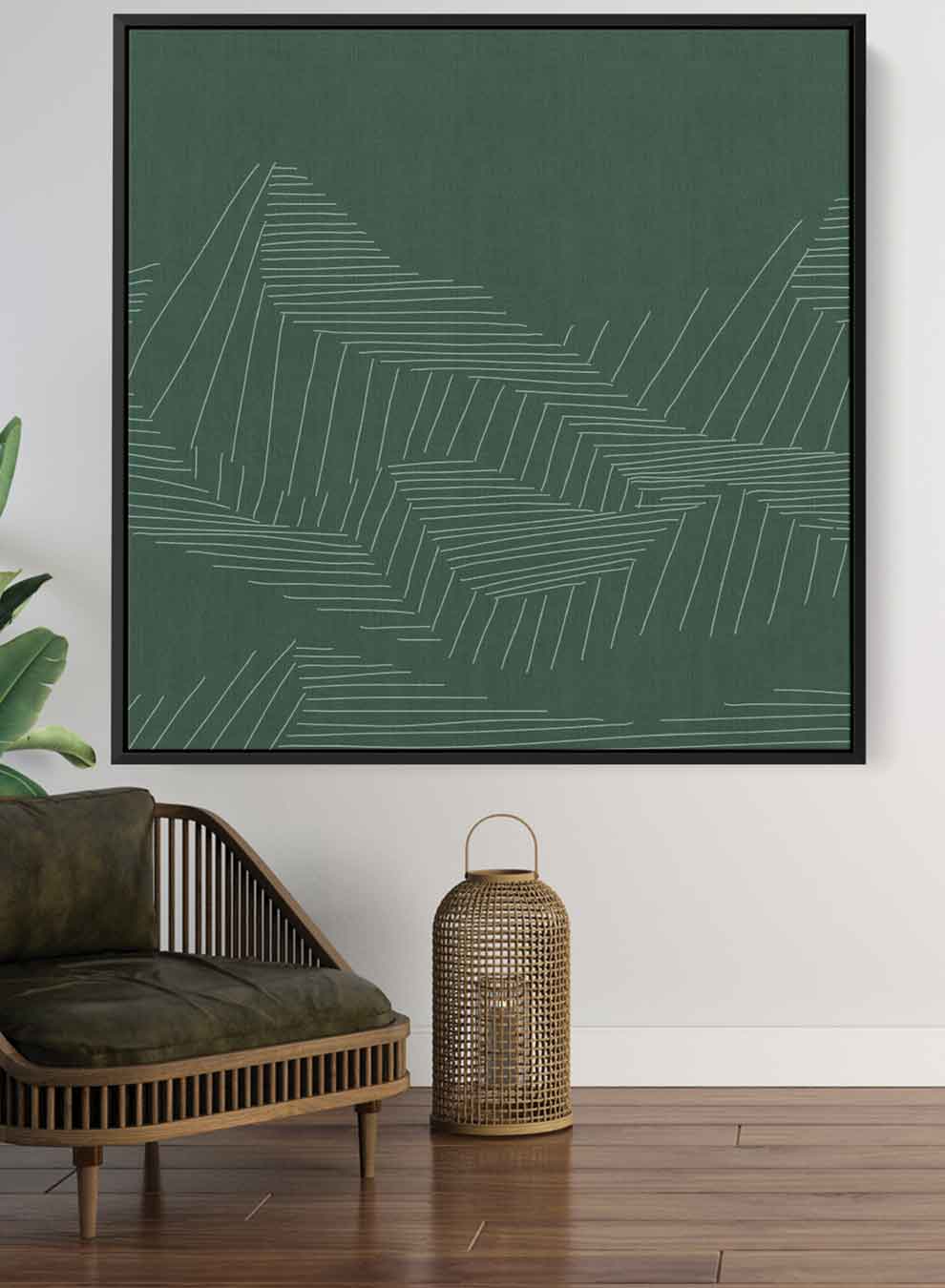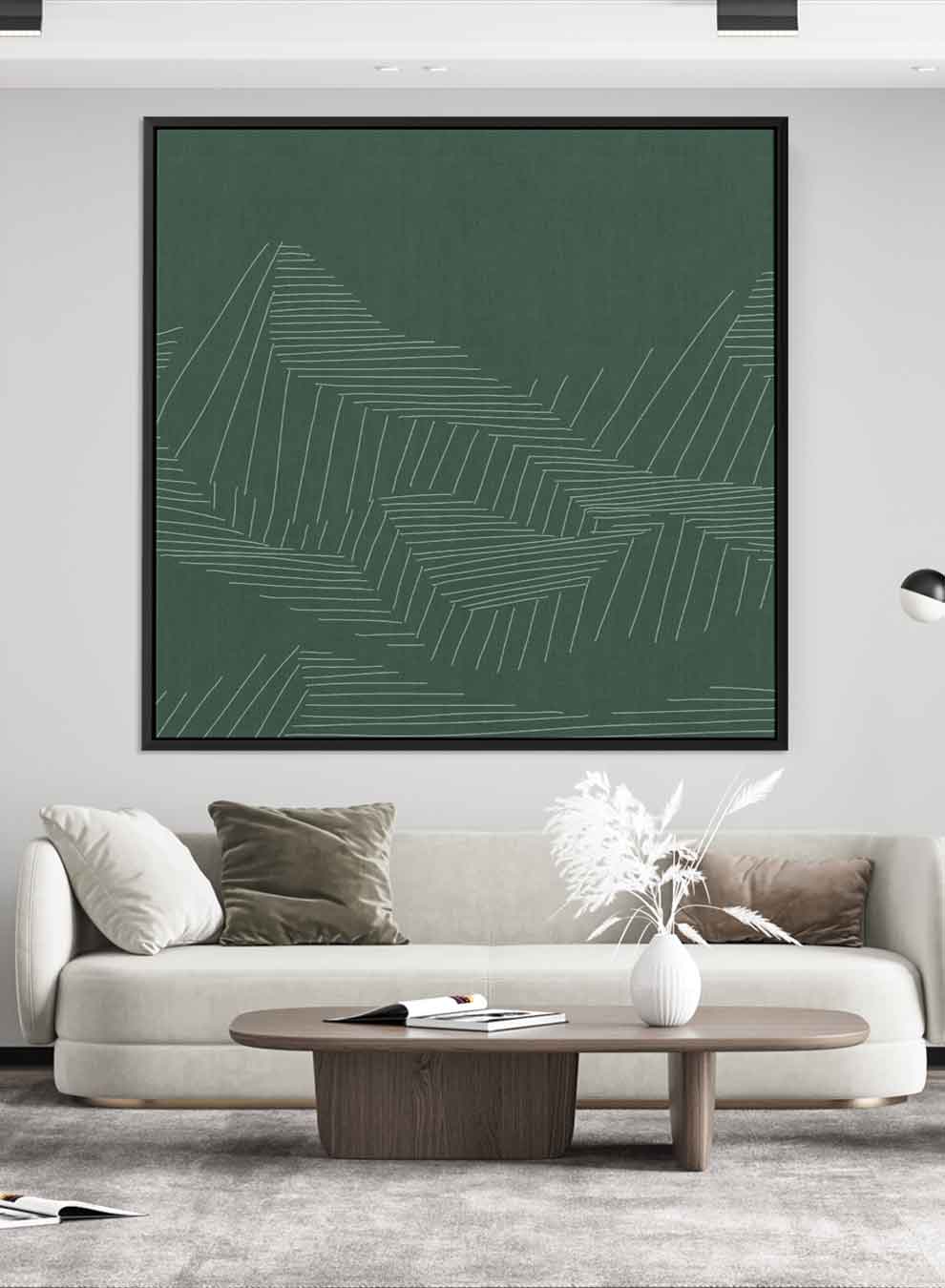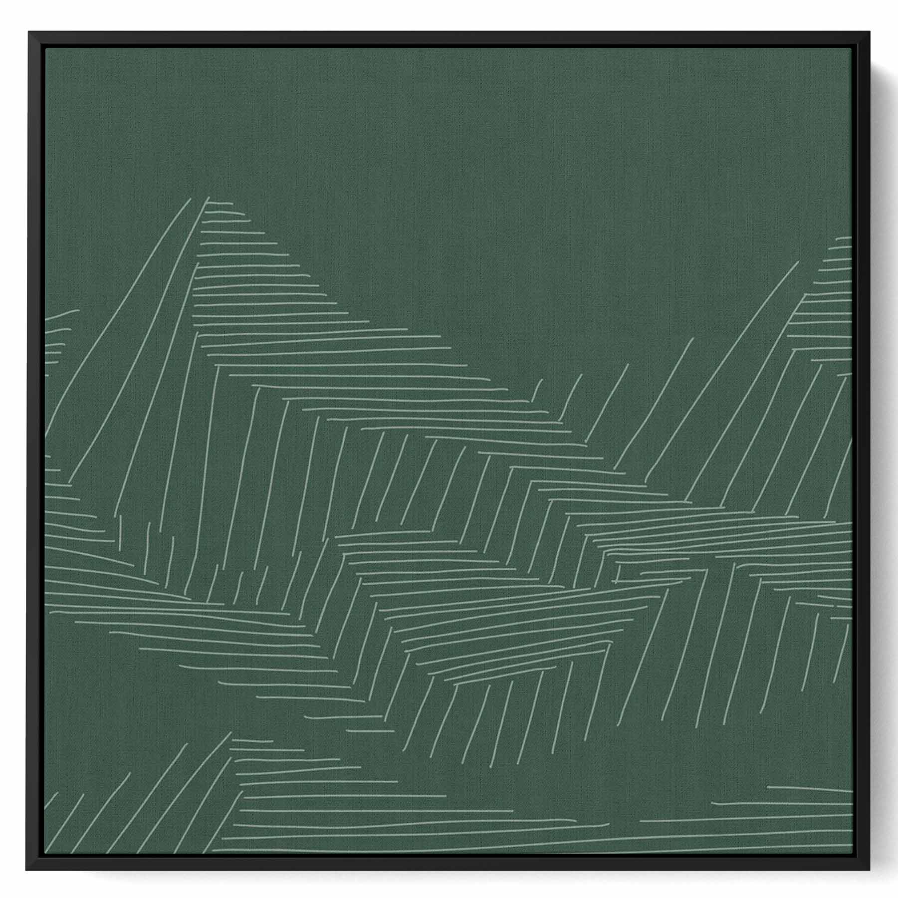 Square Canvas Wall Art Stretched Over Wooden Frame with Black Floating Frame and Mountains Abstract Painting
