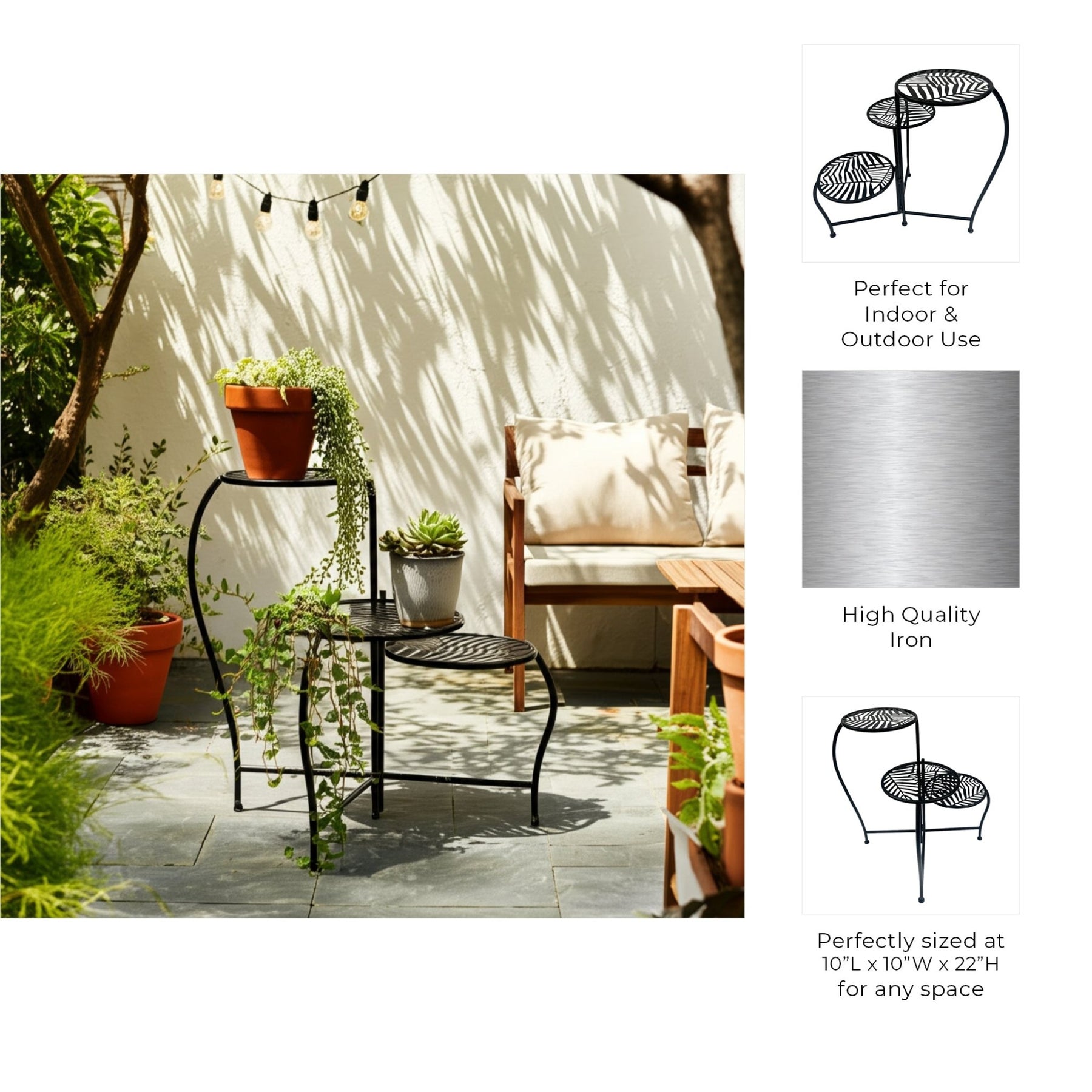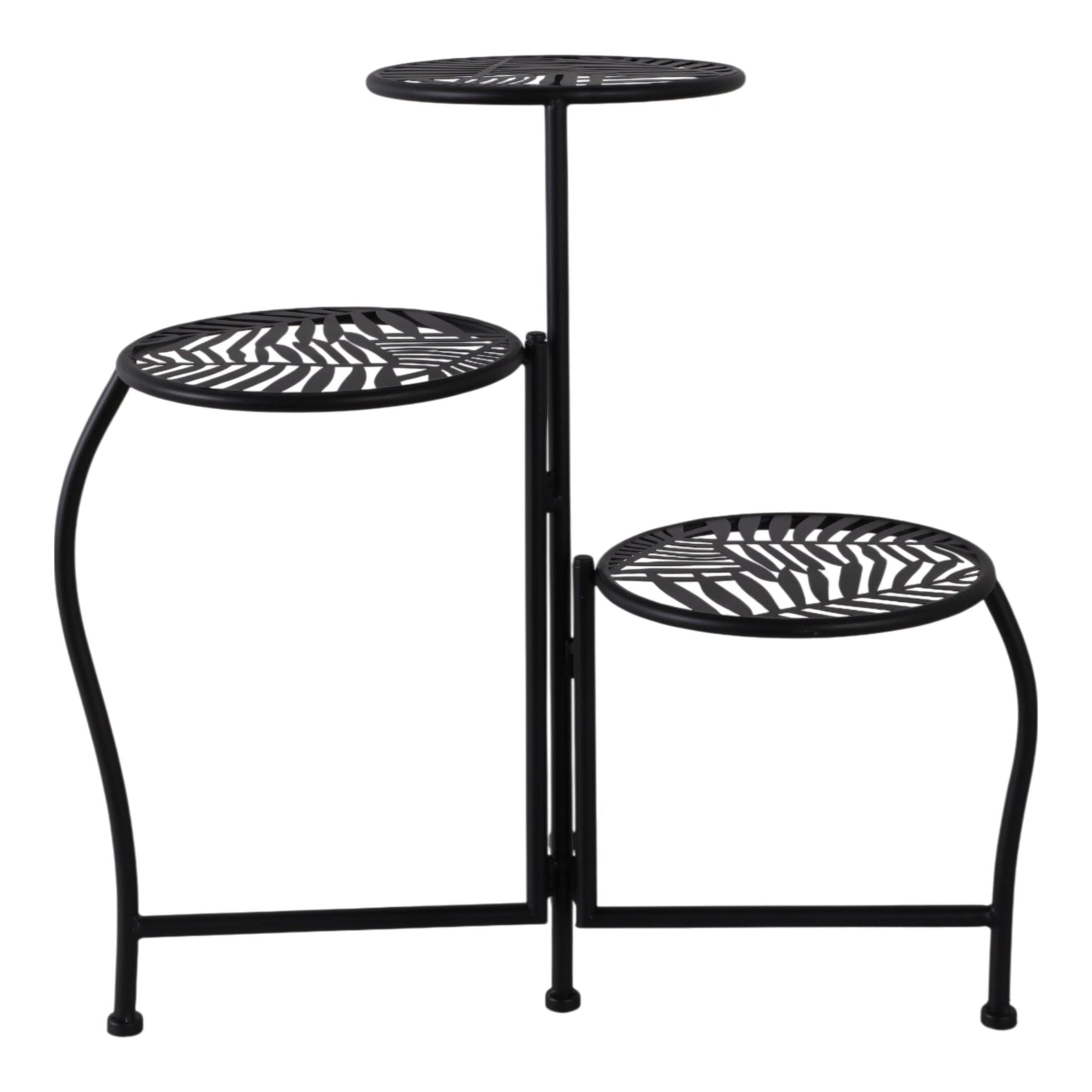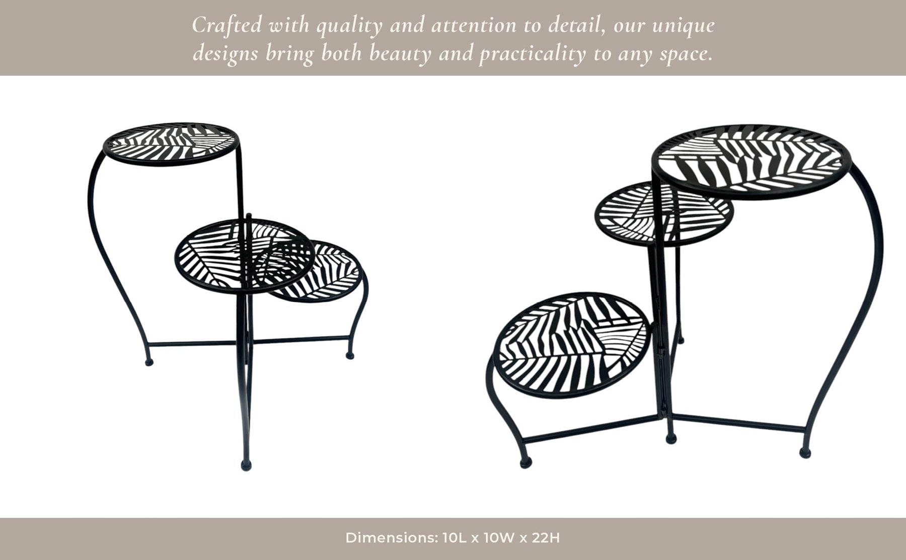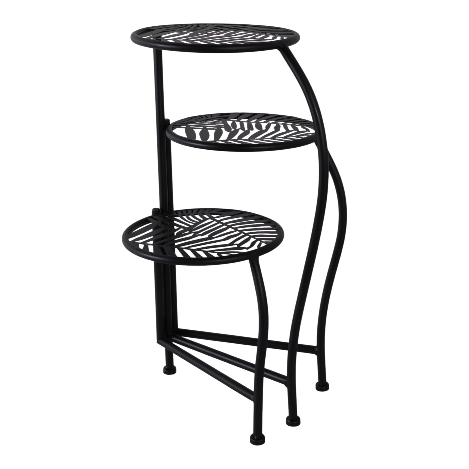22" Folding 3 - tier Leaves Plant Stand, Black - Al Rugaib Furniture
