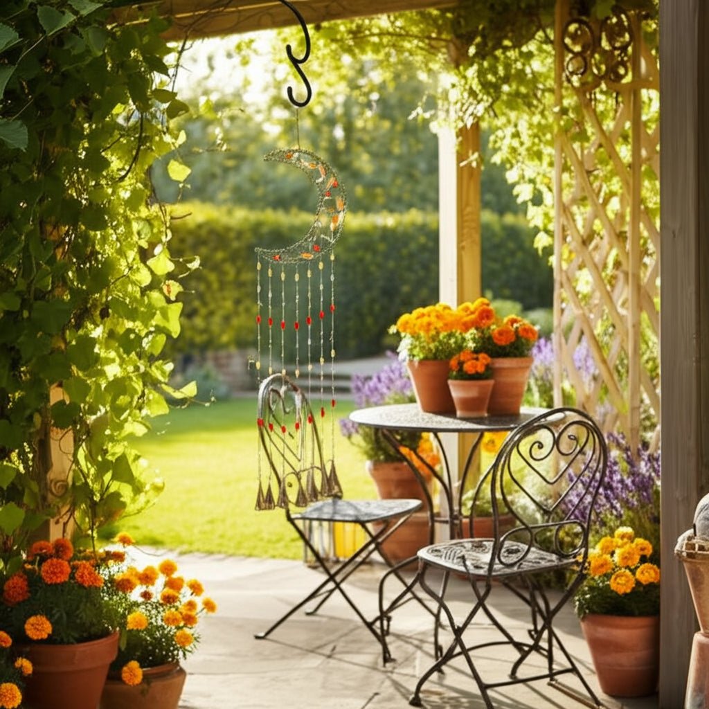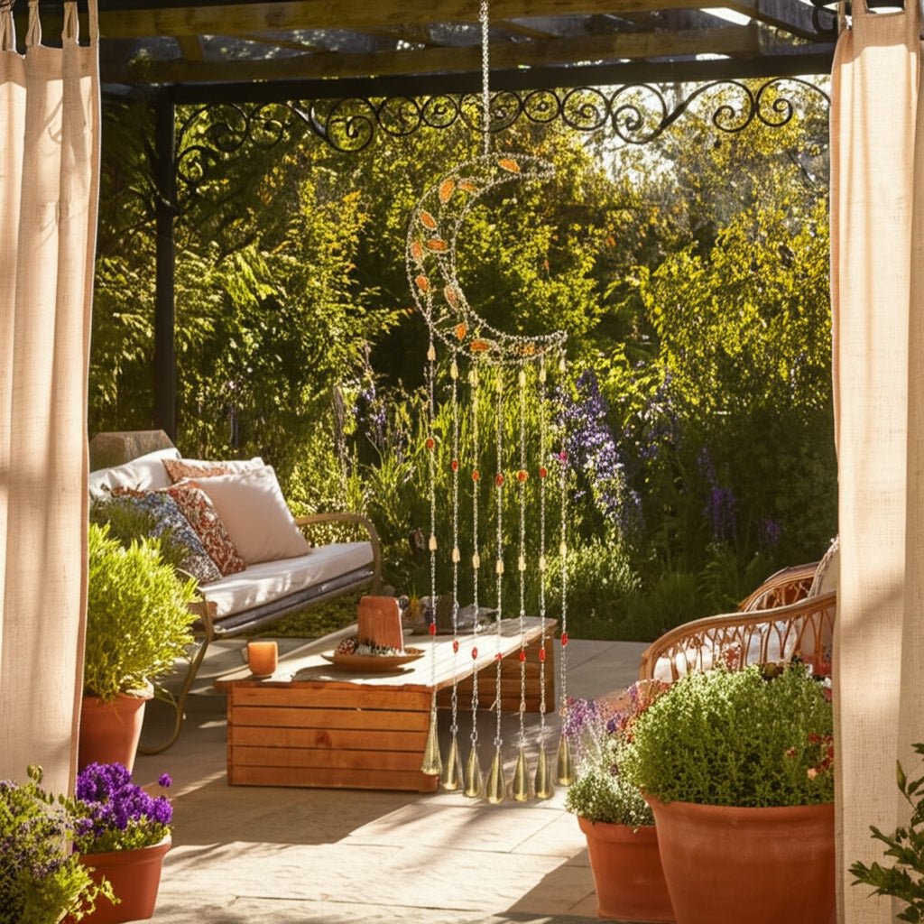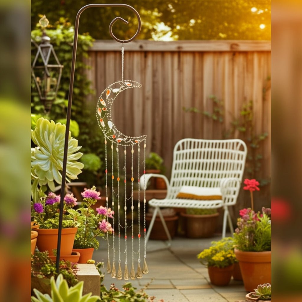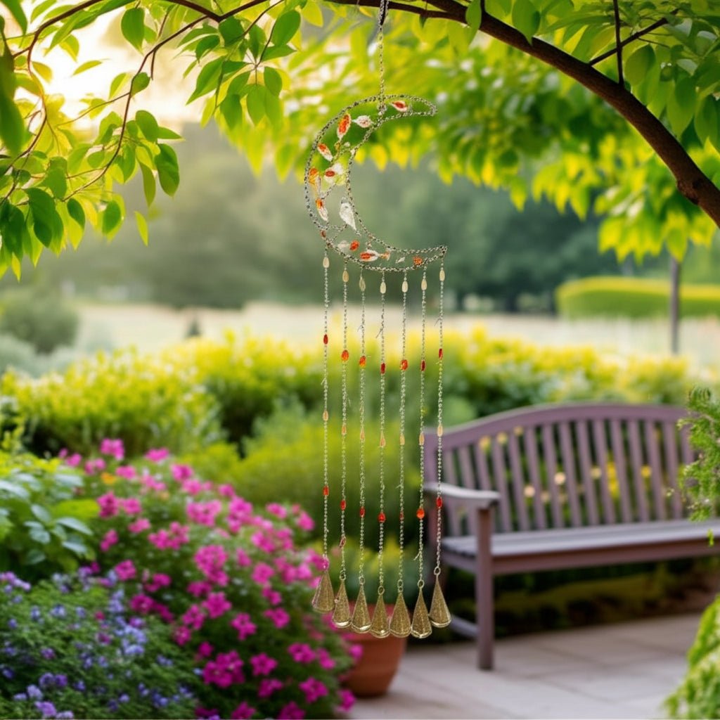 35x8" Beaded Mosaic Crescent Moon Chime, Multi - Al Rugaib Furniture