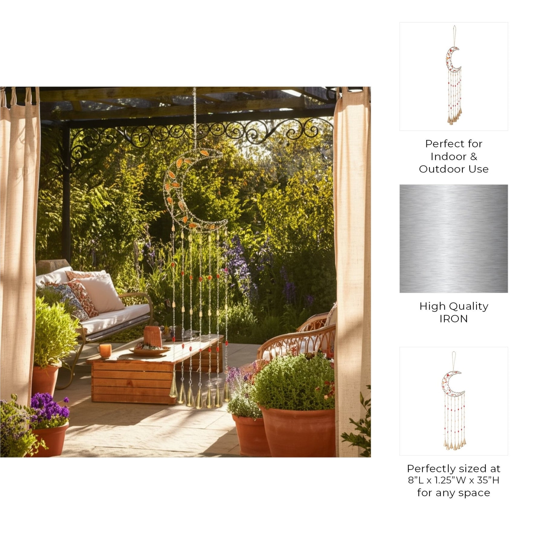 35x8" Beaded Mosaic Crescent Moon Chime, Multi