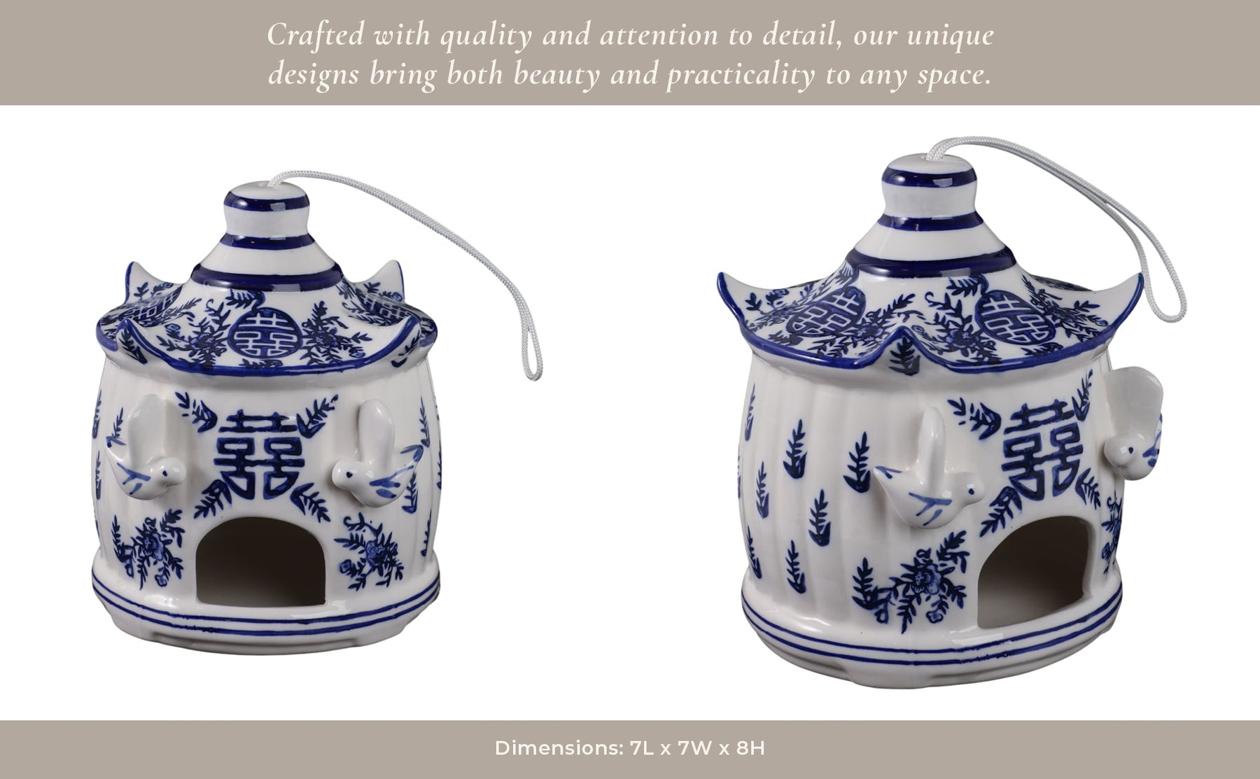 8x7" Chinoiserie Large Pagoda Bird House, Wht/blu