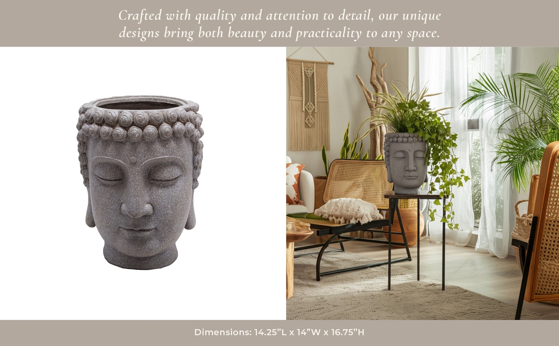 Sagebrook Home Decorative Resin Buddha Head Flower Pot, Gray is the perfect home decor accessory to accent any corner, entryway or table in your living room, bedroom, and office. This Polyresin Buddha Flower Pot will be the perfect addition to your home decor and complement any of your existing furniture. Created from the highest quality Polyresin, this Decorative Resin Buddha Head Flower Pot, Gray home accent will be a great centerpiece for your home! Sagebrook Home has been formed from a love of design, a commitment to service and a dedication to quality. They create and import fashion forward items in the most popular design styles. Backed with years of experience in the textile field, they are now providing a complete home decor story. The combination of wall decor, furniture, lighting and home accessories are all coordinated with textiles to provide a complete home look. Sagebrook Home is committed to providing the best home decor and accent pieces at value prices.