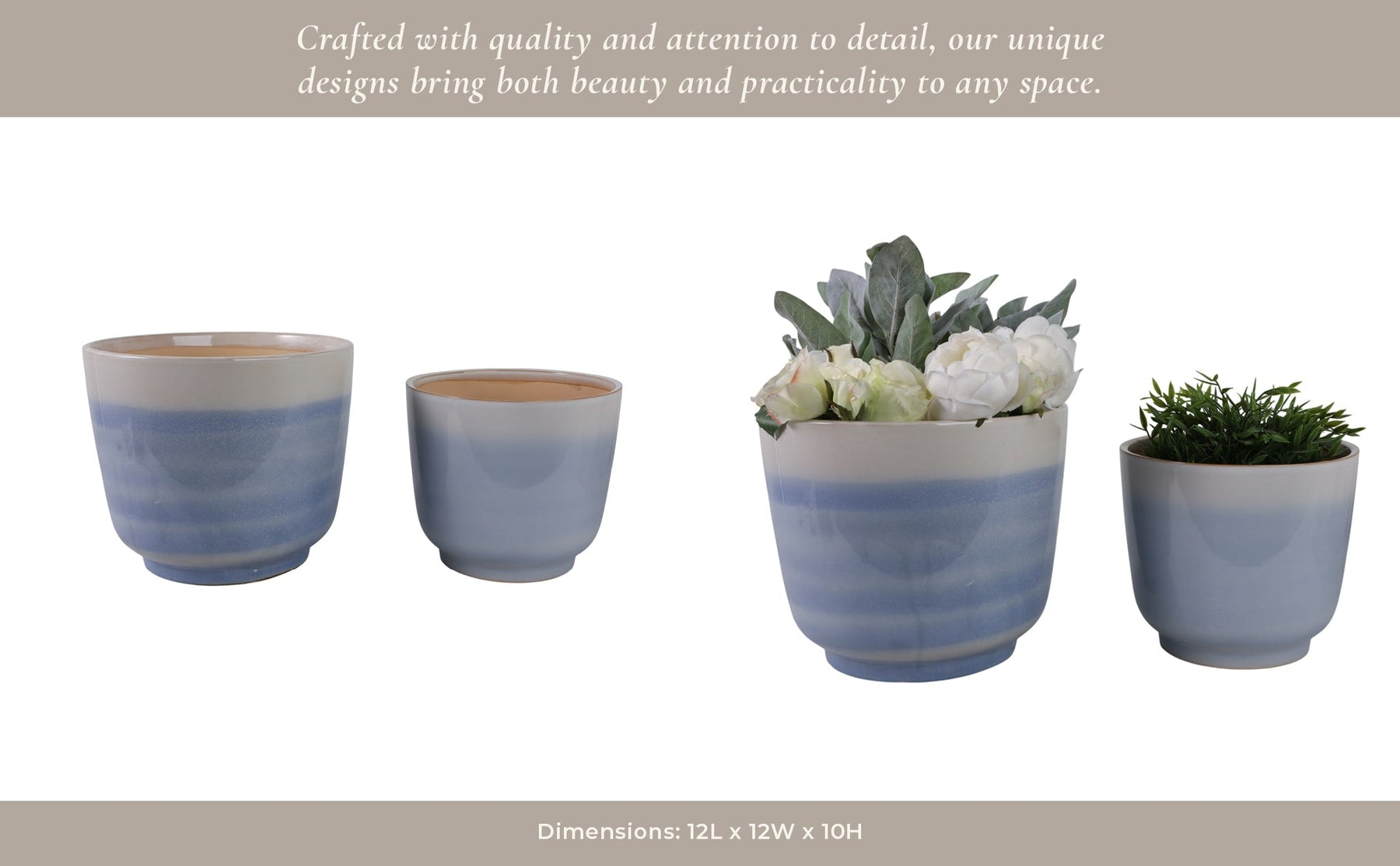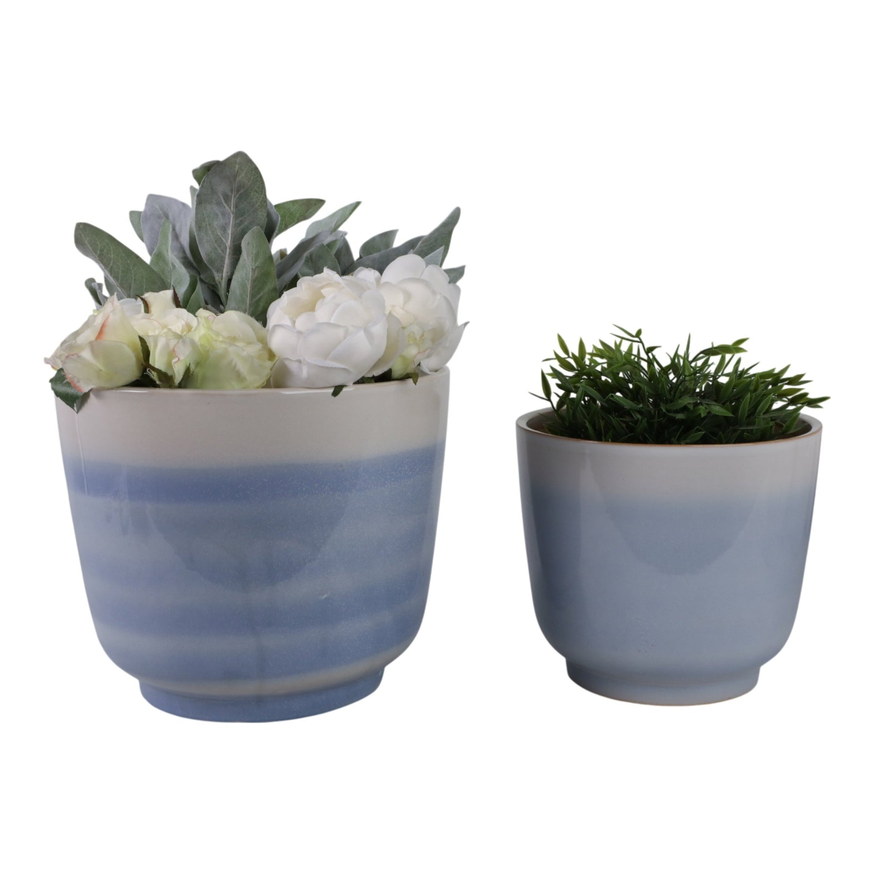 S/2 10/12" Reactive Glazed Planters, Baby Blue