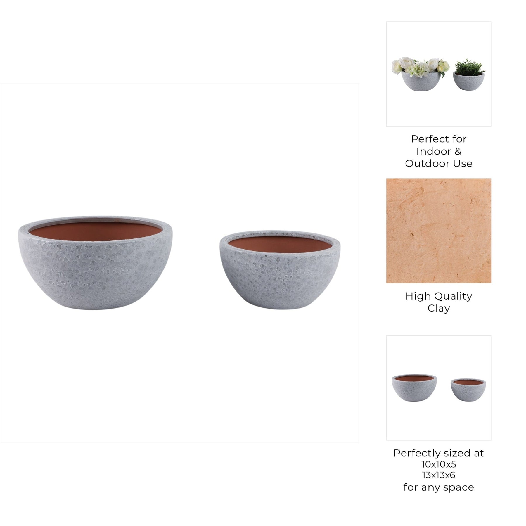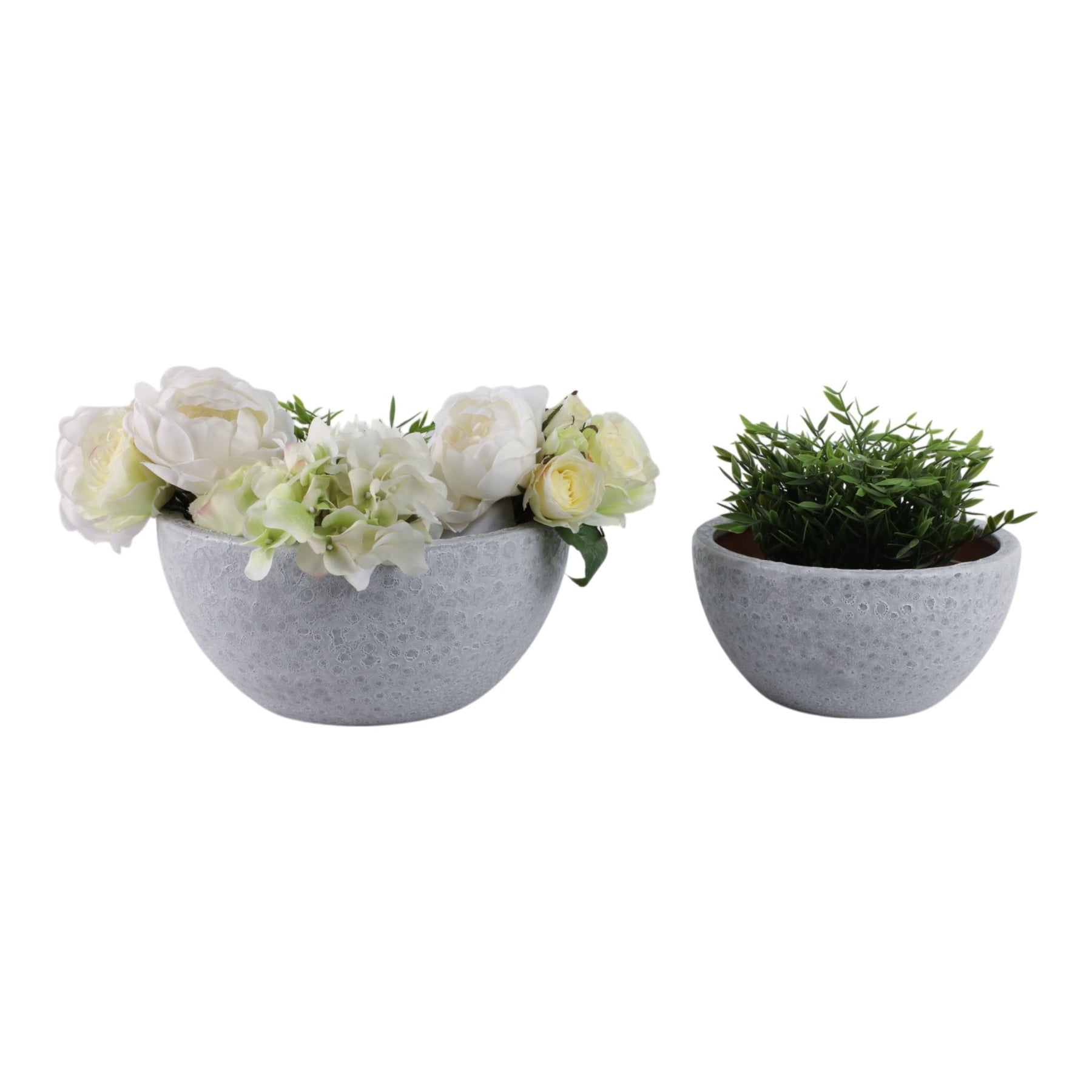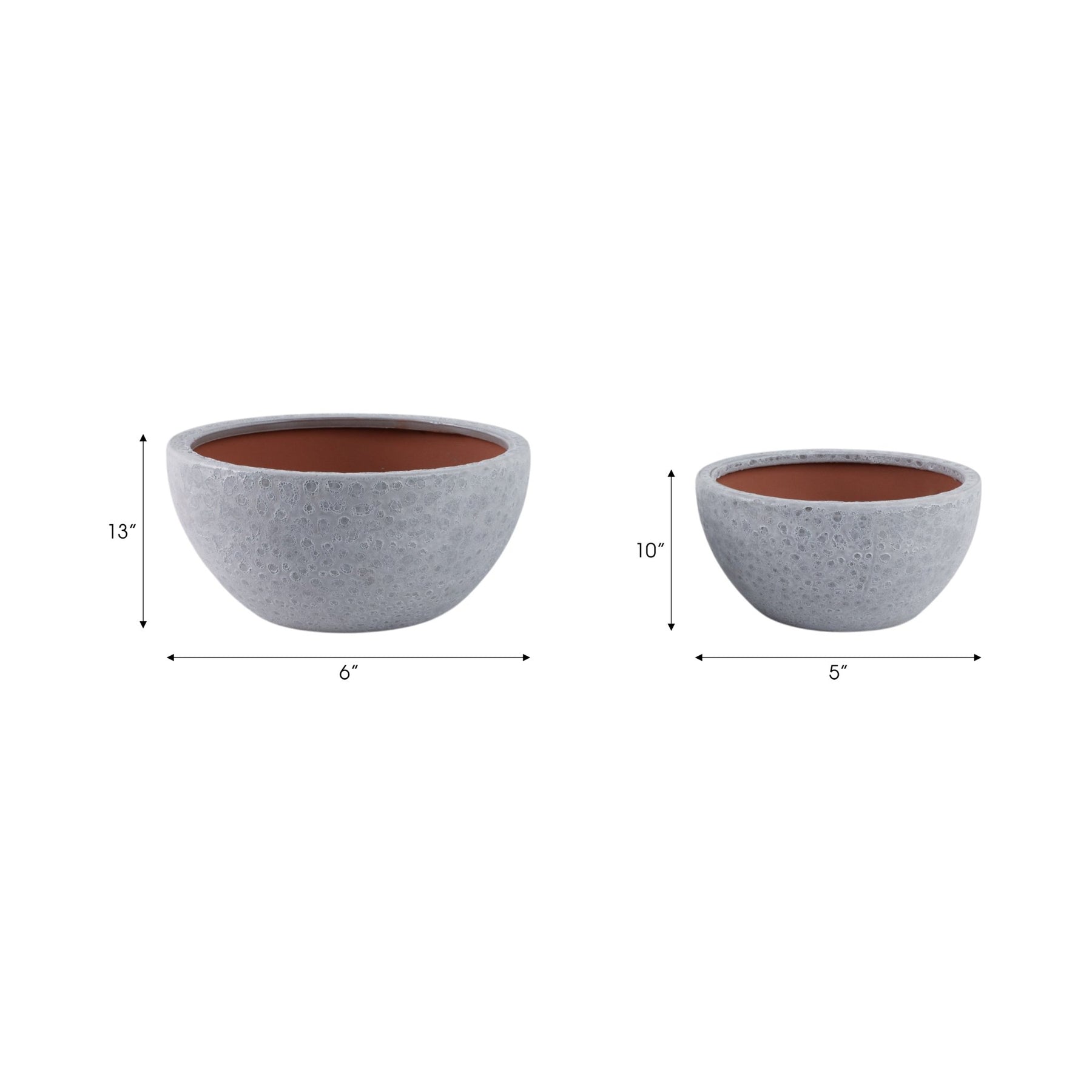 S/2 10/13" Lava Bowl Planters, White - Al Rugaib Furniture