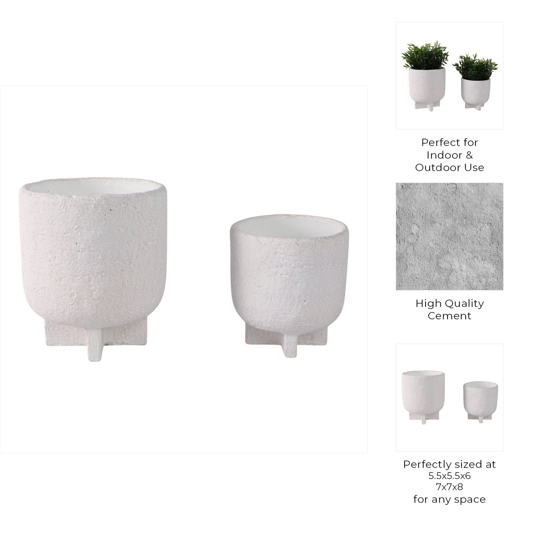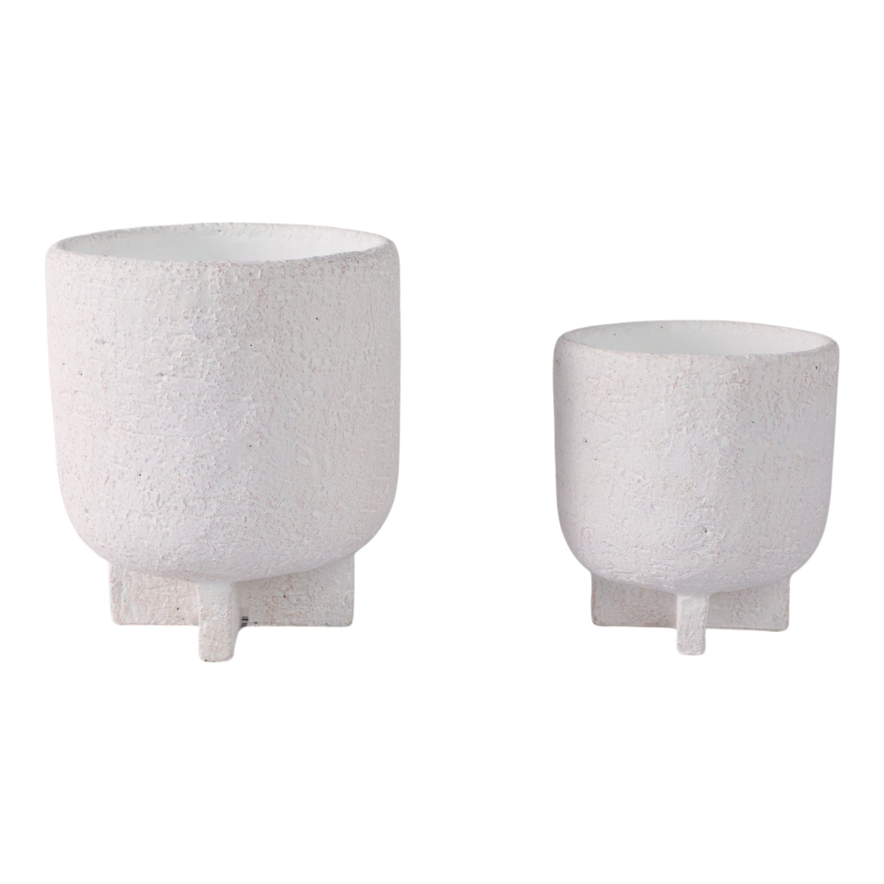 S/2 6/7" Modern Footed Planters, White - Al Rugaib Furniture